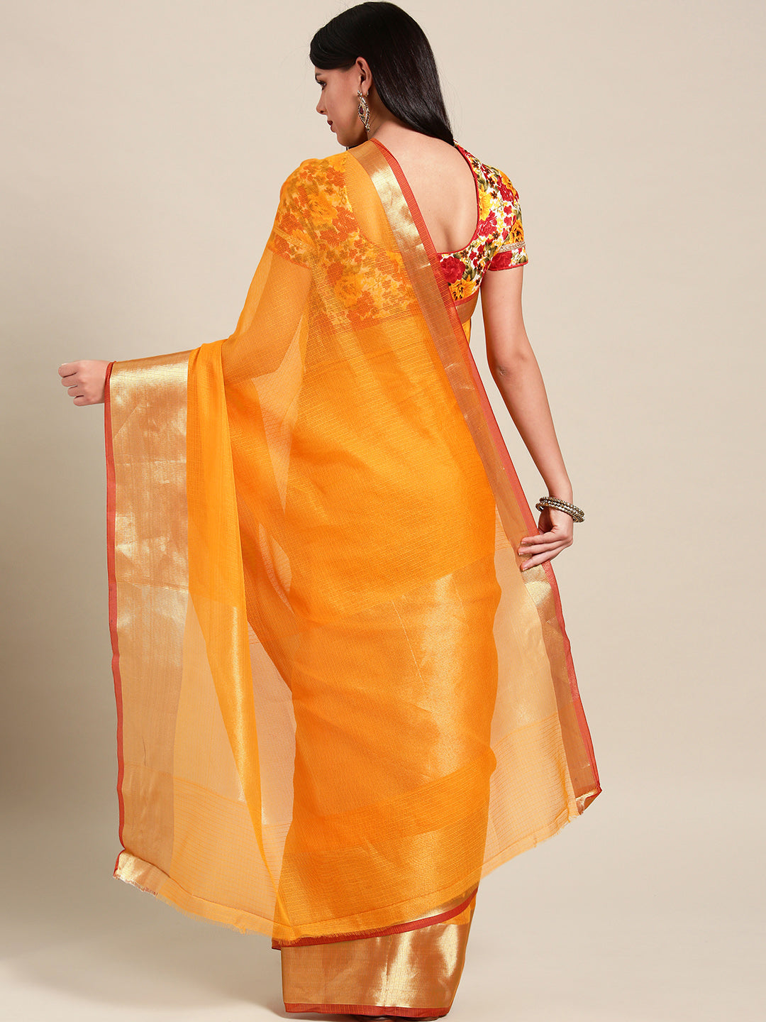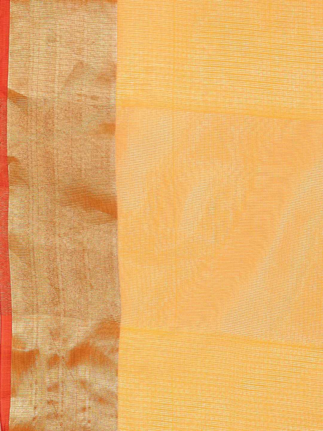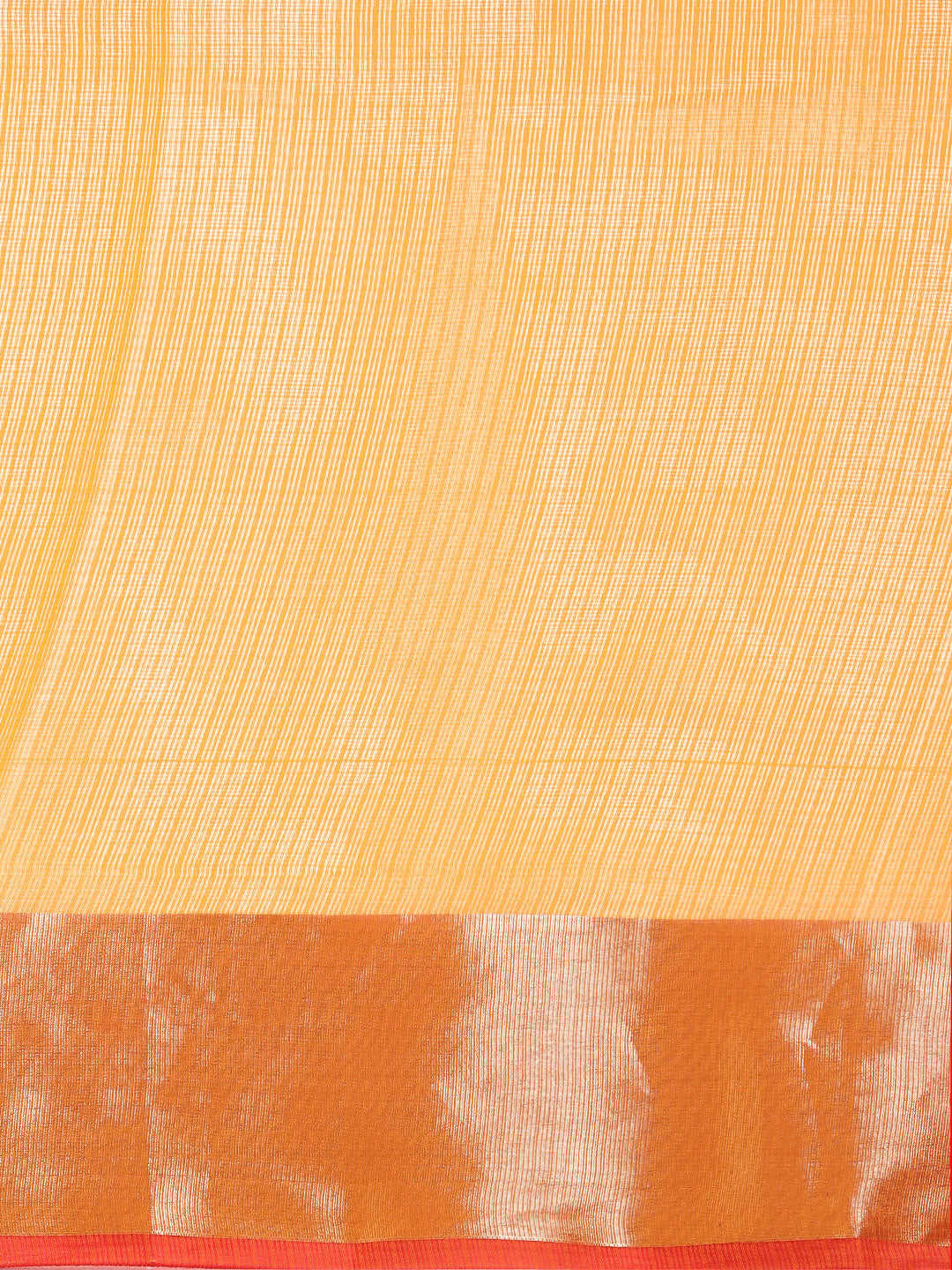 Yellow Chanderi Silk Kota saree with Broad Gold border