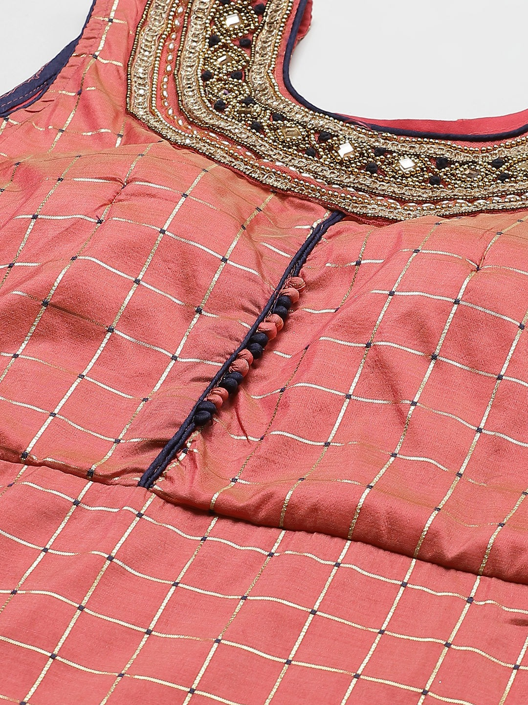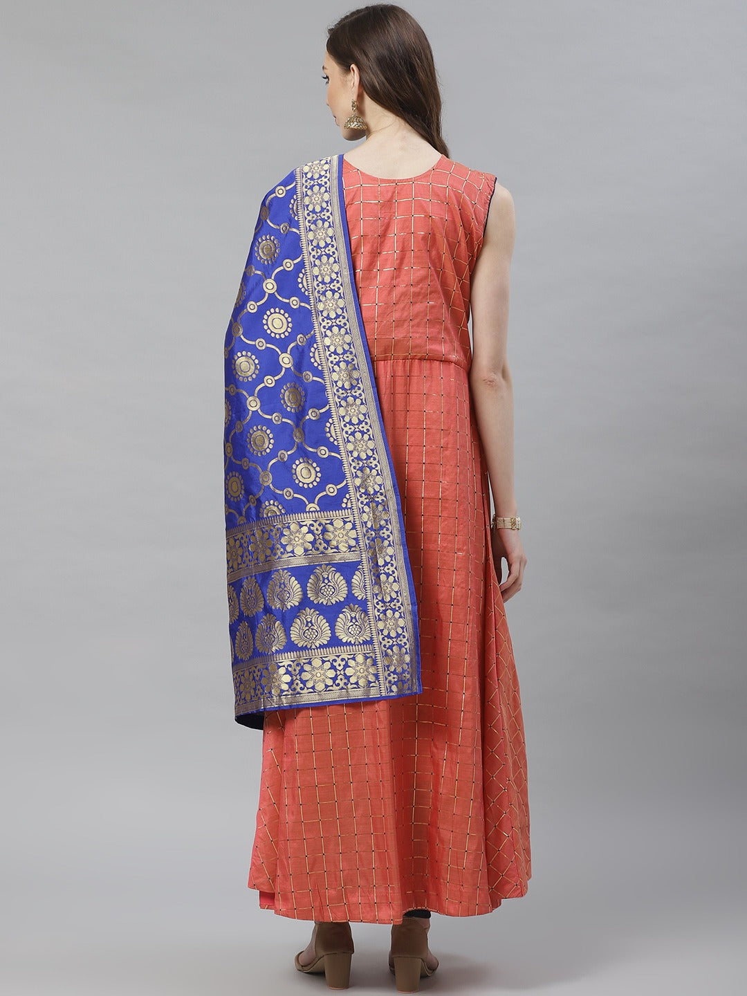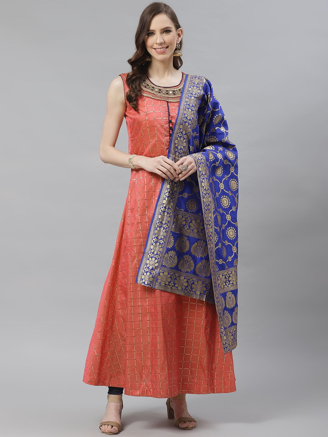 Chhabra 555 Made to Measure Pastel Woven Embroidered Anarkali Set with Contrast Banarasi Dupatta