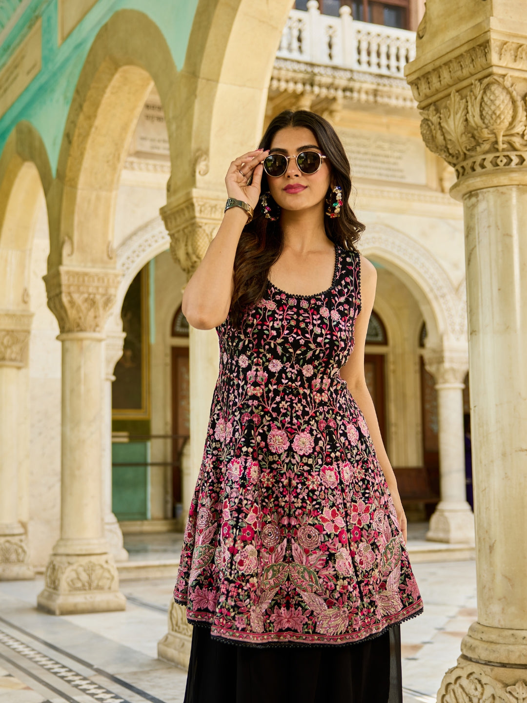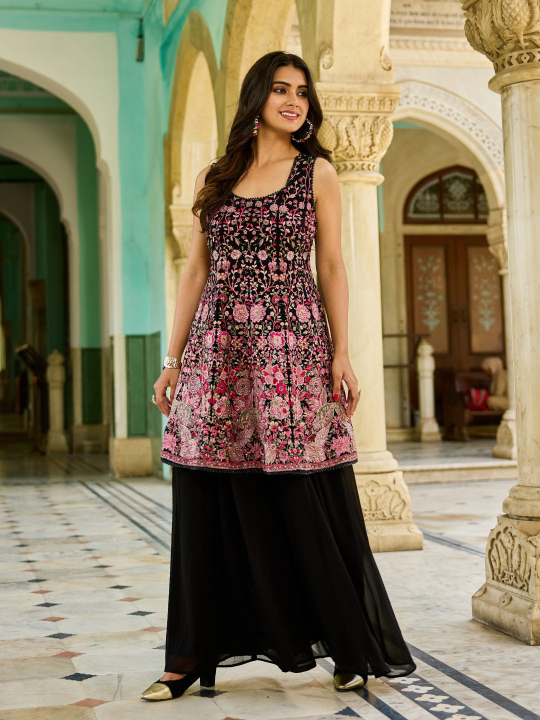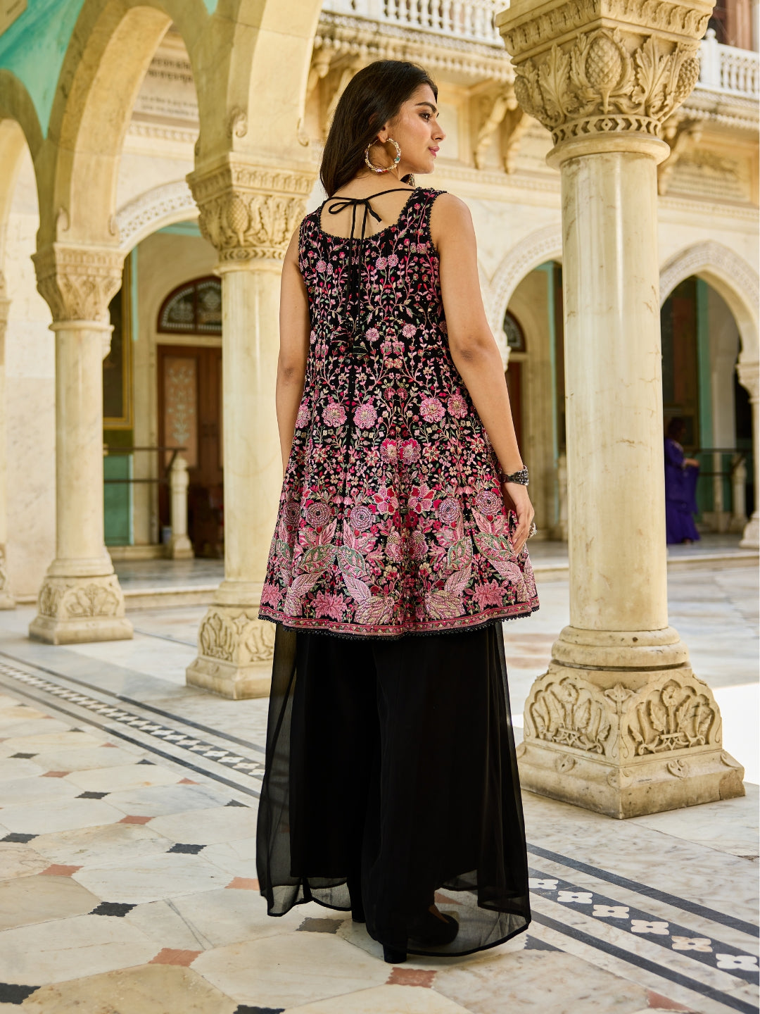 Black Zari & Resham Work Embroidered Sleeveless Kurta Set with Palazzo