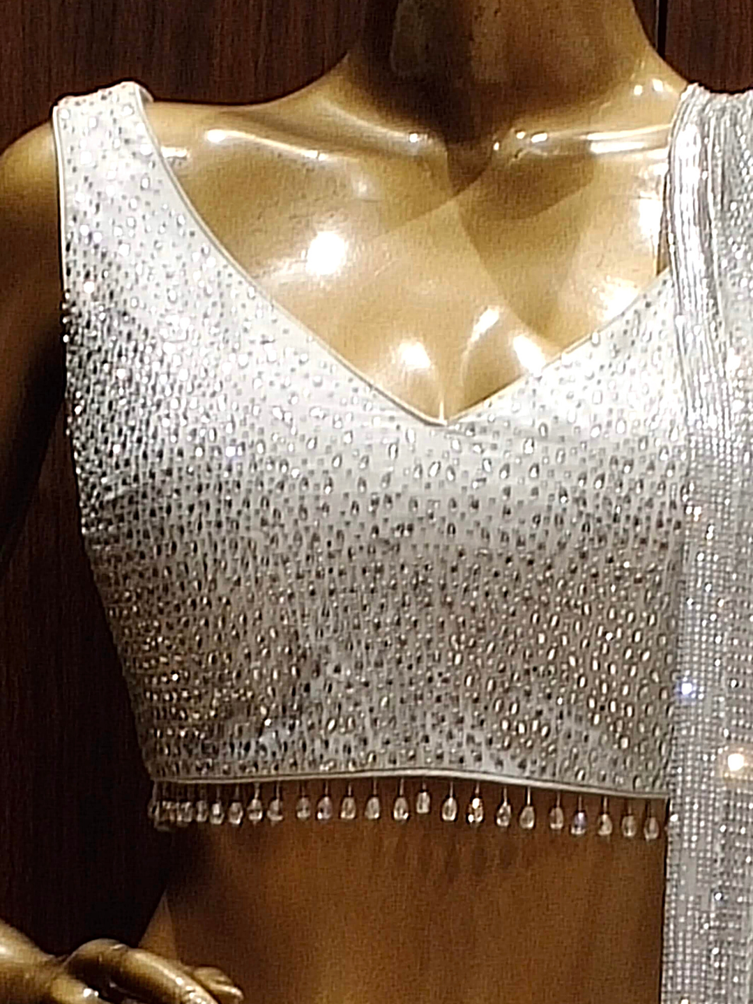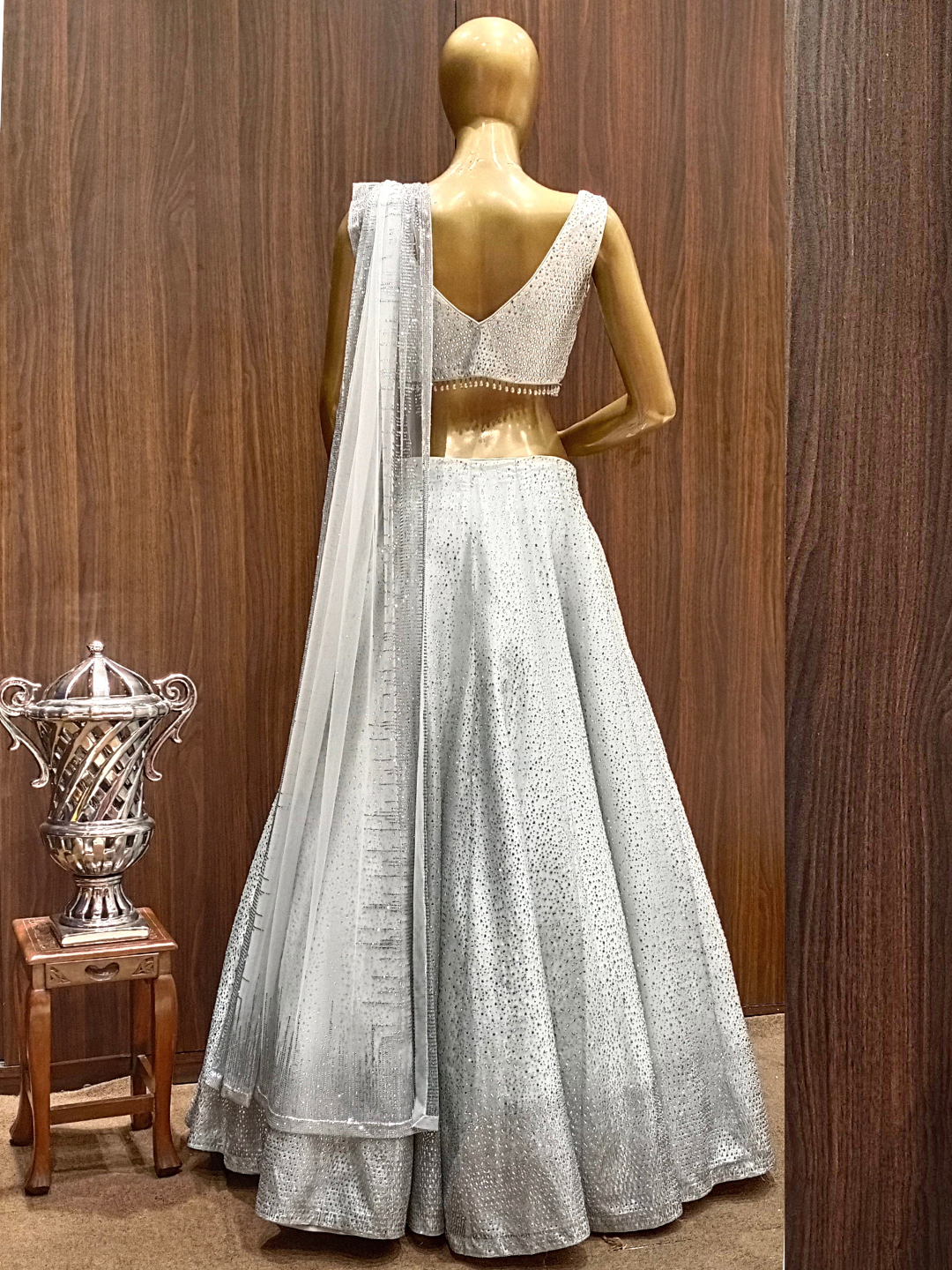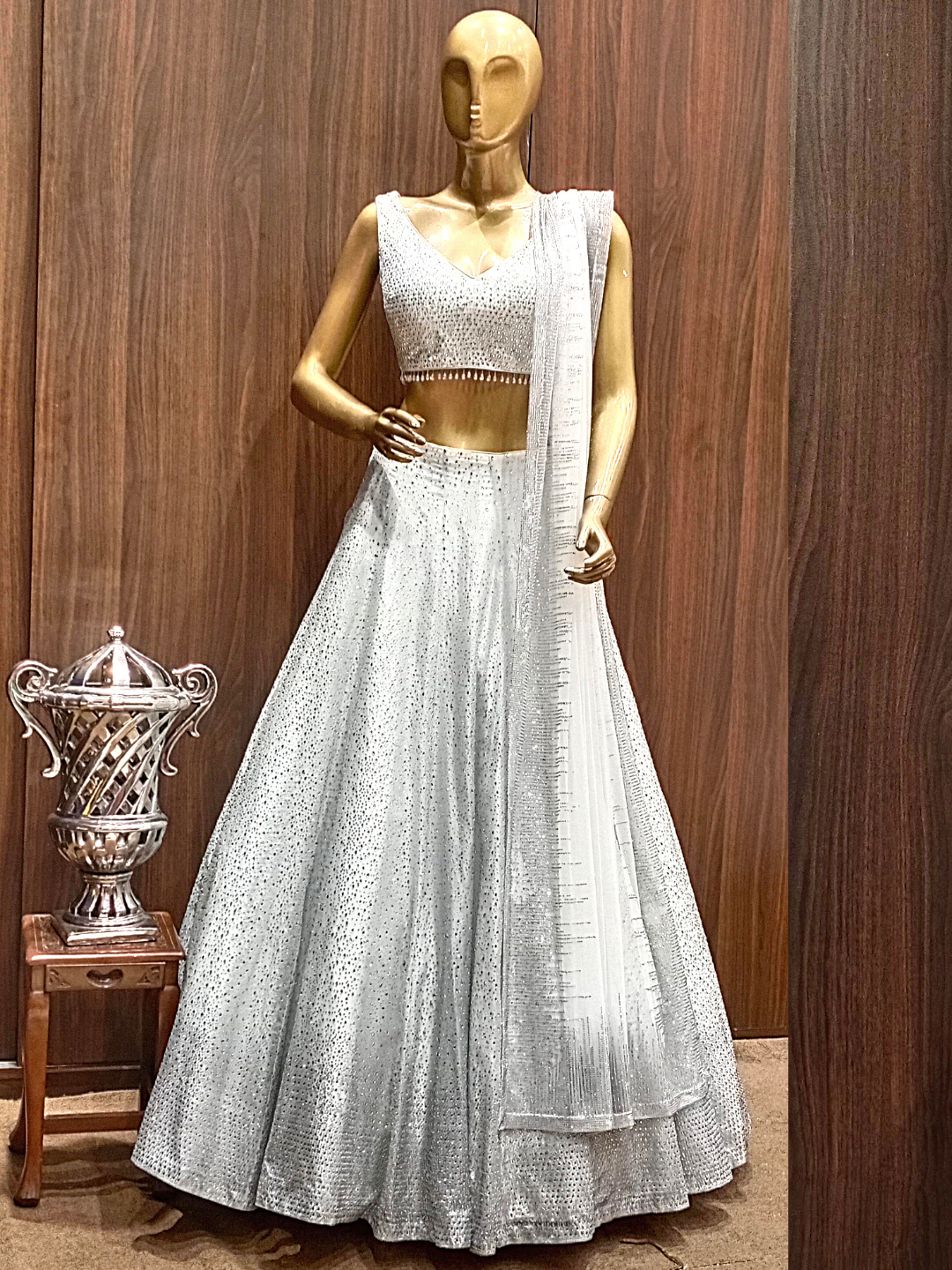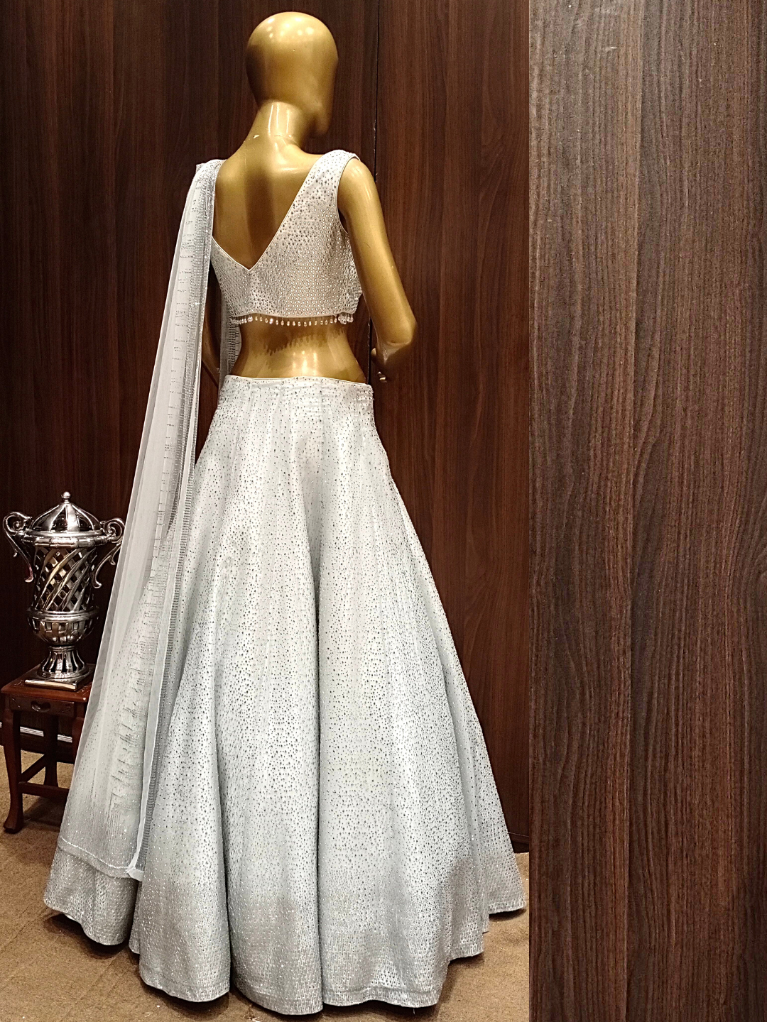 Chhabra 555 Bling Cocktail Raw Silk Embellished Lehenga with Complete Crystals and Hanging Crystals