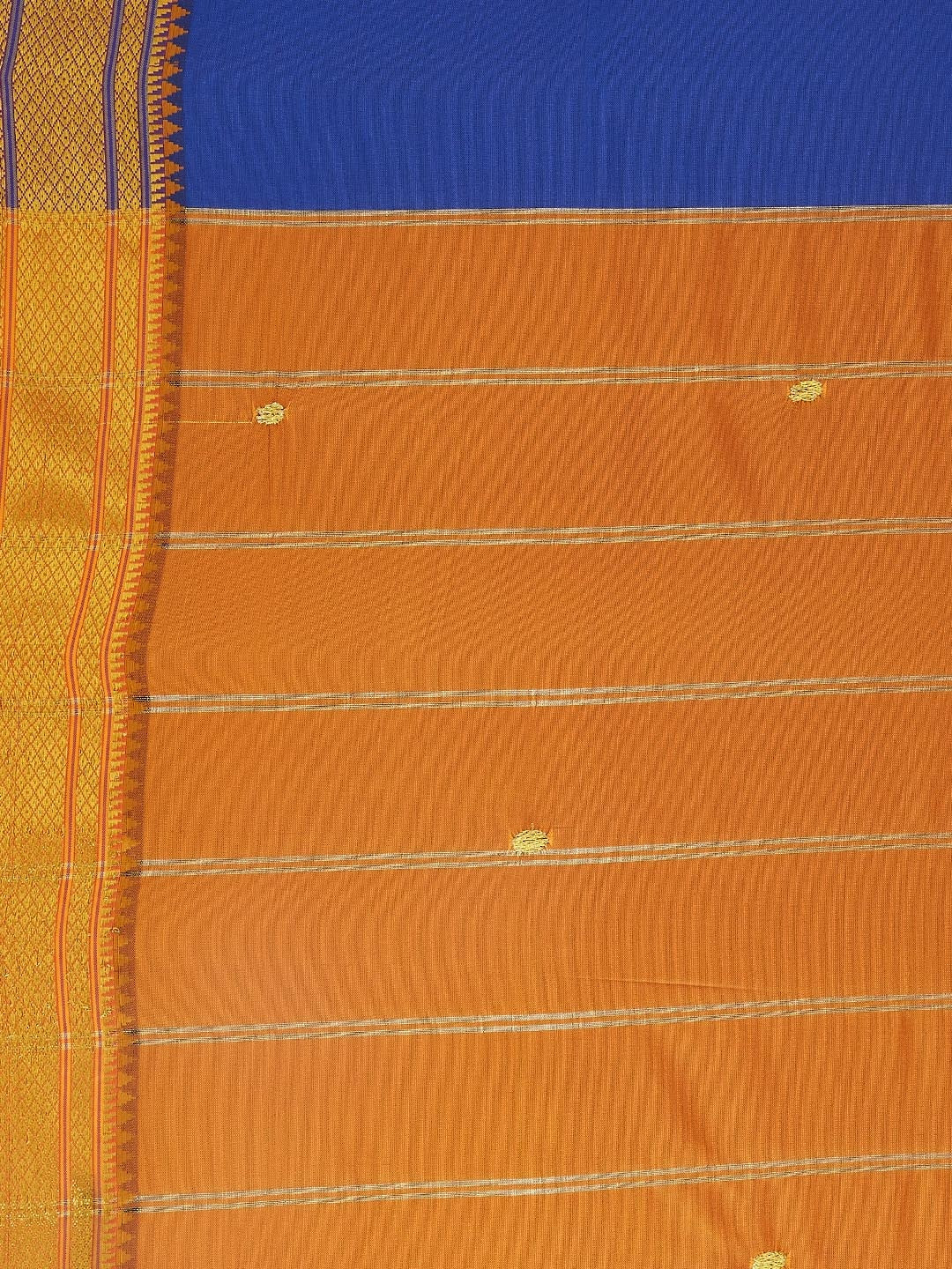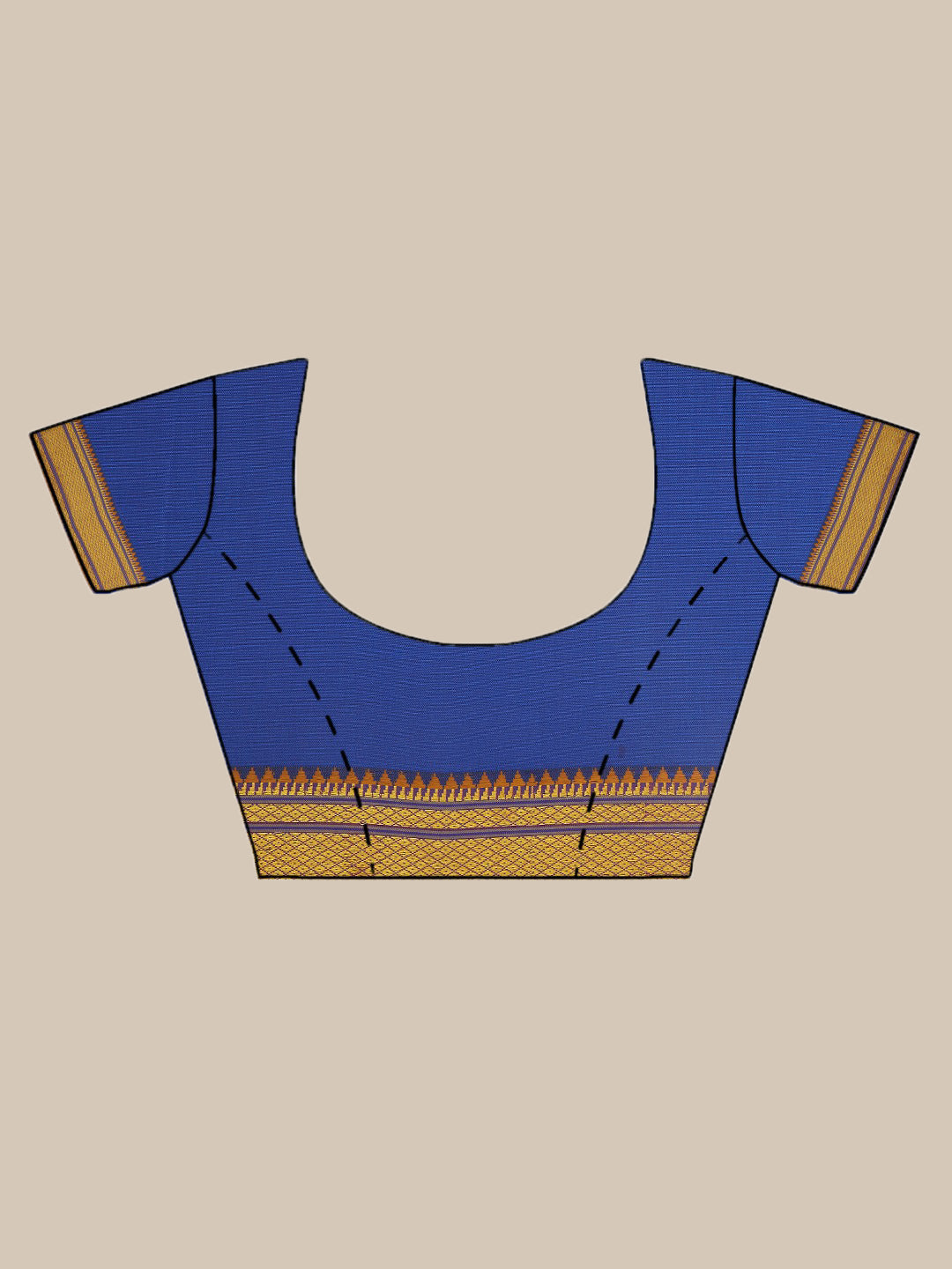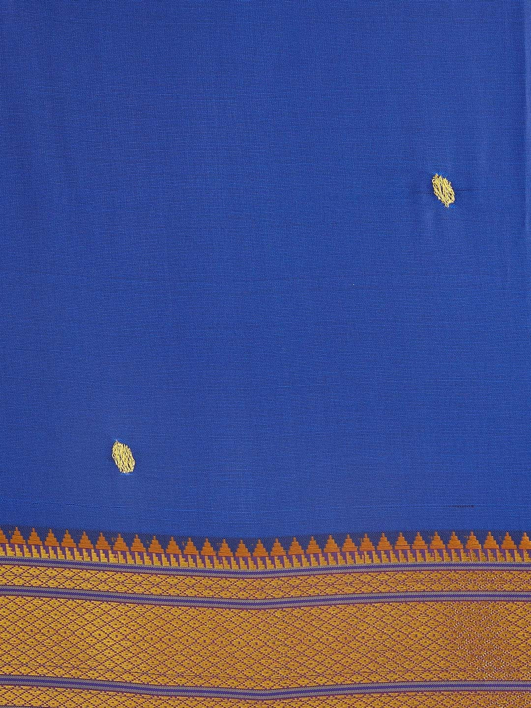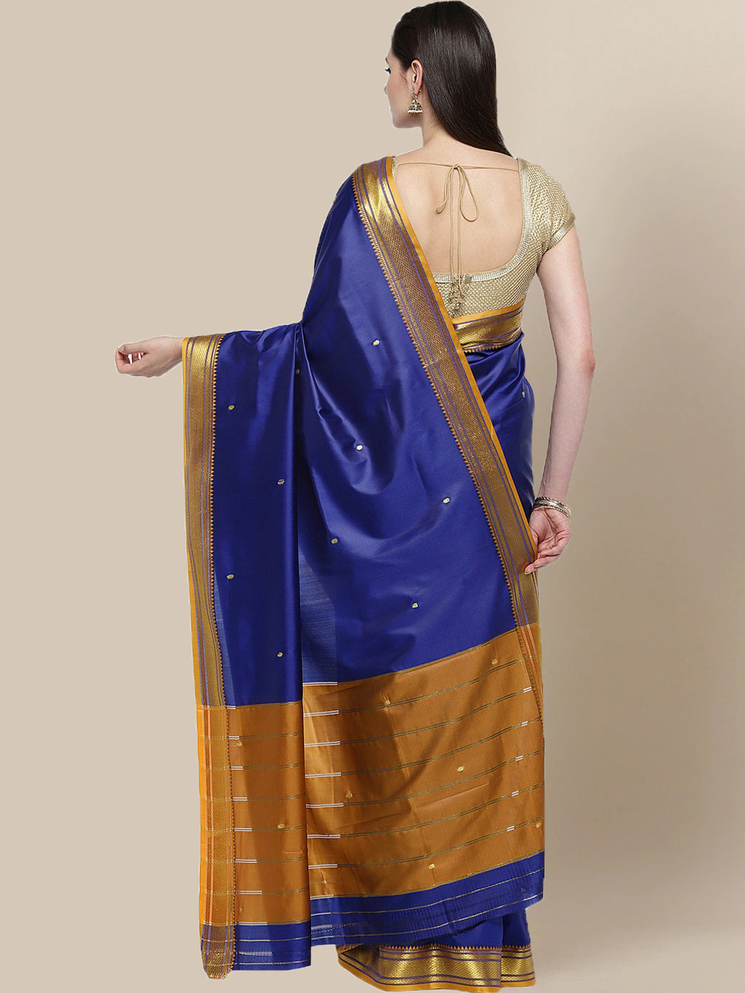 Blue Narayan Peth Silk Saree with Contrast Zari Border