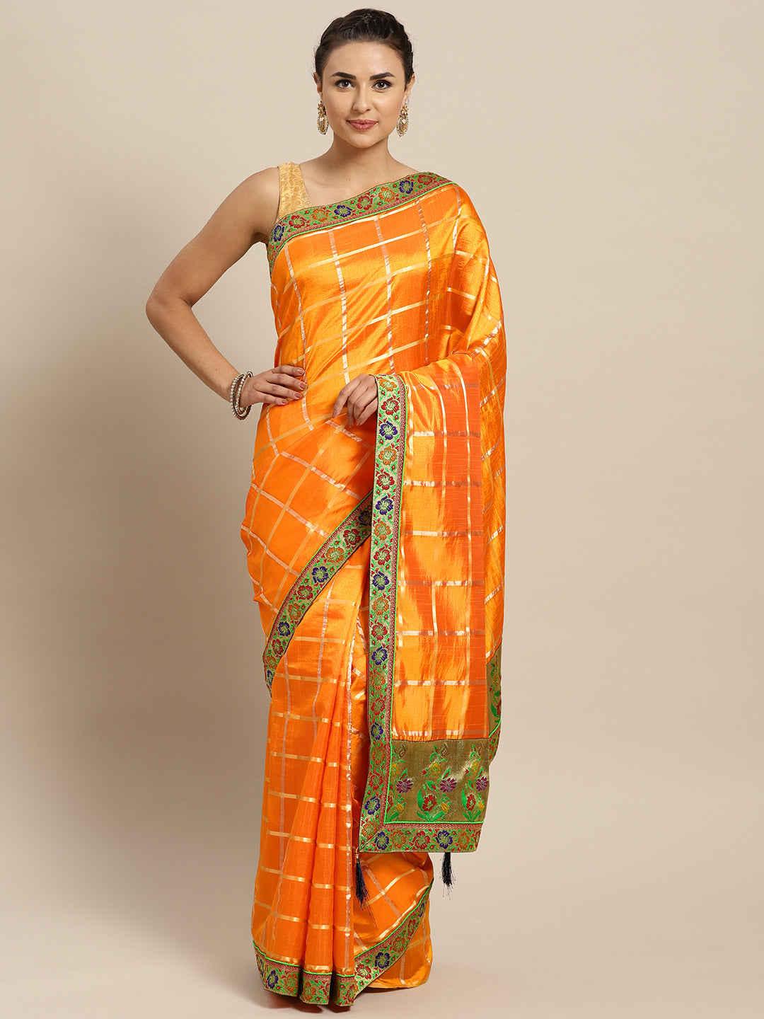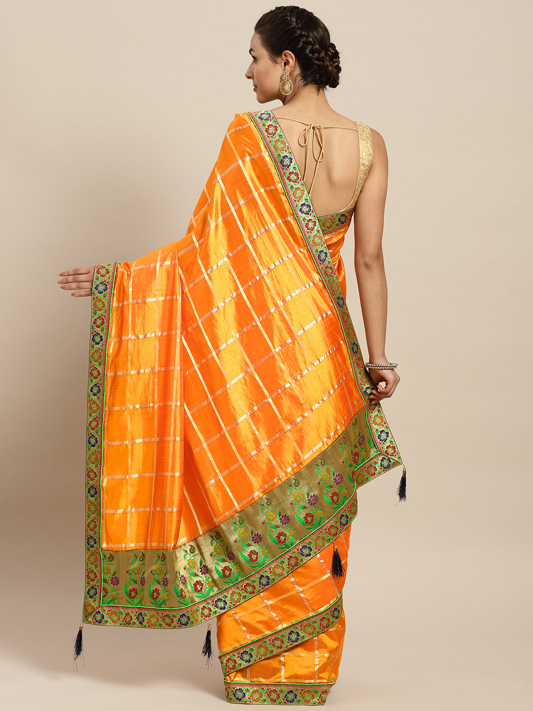 Chhabra 555 Orange Art Silk Saree with Patola Pattern and Meenakari Zari Woven Border