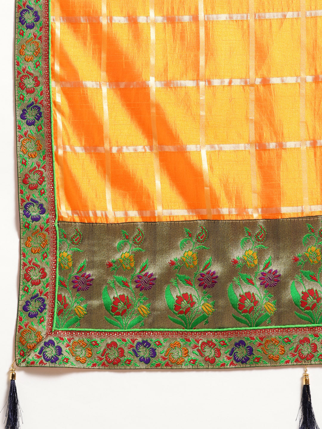 Patola Silk Checked Saree with Meenakari Zari Woven Border