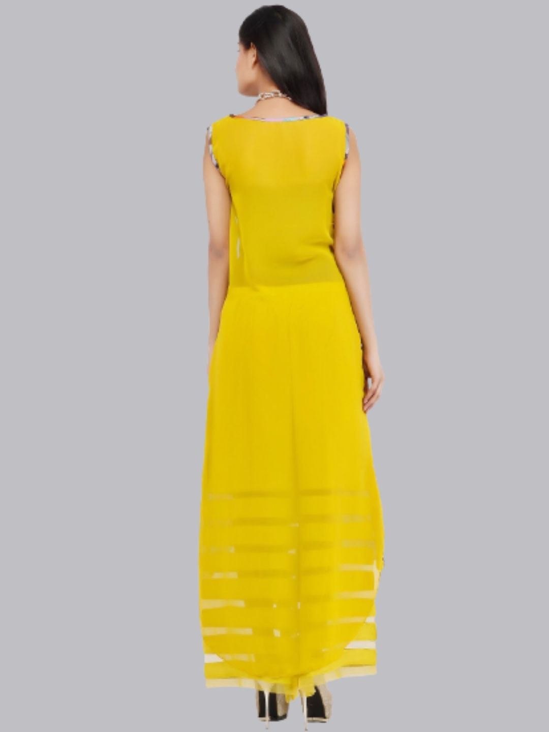Chhabra 555 Yellow Umbrella Style Half & Half Floral Kurti With Palazzo