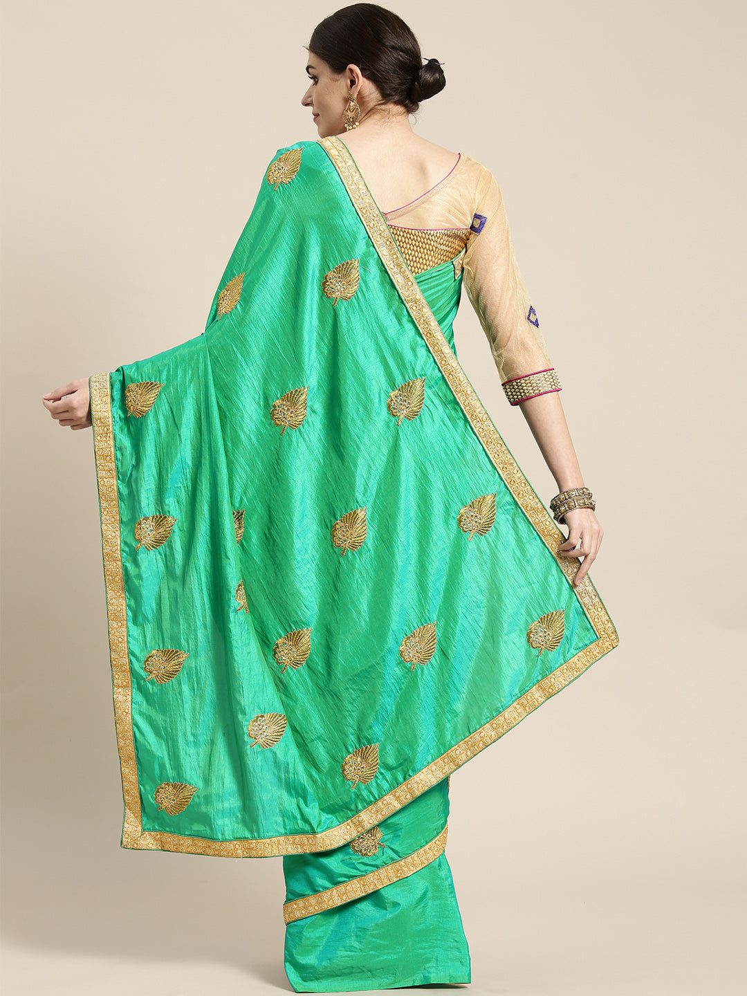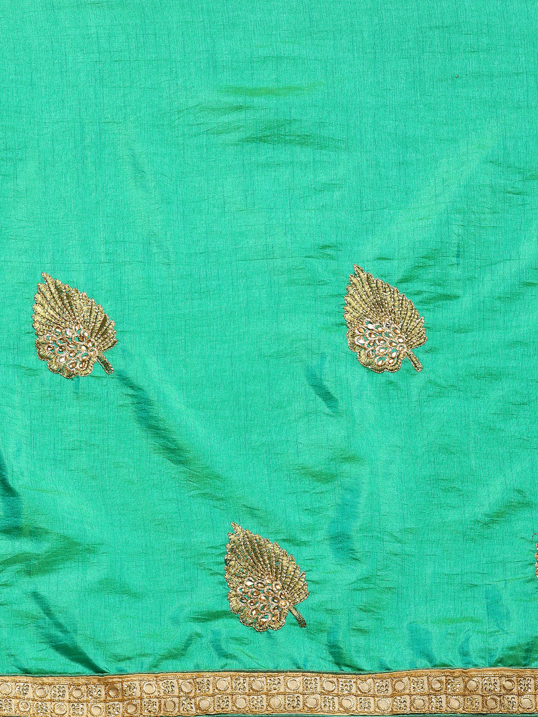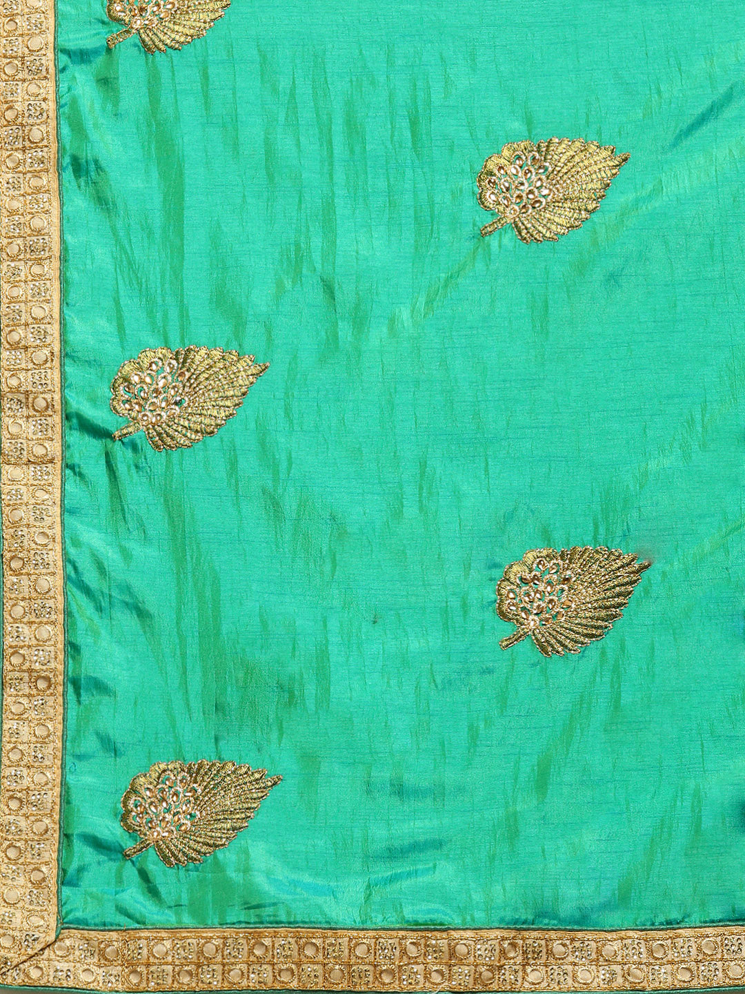 Chhabra 555 French SIlk Embroidered Saree with Golden Zari border and crystal embellishments