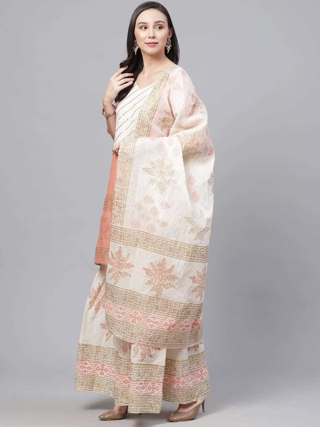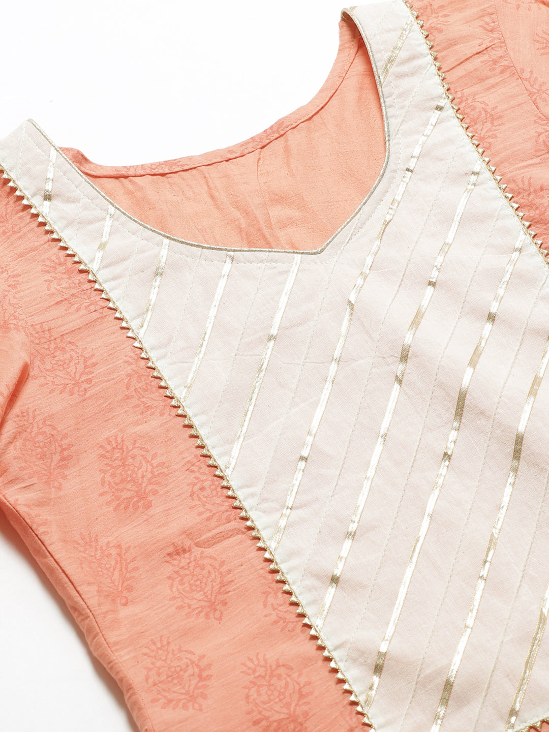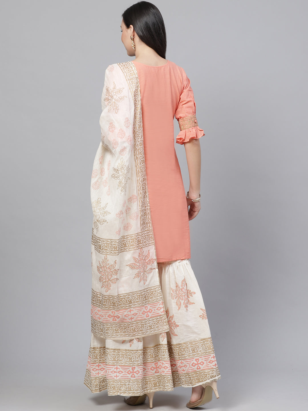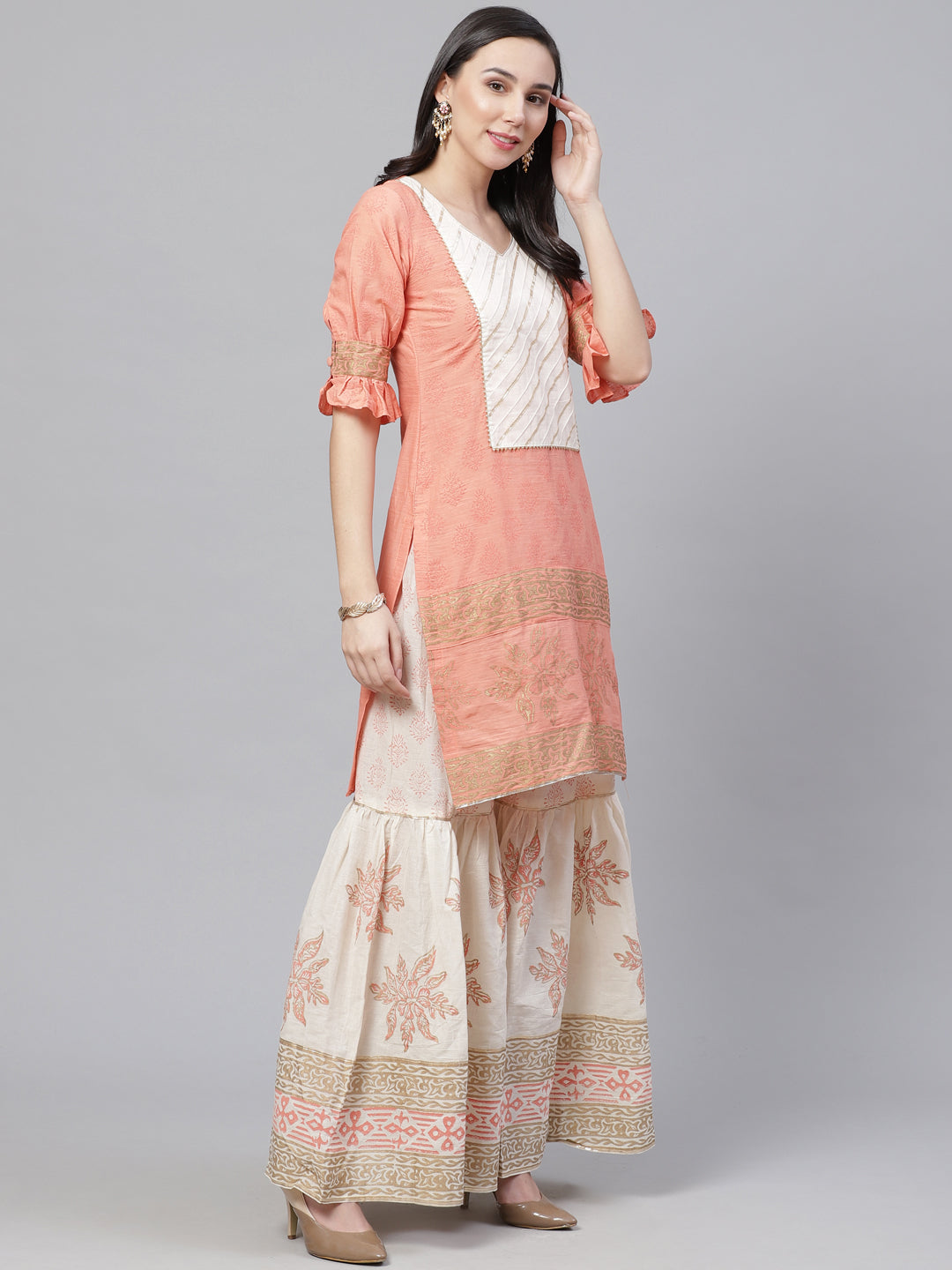 Pure Cotton Cambric Block Printing Stitched Suit with Gotta-Patti Embroidery & Sharara