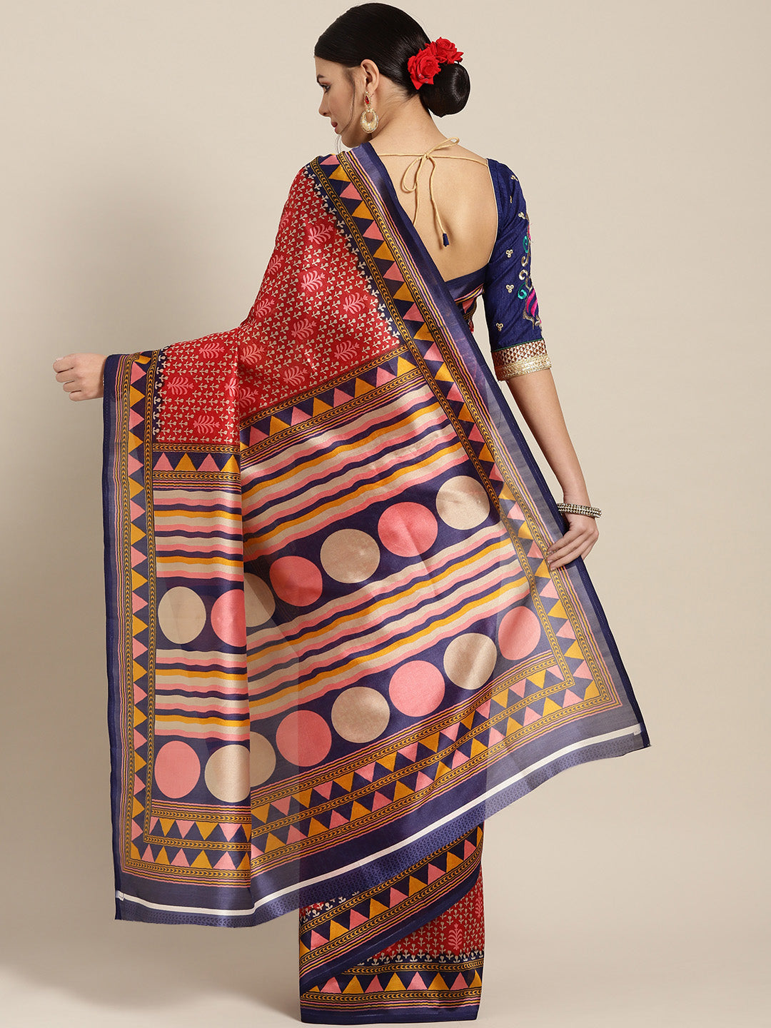Chhabra 555 Silk Printed Saree with Patola Floral pattern and temple inspired border