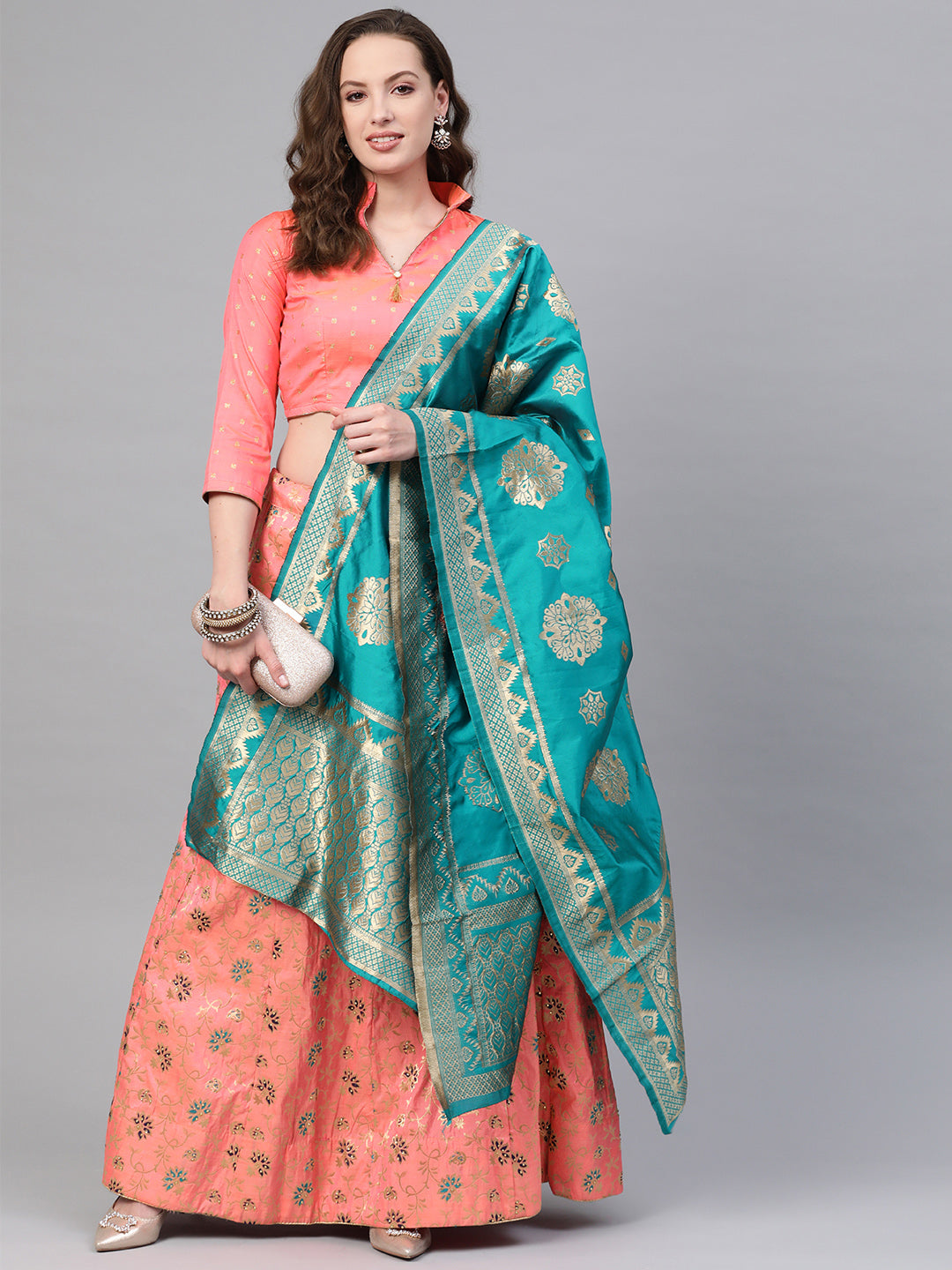 Banarasi Woven Kalidar Semi-stitched Lehenga