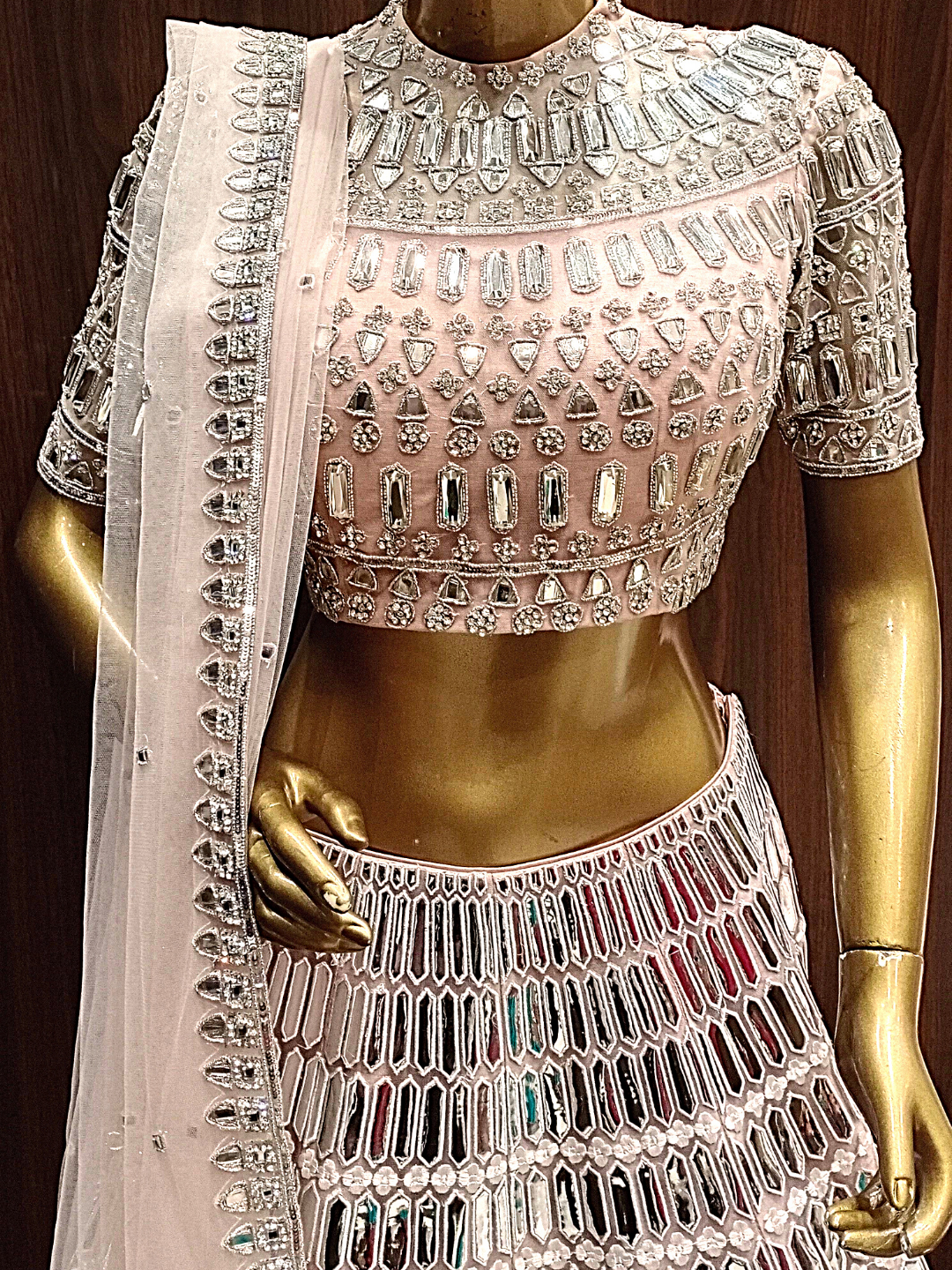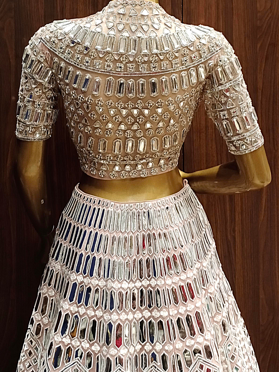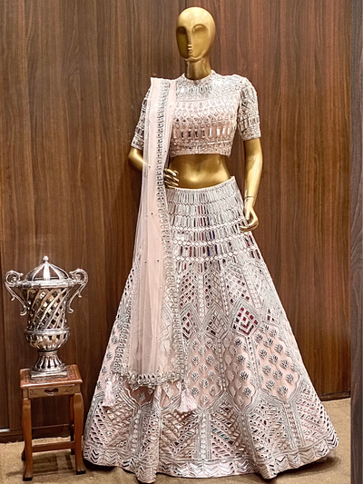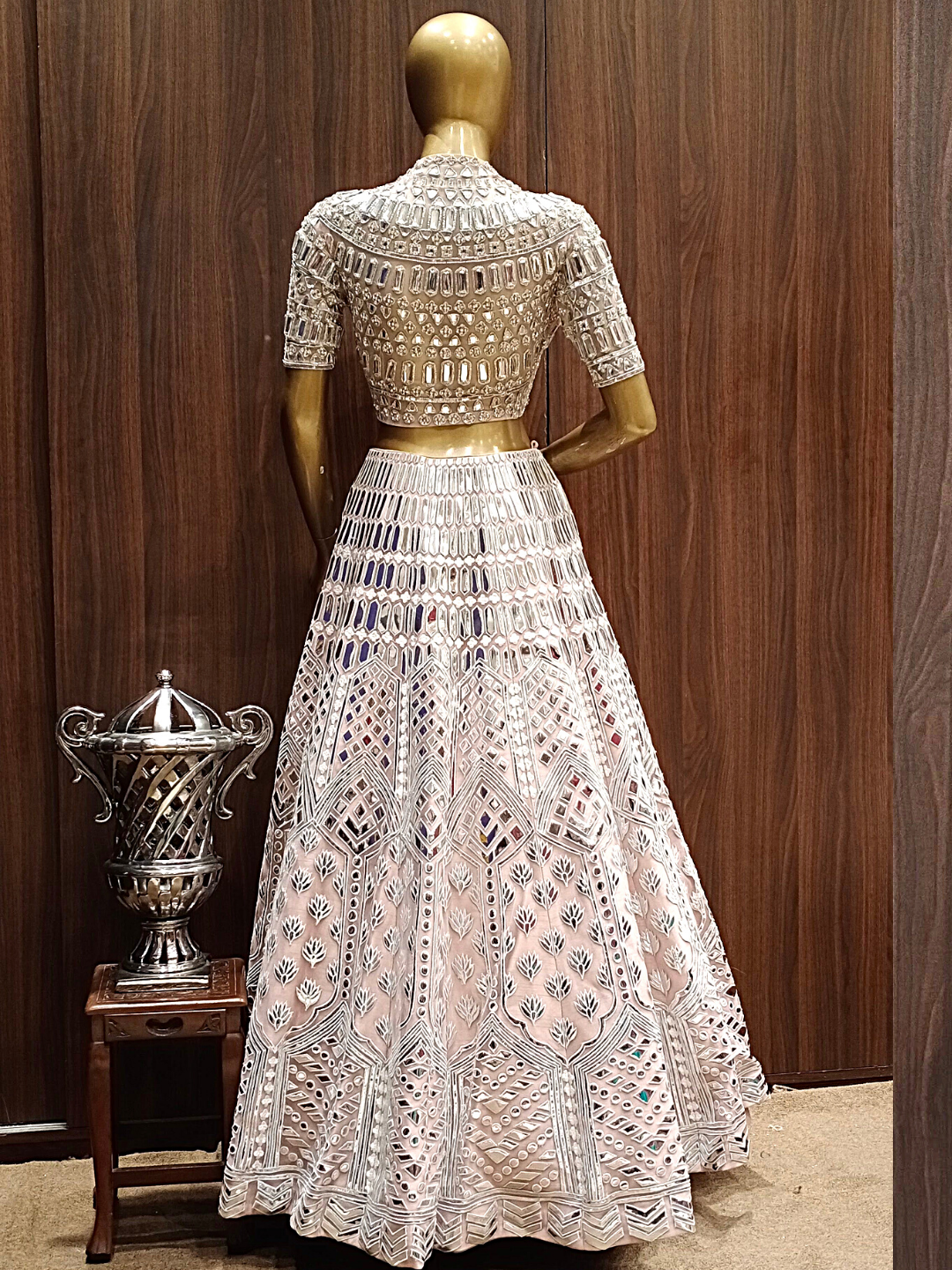 Cocktail Pastel Lehenga Set With Heavy Hand Kundan Work