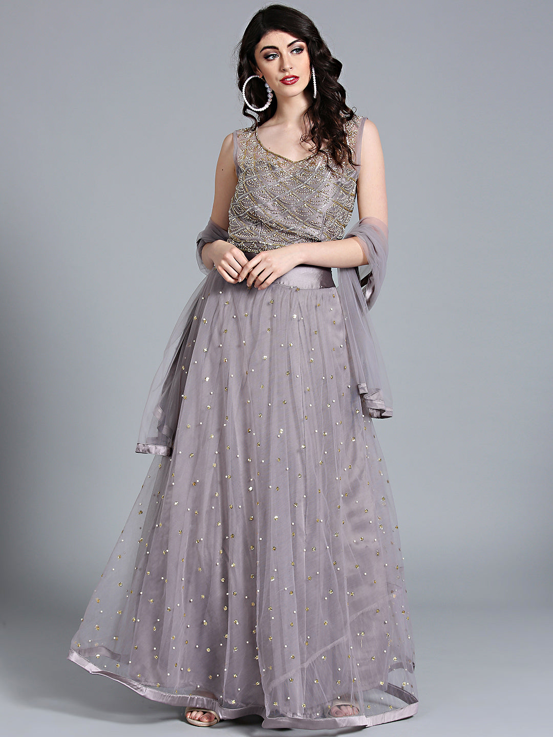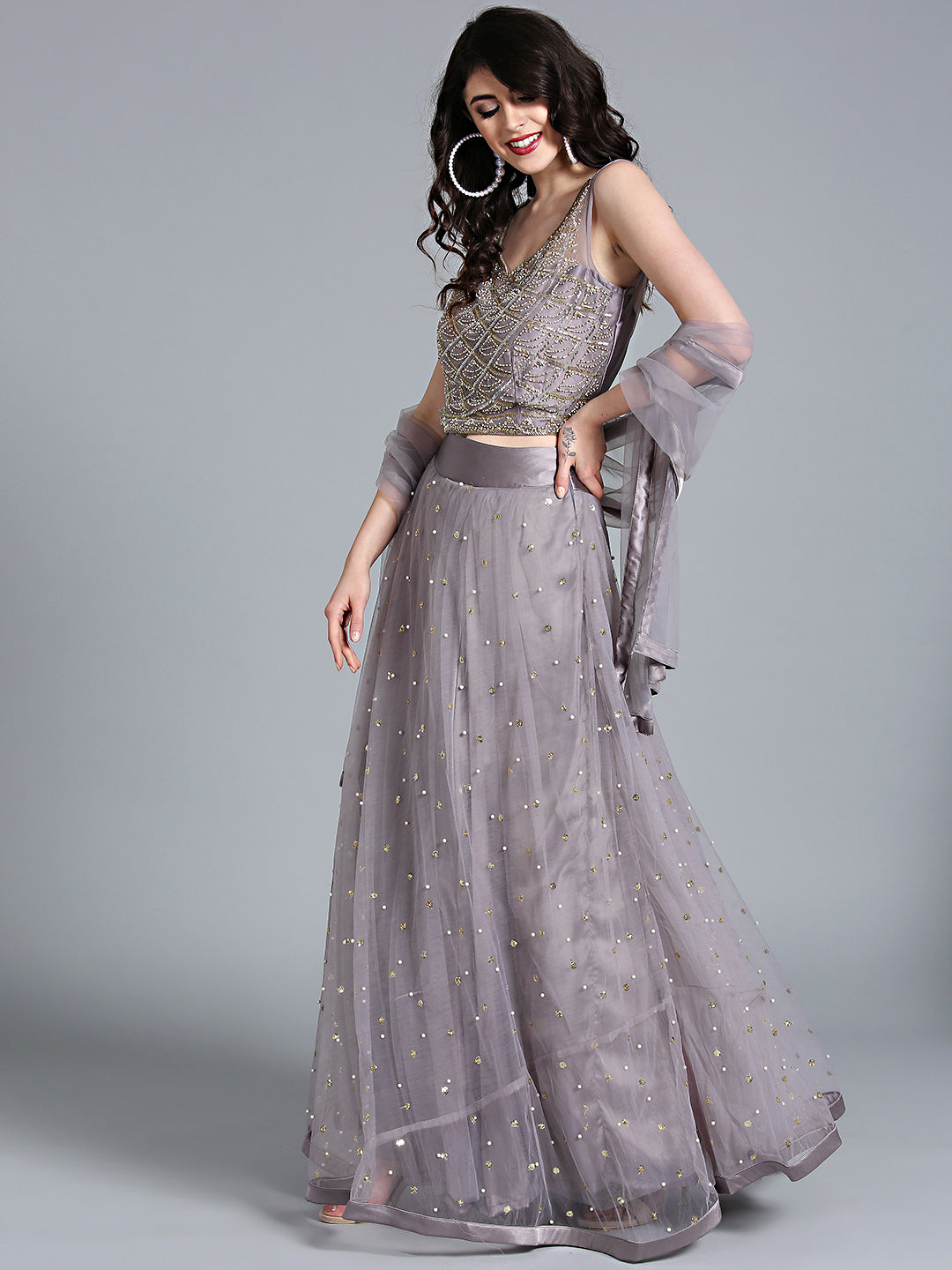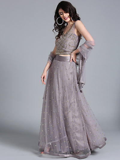Pearl, Sequin Embellished Net Crop Top Lehenga Choli