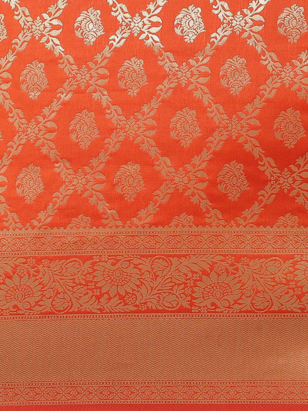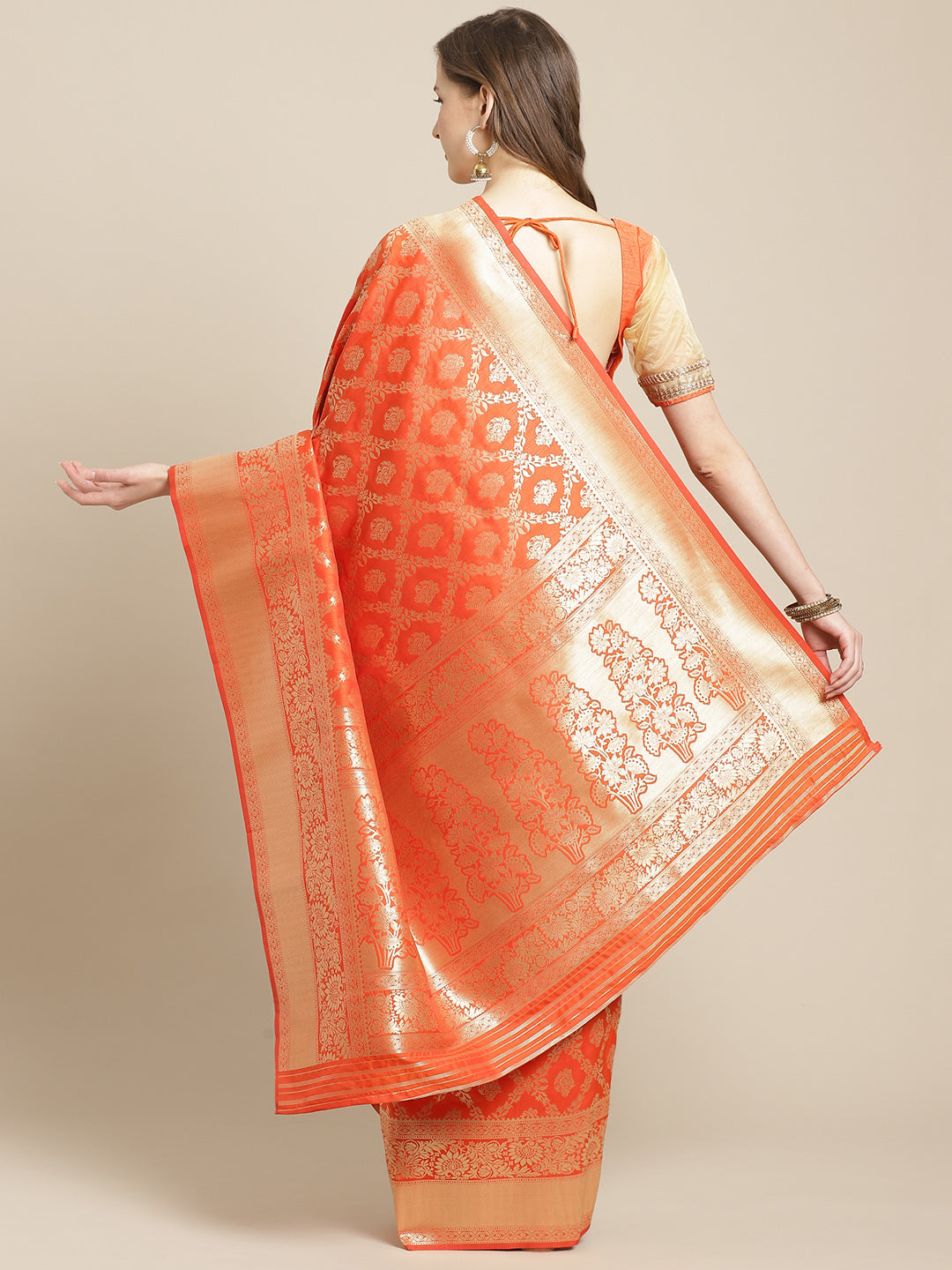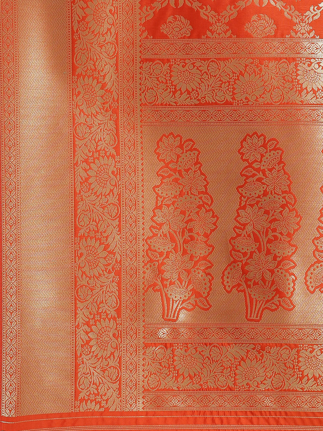 Banarasi Handloom Paisley Saree with Gold Zari Weaving in Gharchola Design & Heavy Pallu