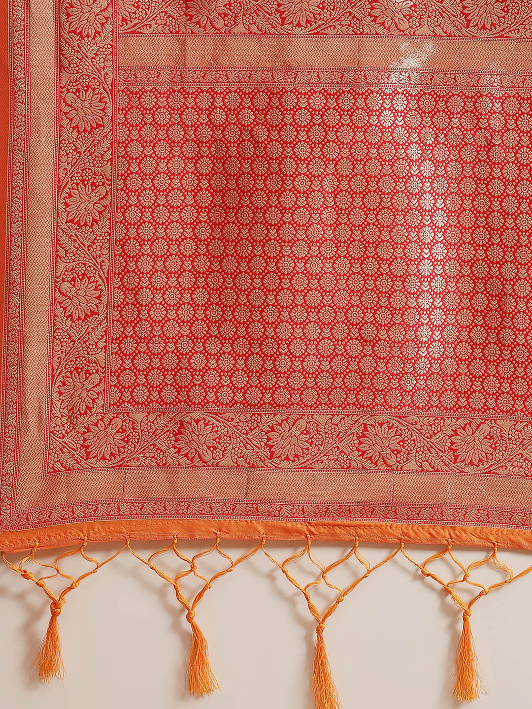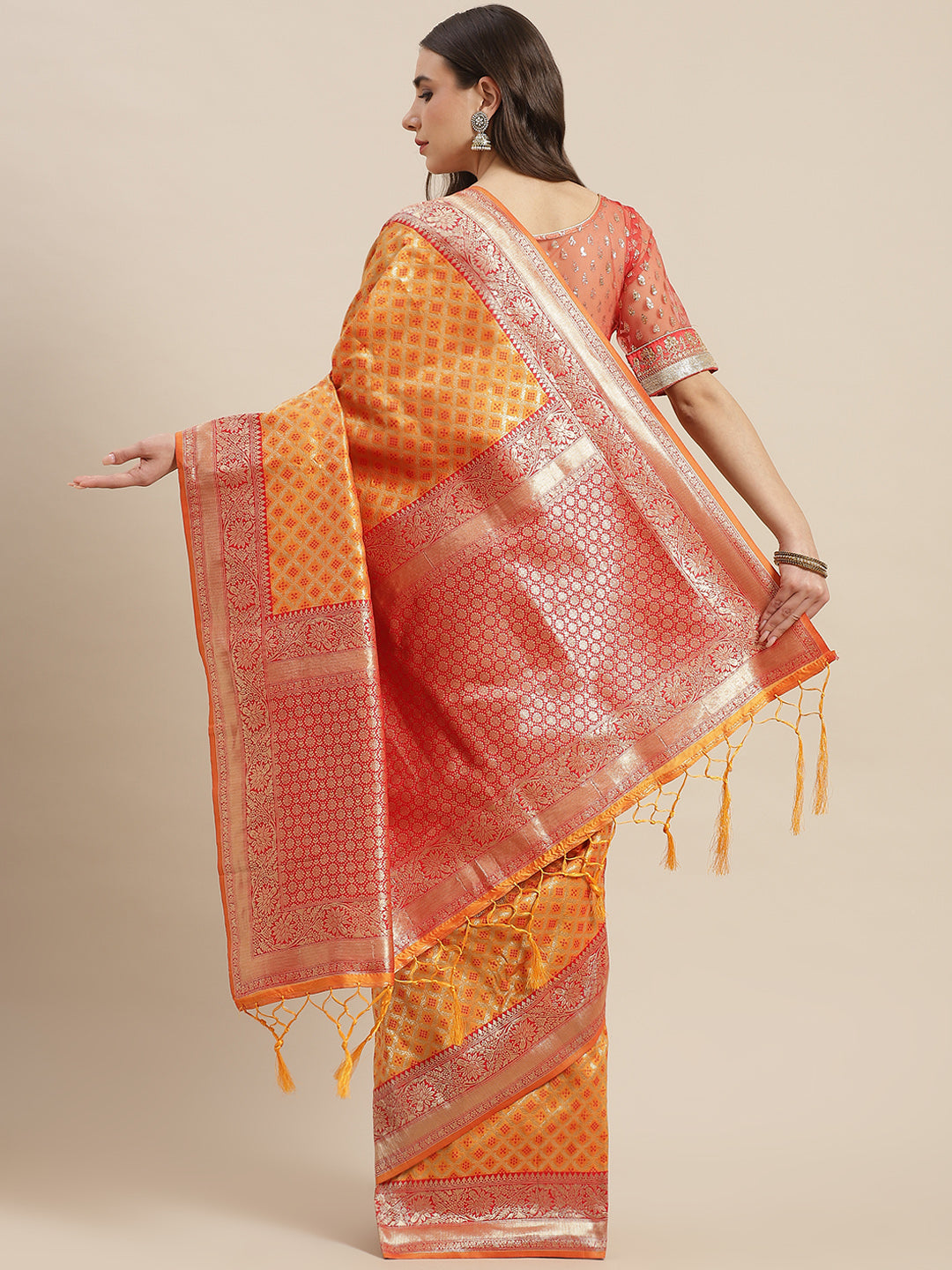 Orange Silk Meenakari Saree Embellished with Contrast Border