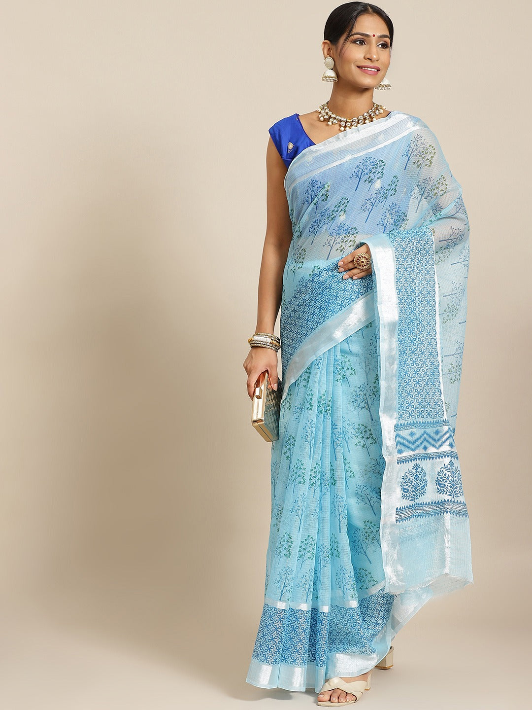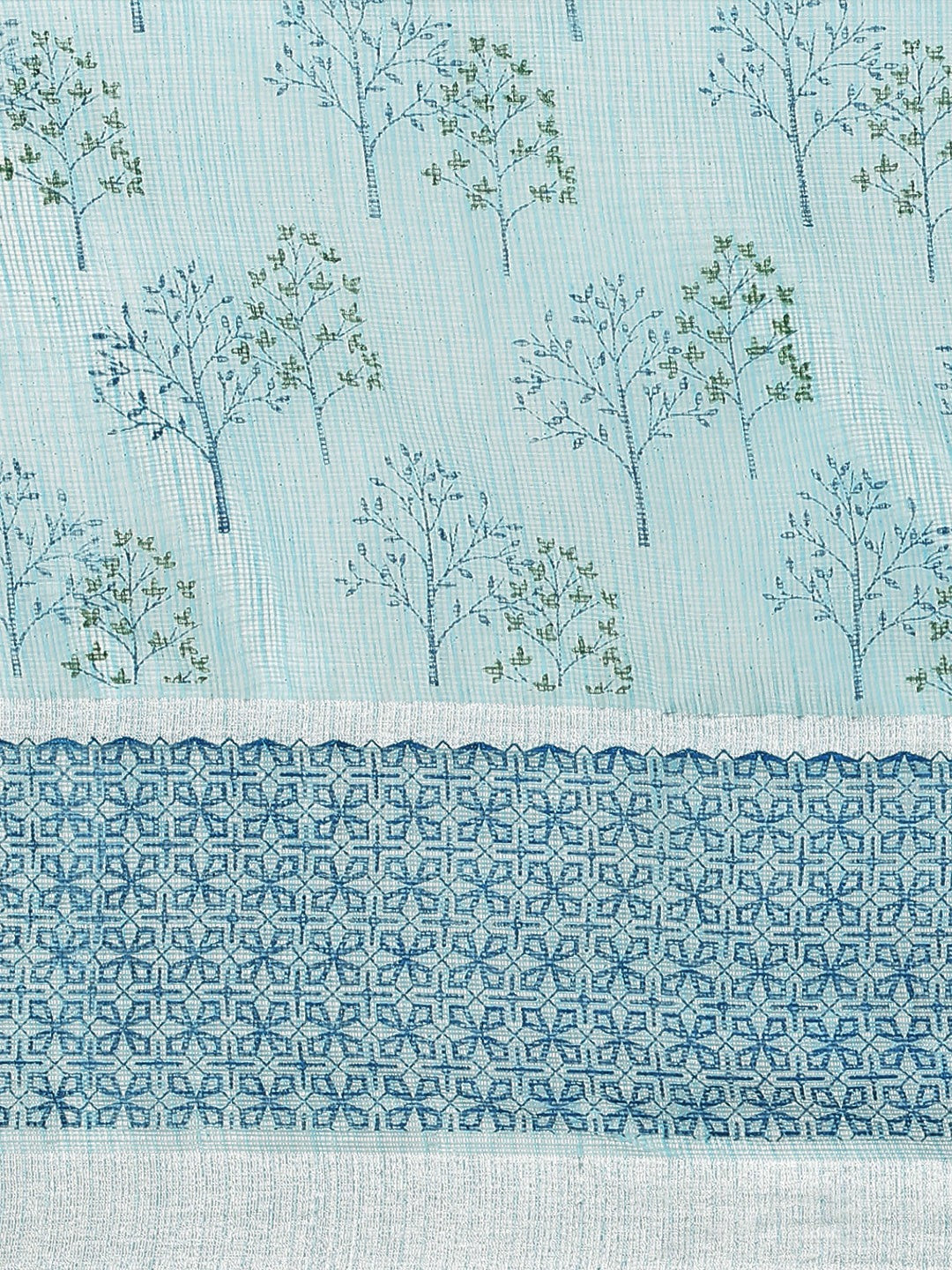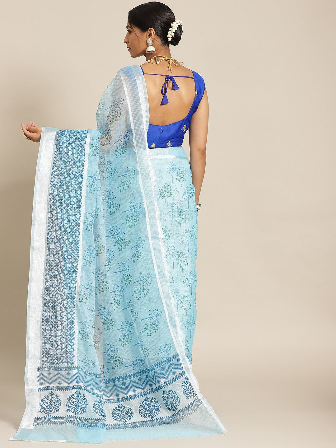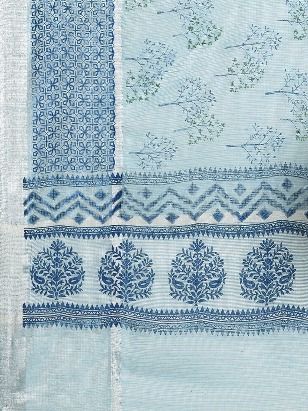 Pastel Blue Printed Floral Summerish Kota Cotton Saree