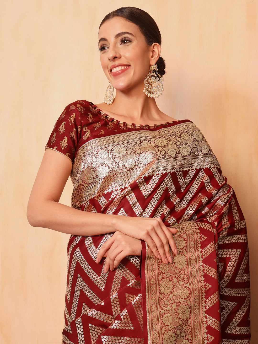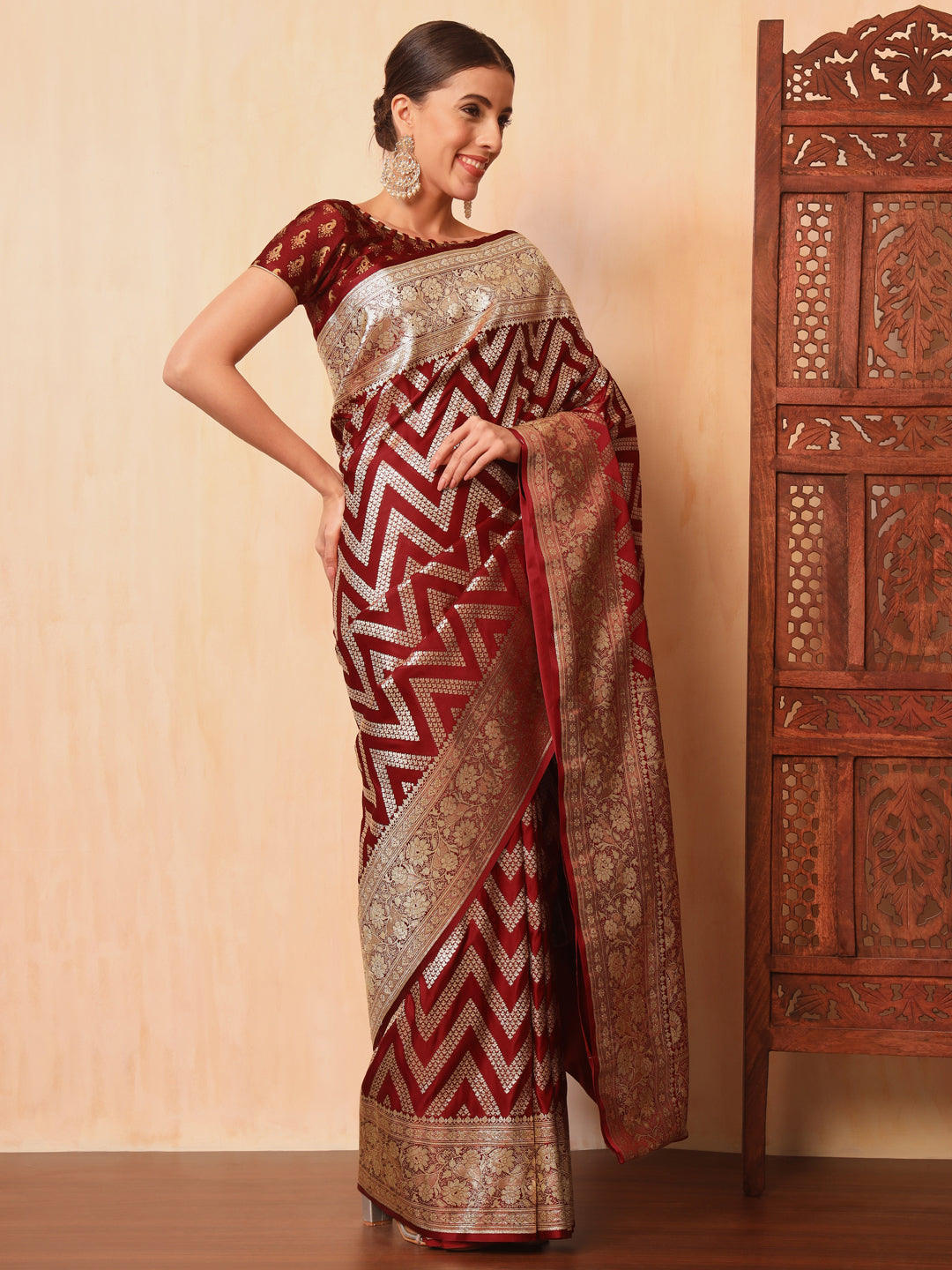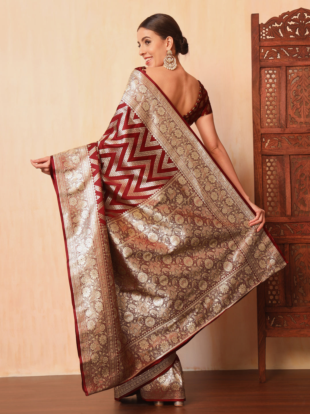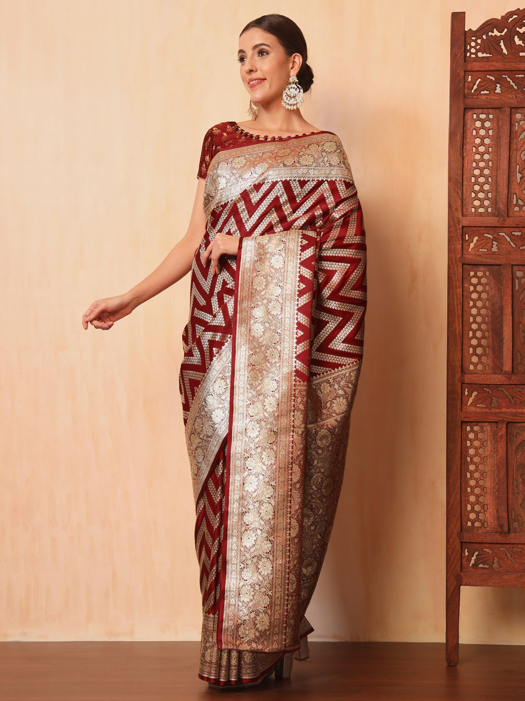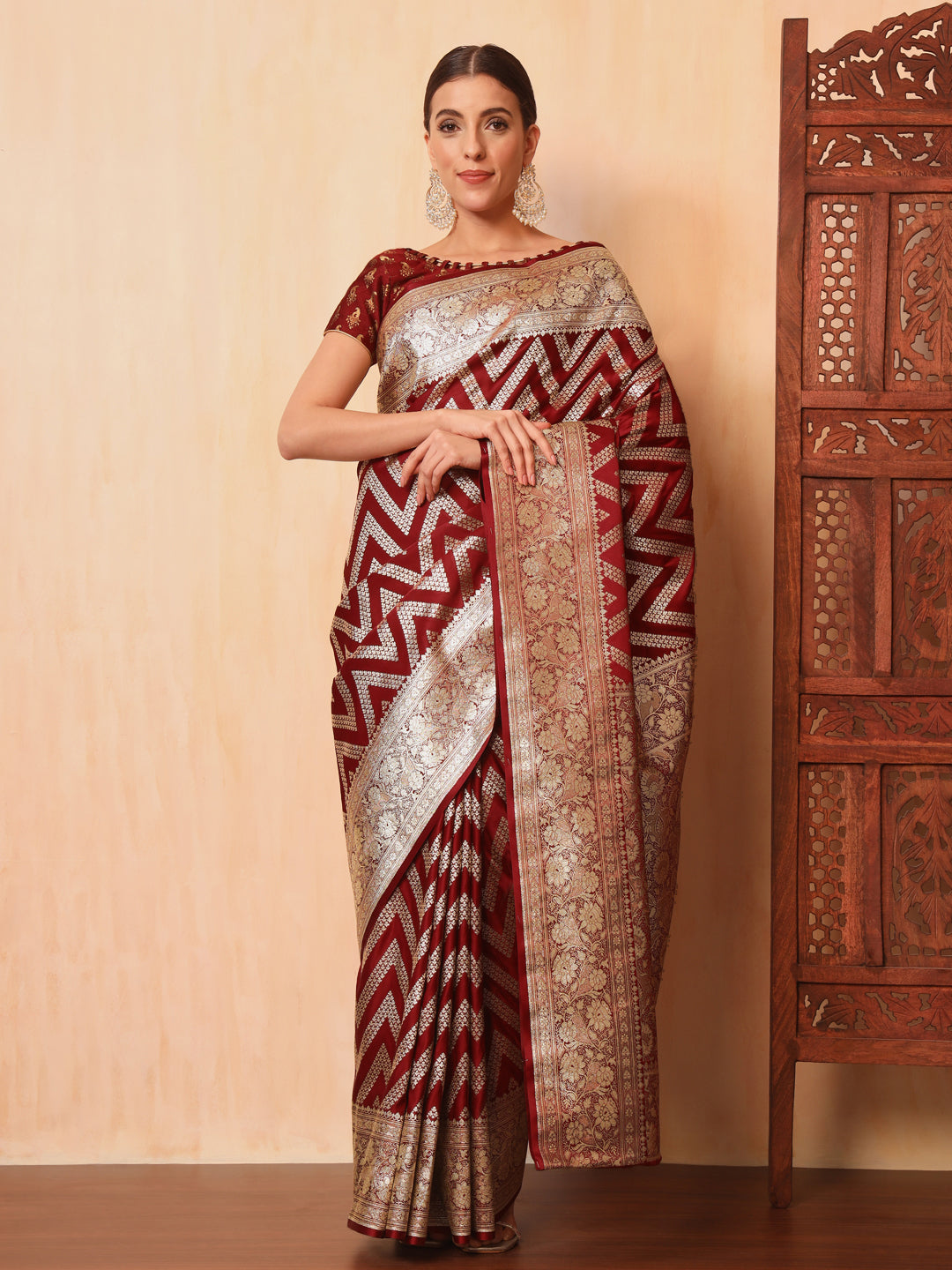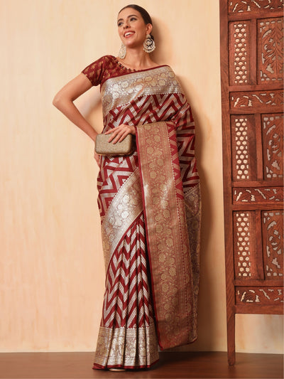 Maroon Kanjeevaram Banarasi Silk Zari Handwoven Saree