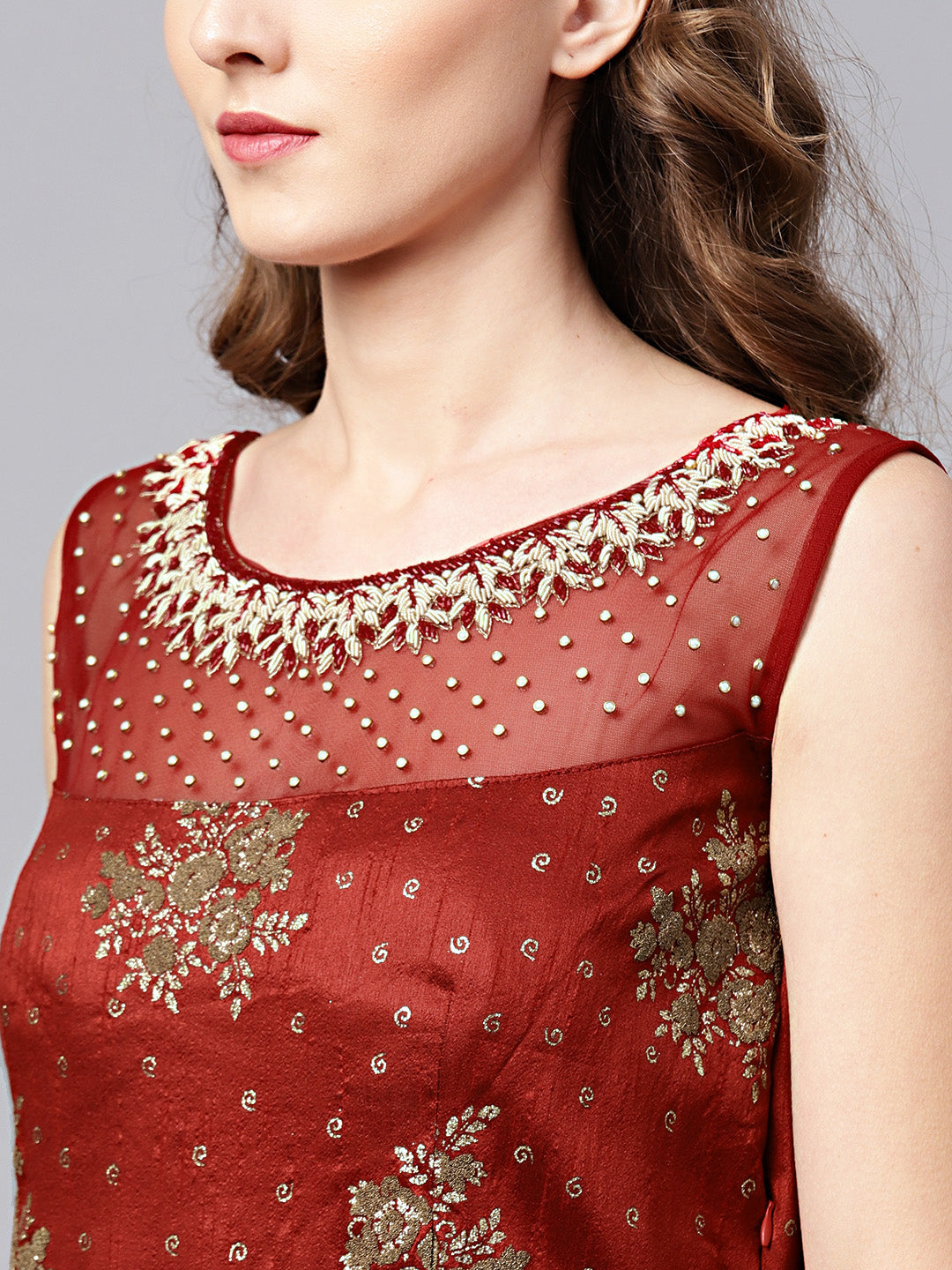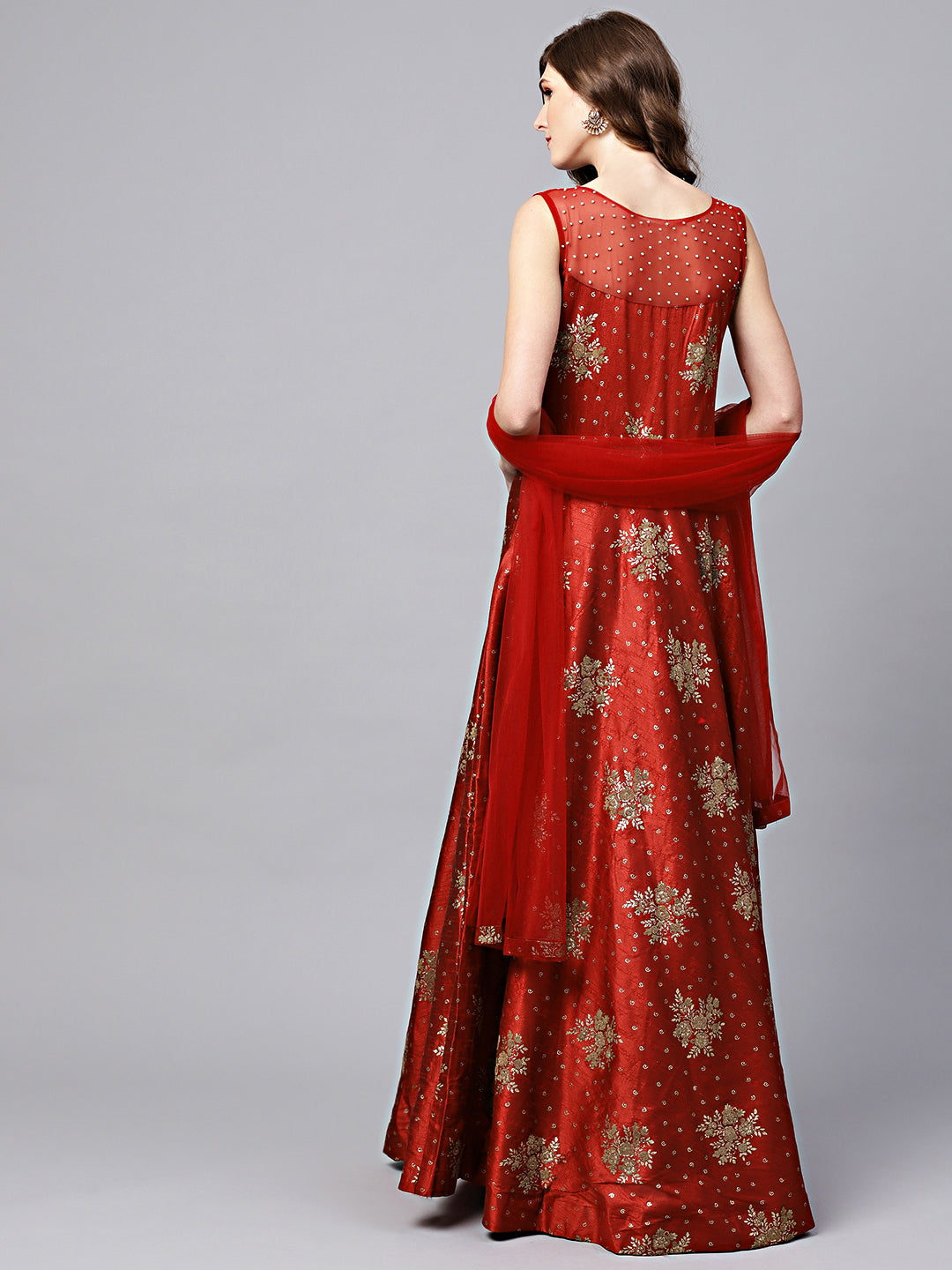 Anarkali Kurta Set with Pearl Embellishments and Foil Print