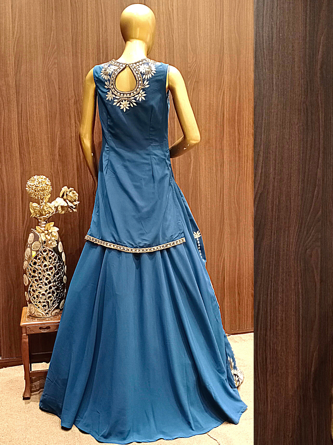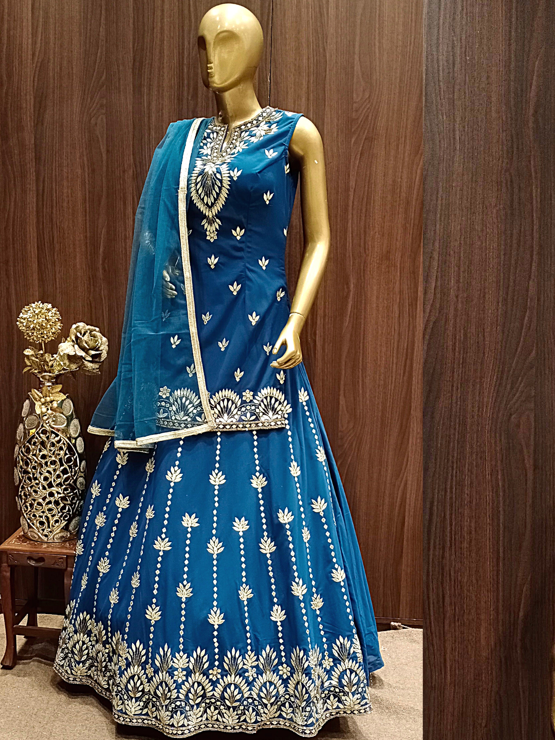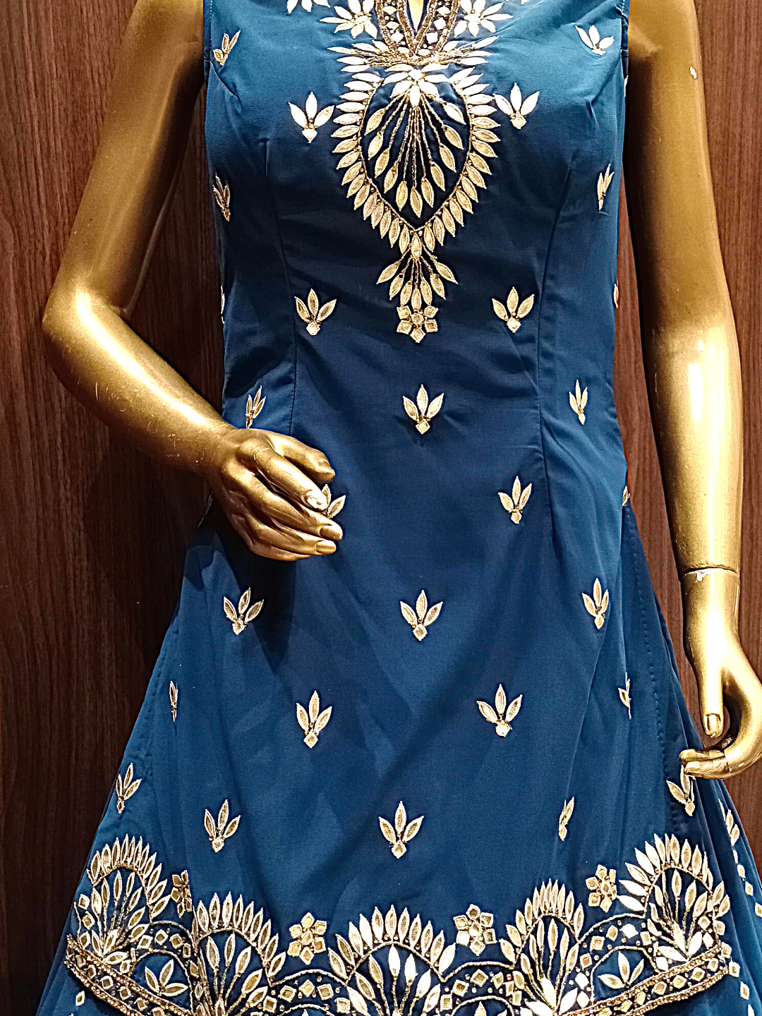Deep Blue Jacket Choli with Lehenga embellished with Gotta Patti Embroidery & Ethnic Motifs