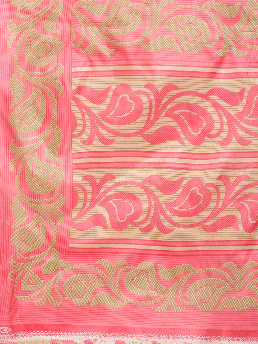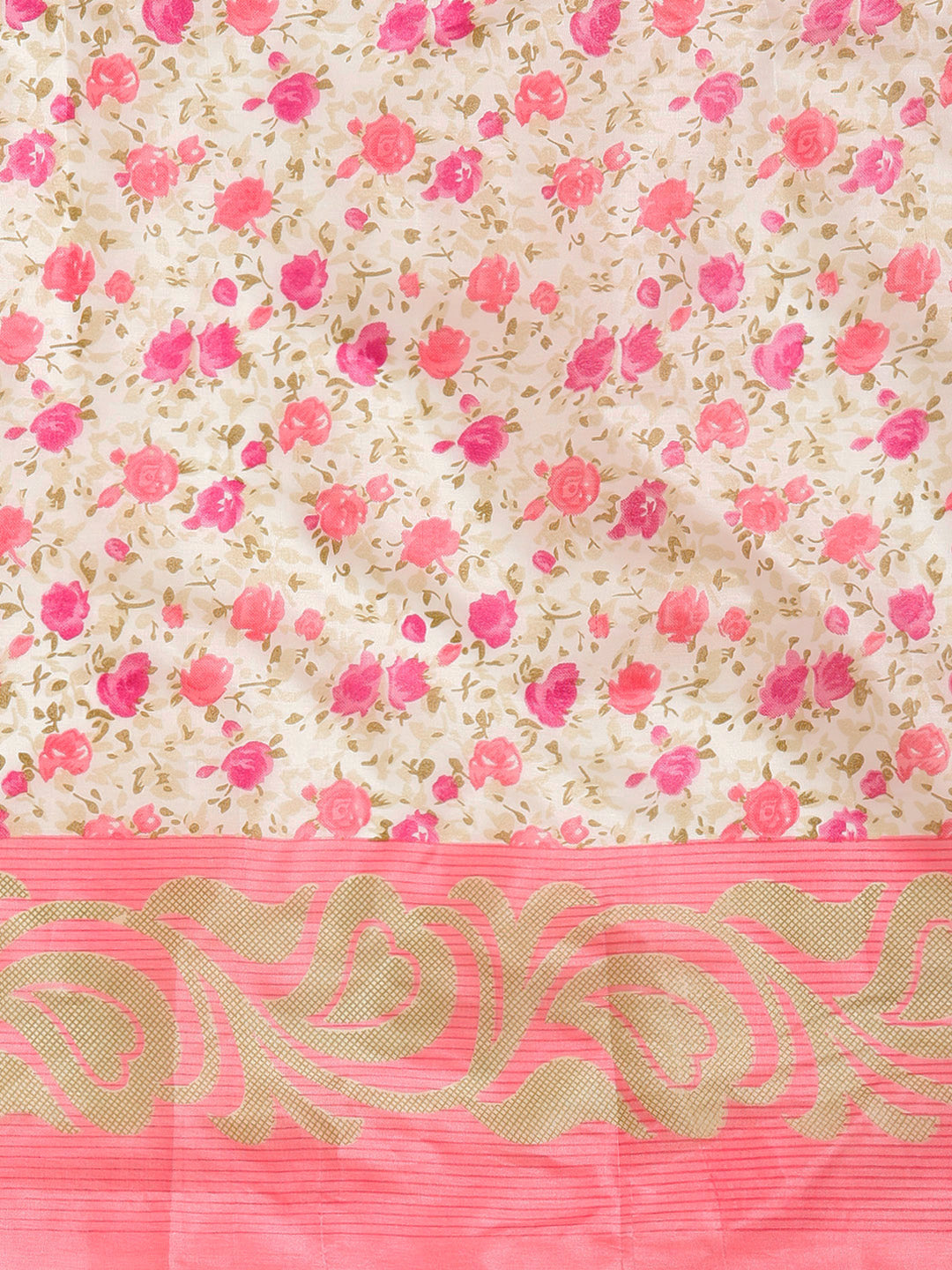 Printed Bhagalpuri Saree with Multicolor Floral and Paisley Motifs