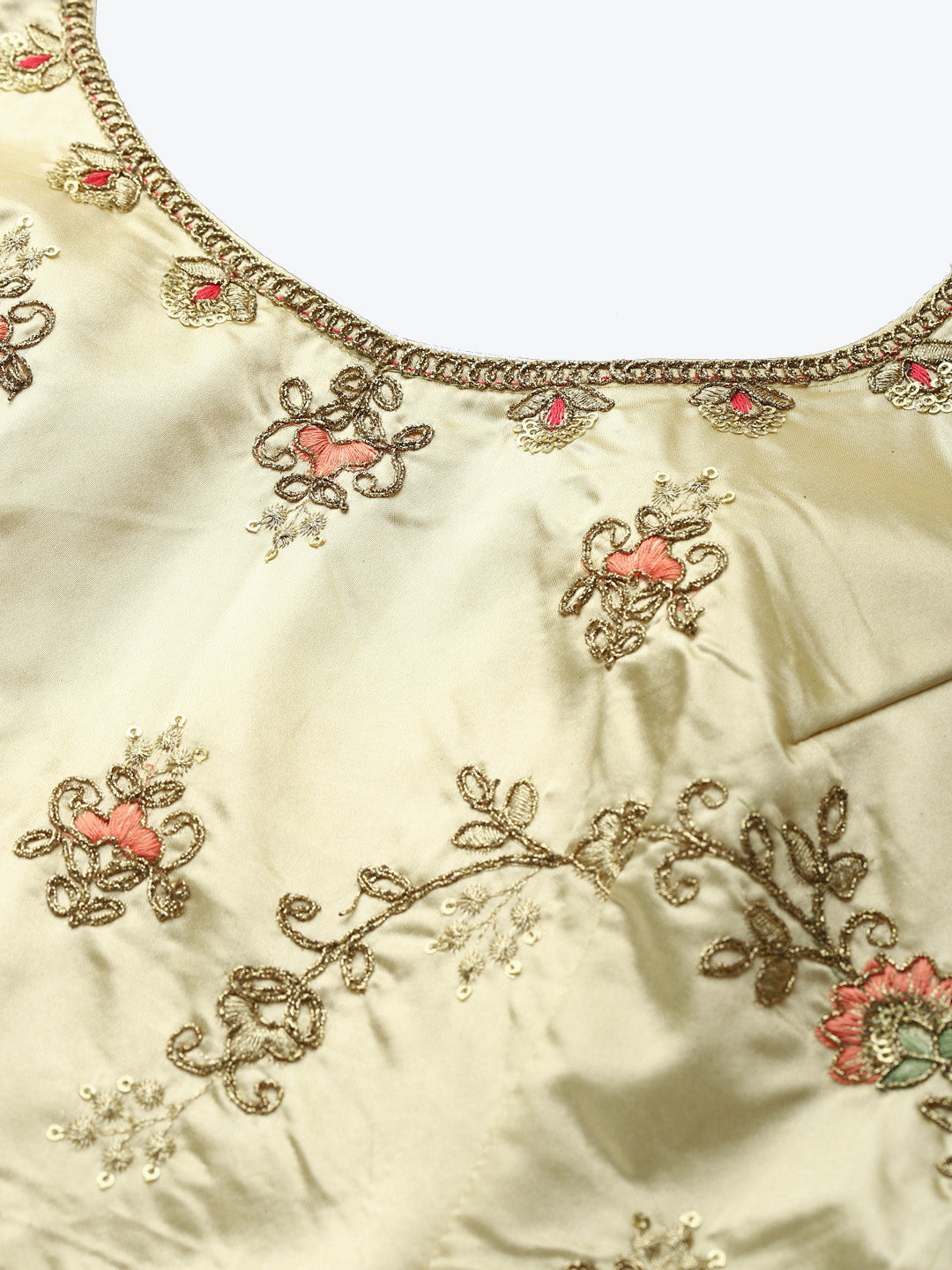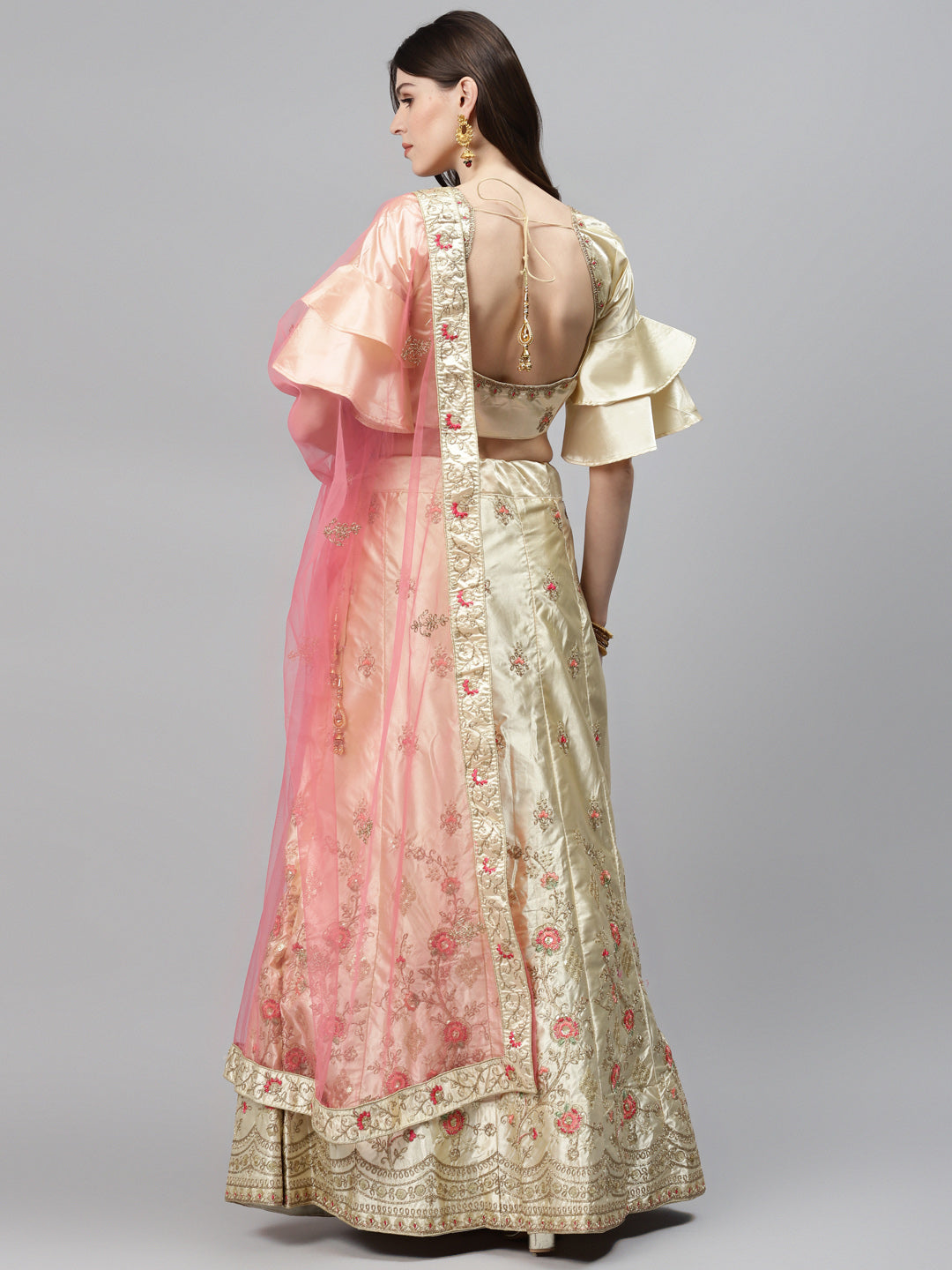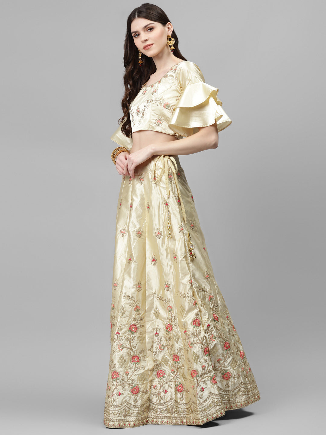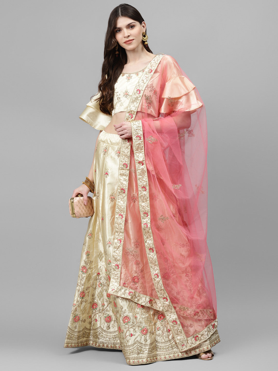 Ivory Semi-Stitched Lehenga Set with Zari & Resham Meenakari Floral Embroidery