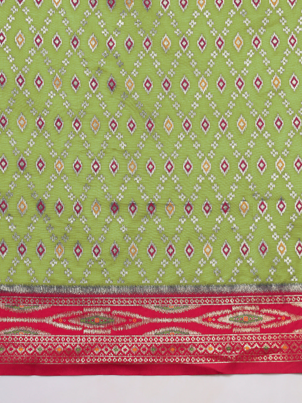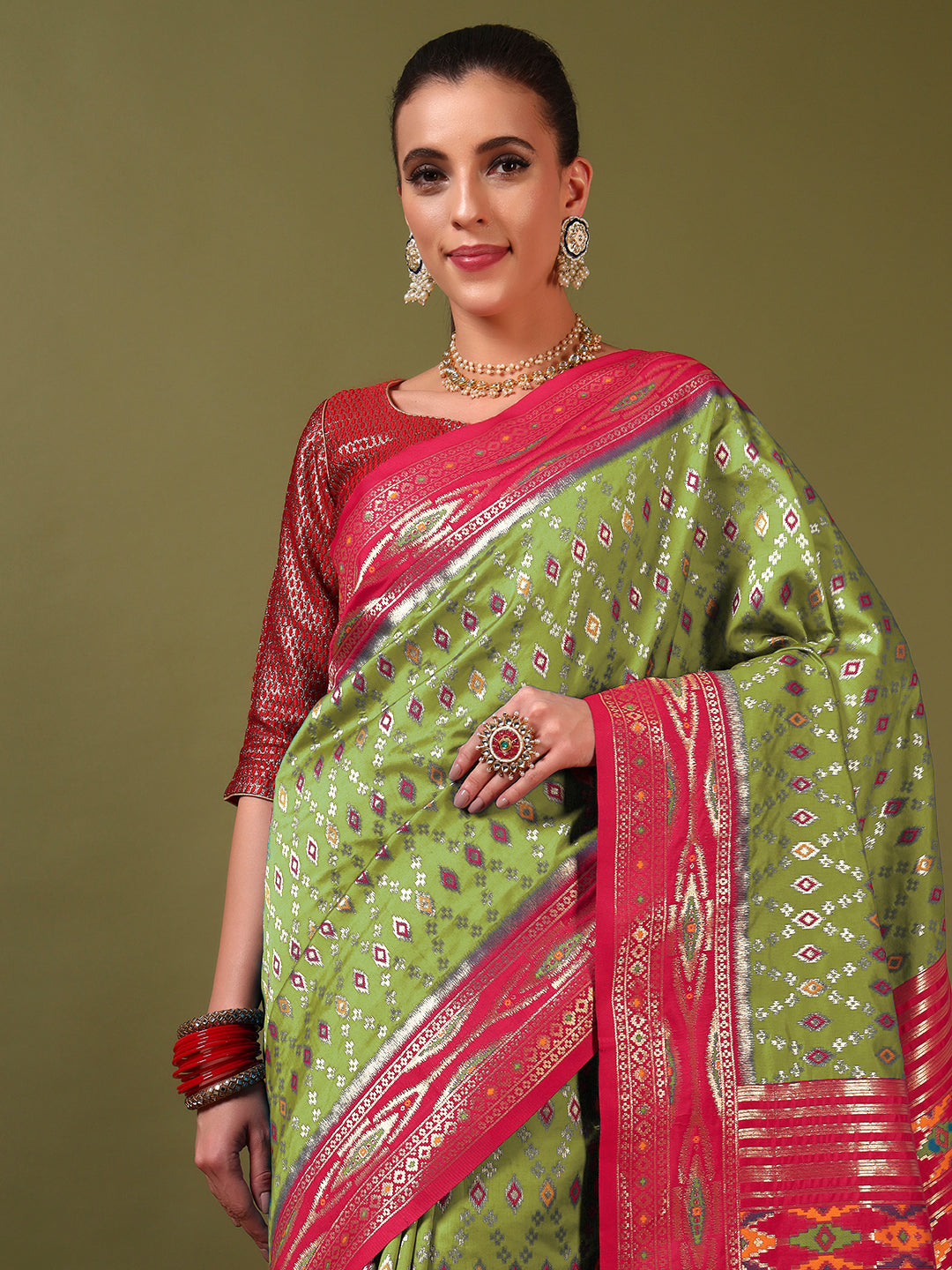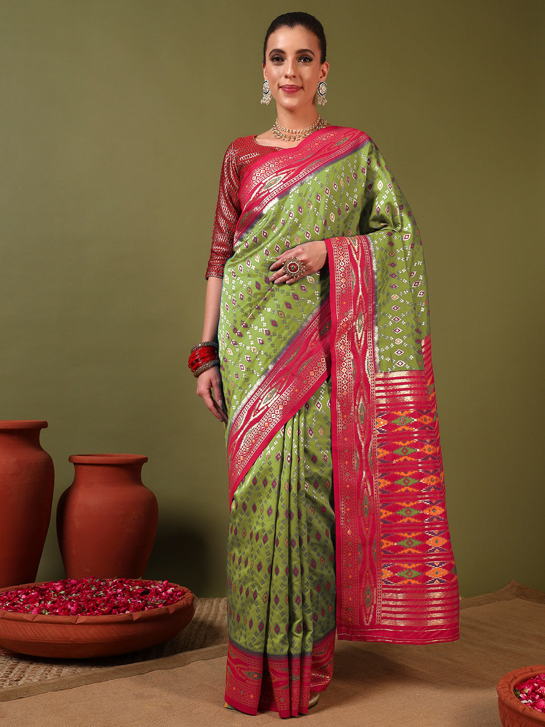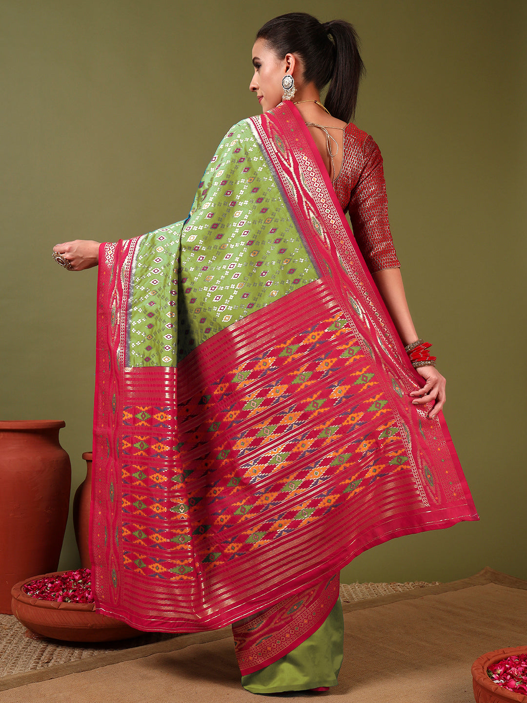 Rich Ikat Pochampally Silk Saree with Meenakari Weaving & Contrast Border