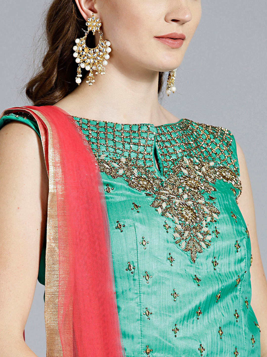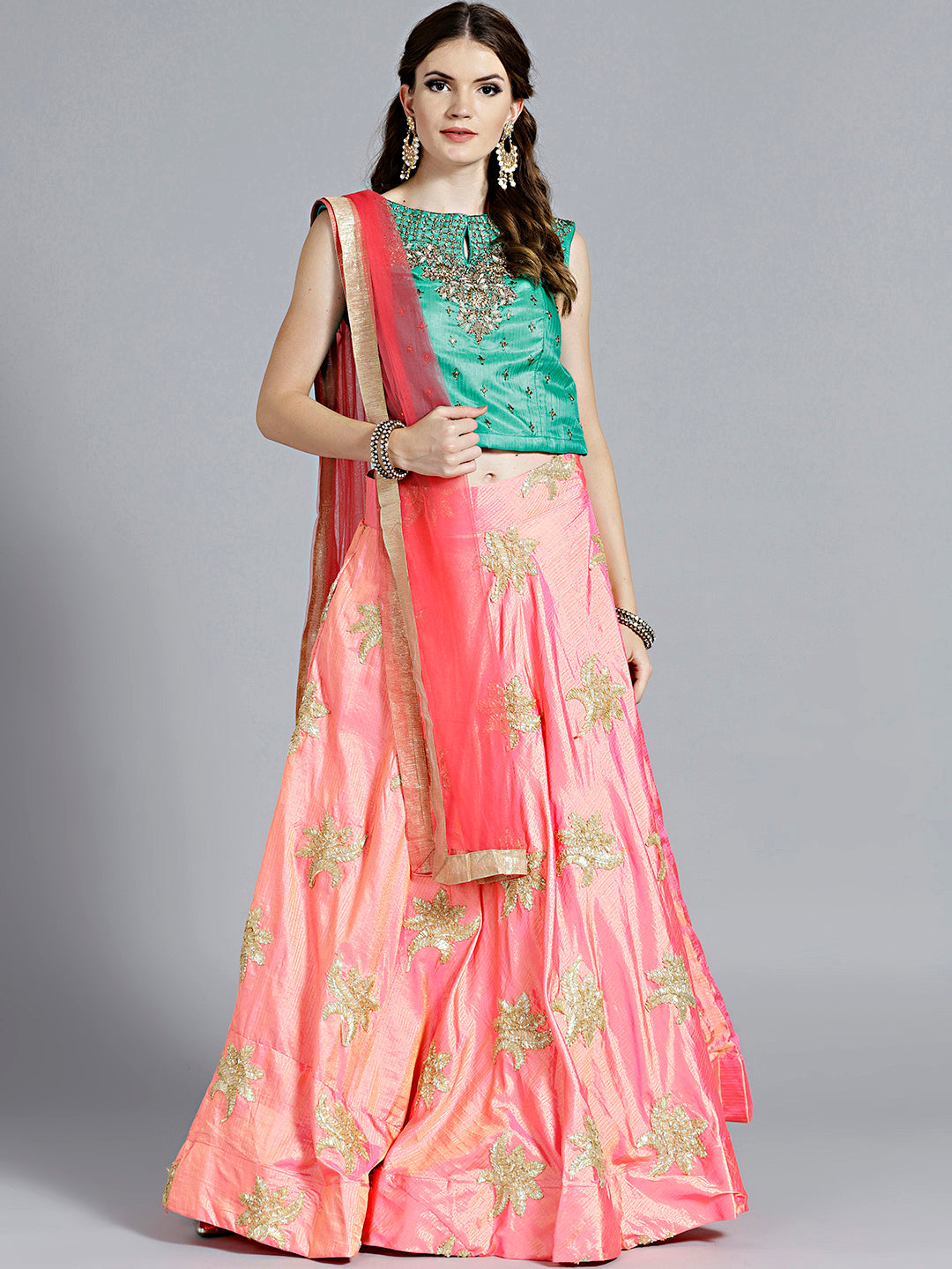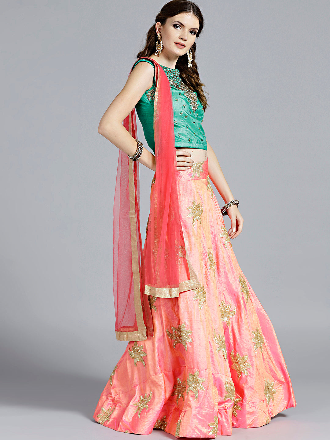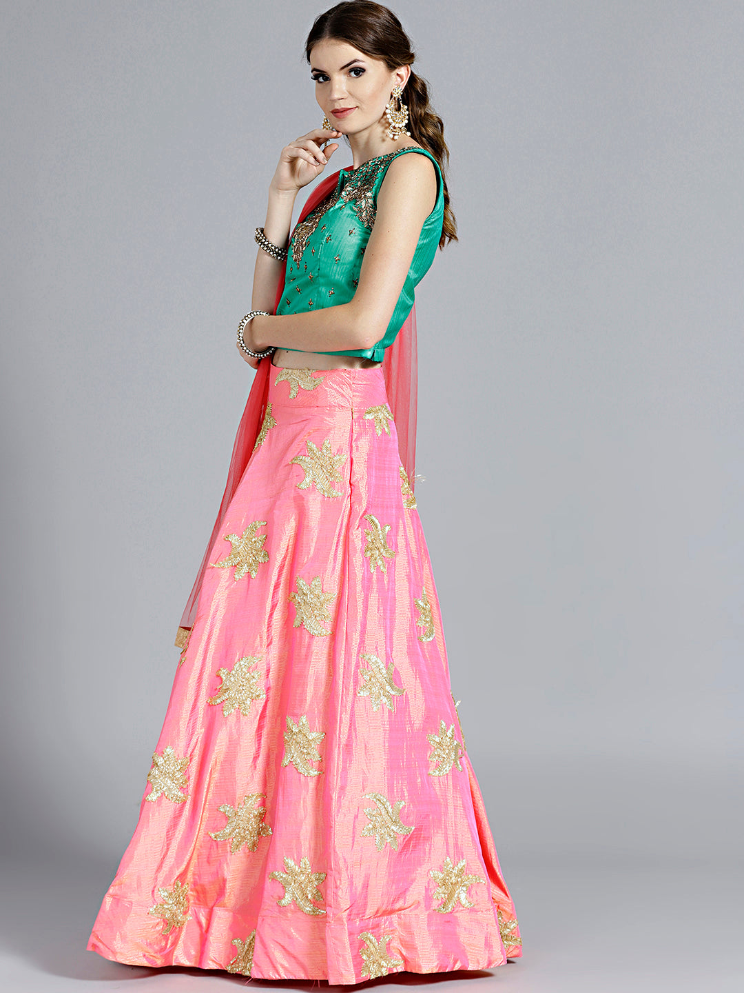 Colorblocked Gota Embroidered Silk Lehenga Choli