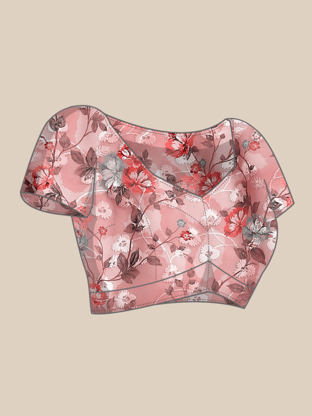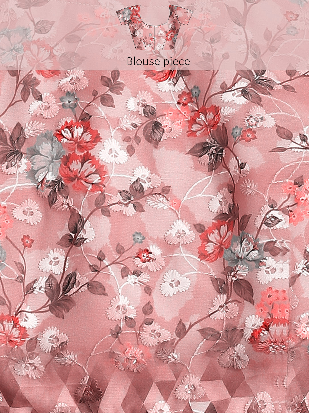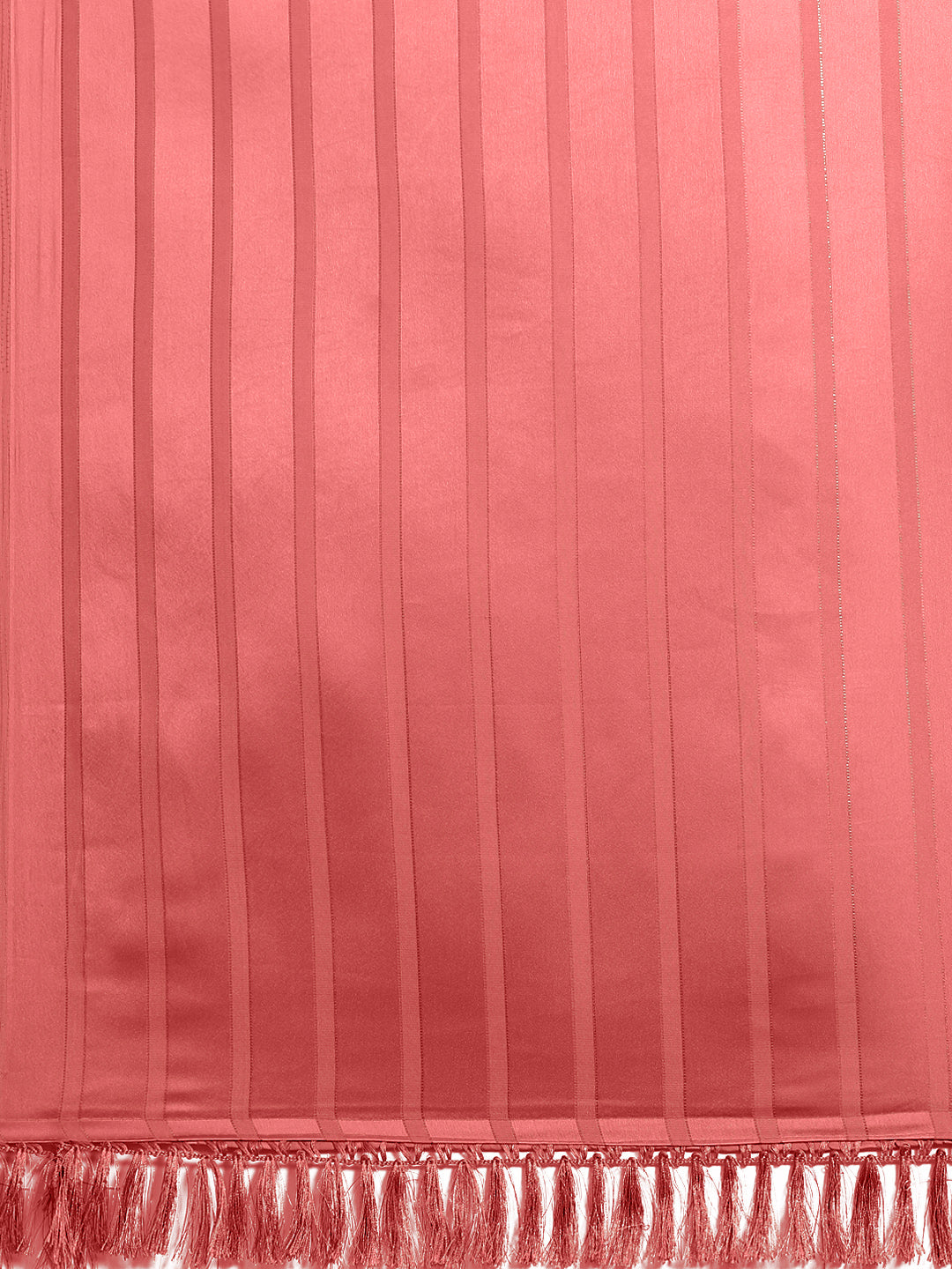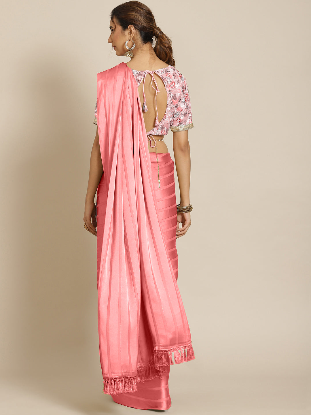 Pastel Pink Lucex Striped Satin Saree With Shiffli Embroidery Blouse
