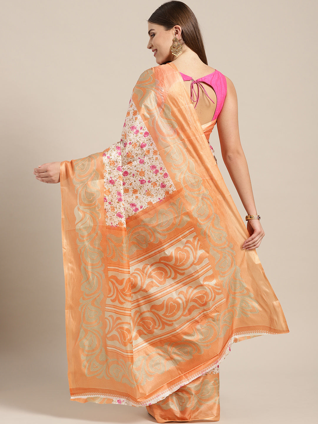 Printed Bhagalpuri Saree with Multicolor Floral and Paisley Motifs