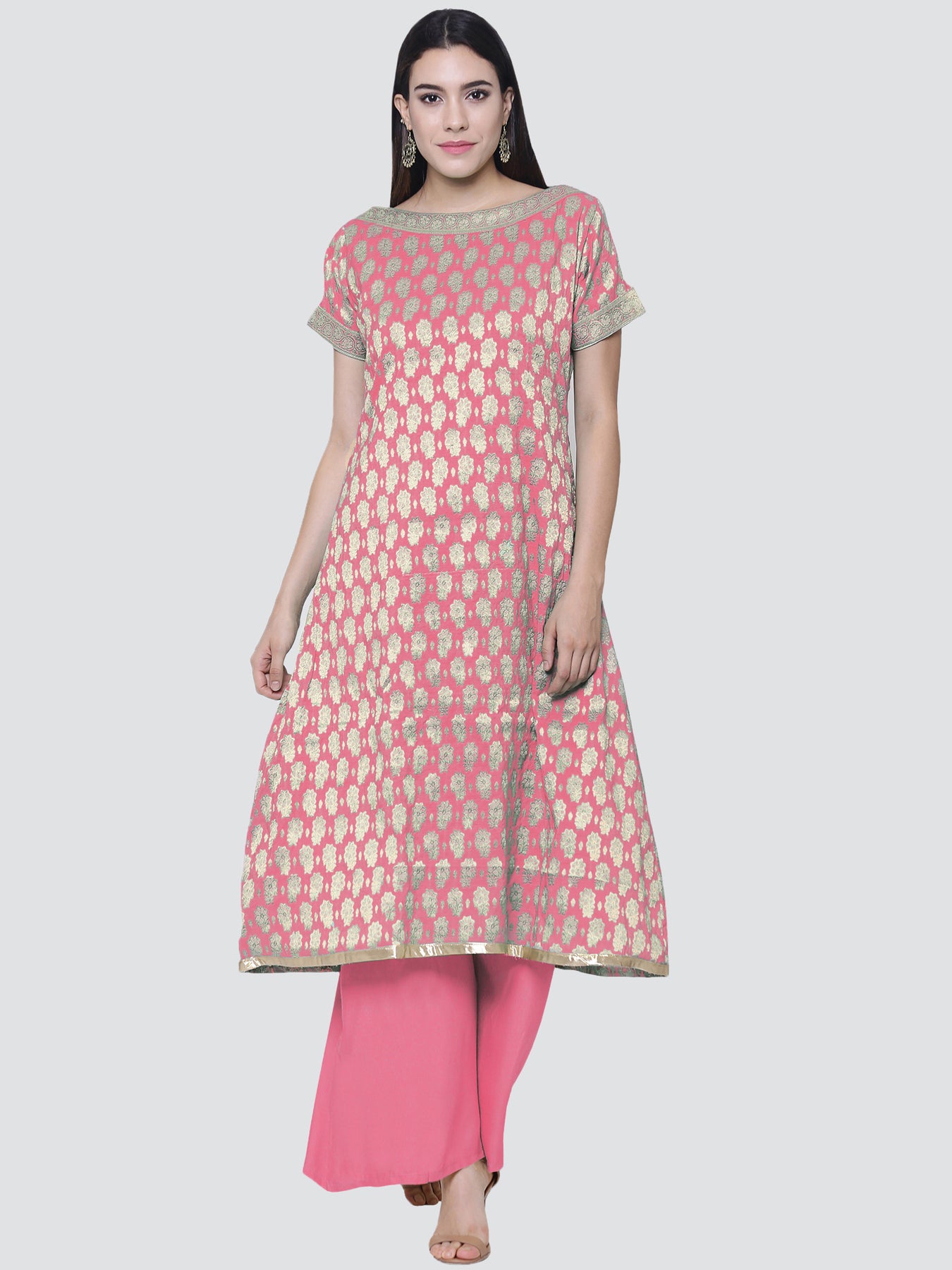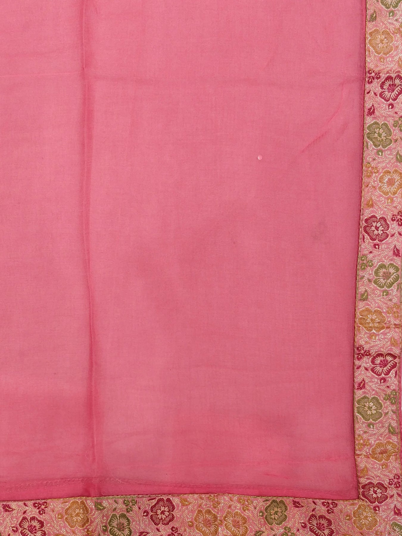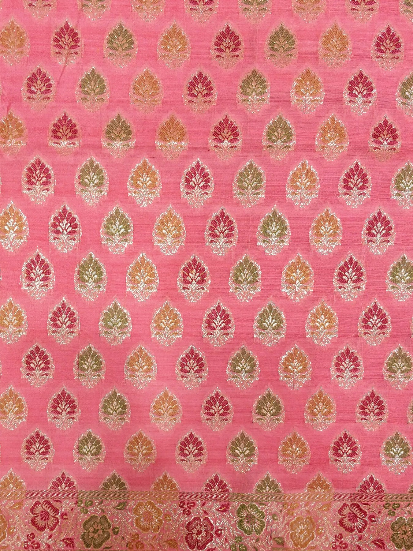 Pink Chanderi Neemzari Unstitched Material With Zari Resham Weaving