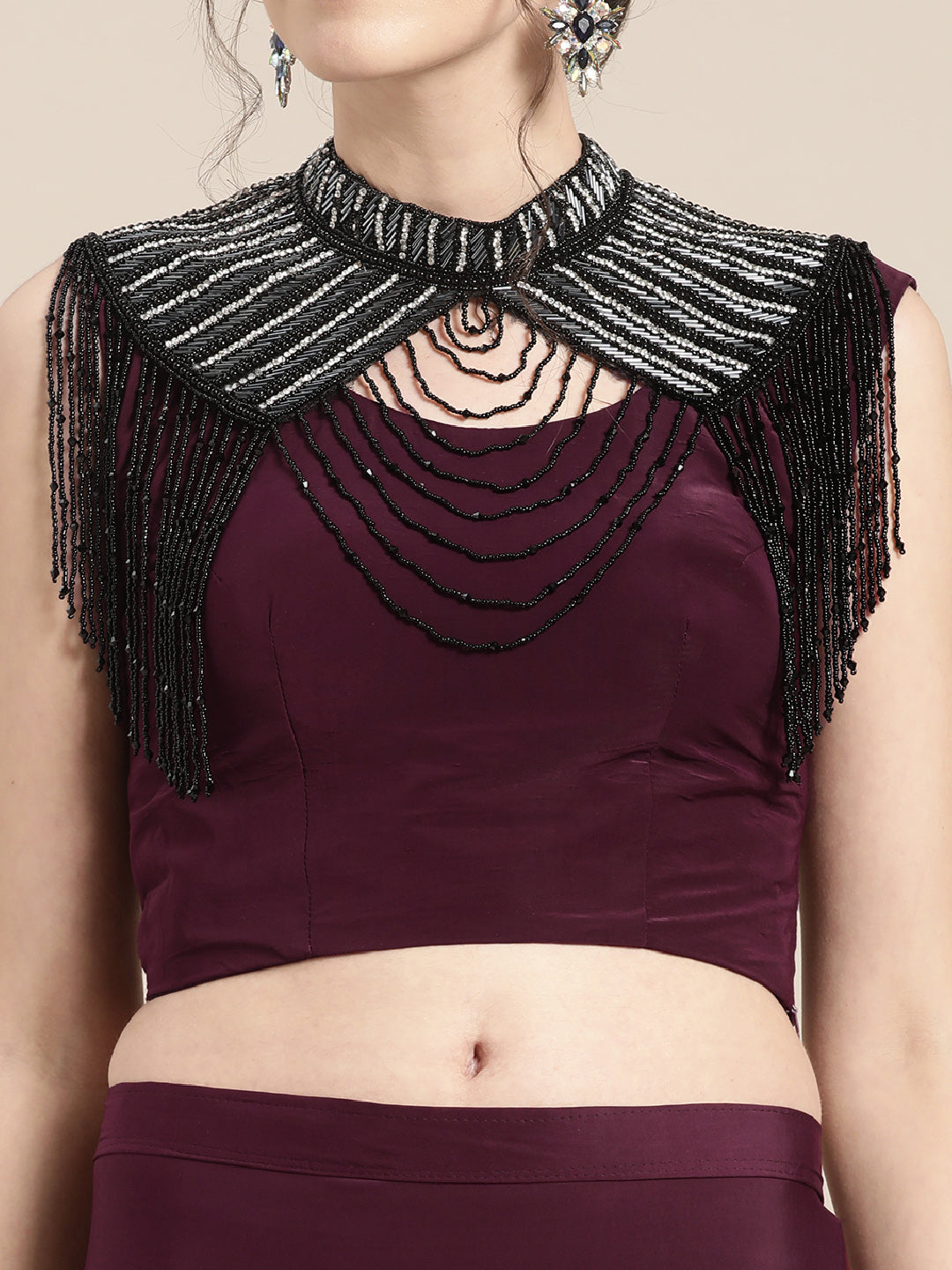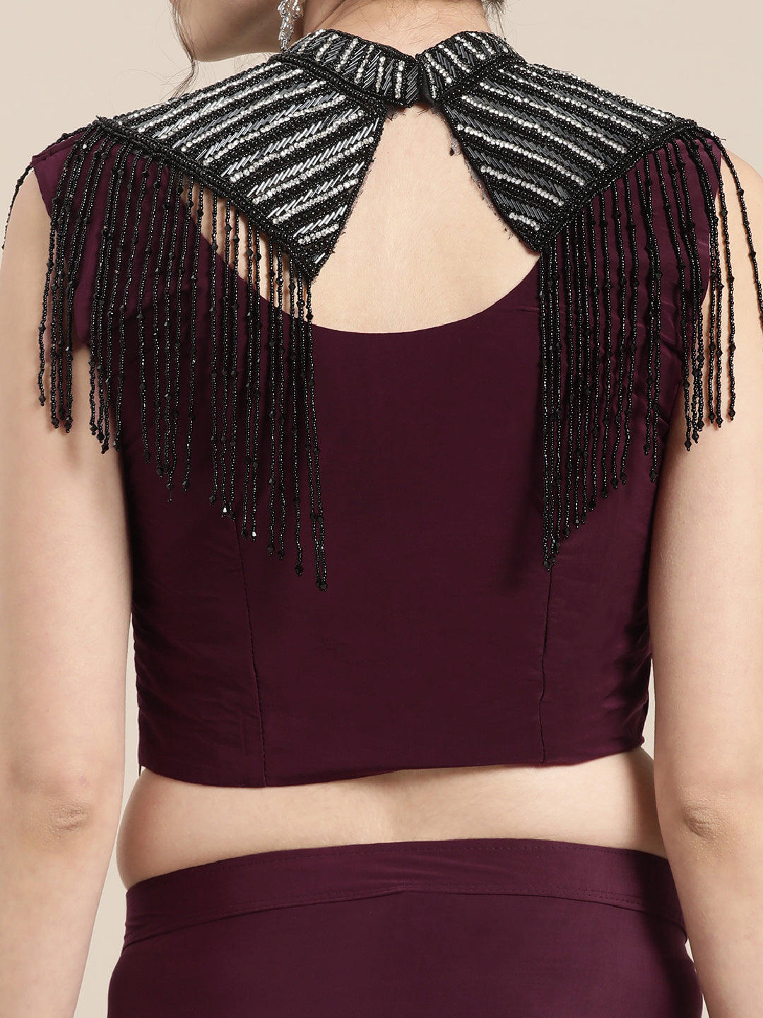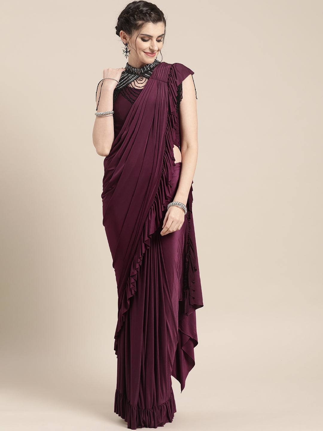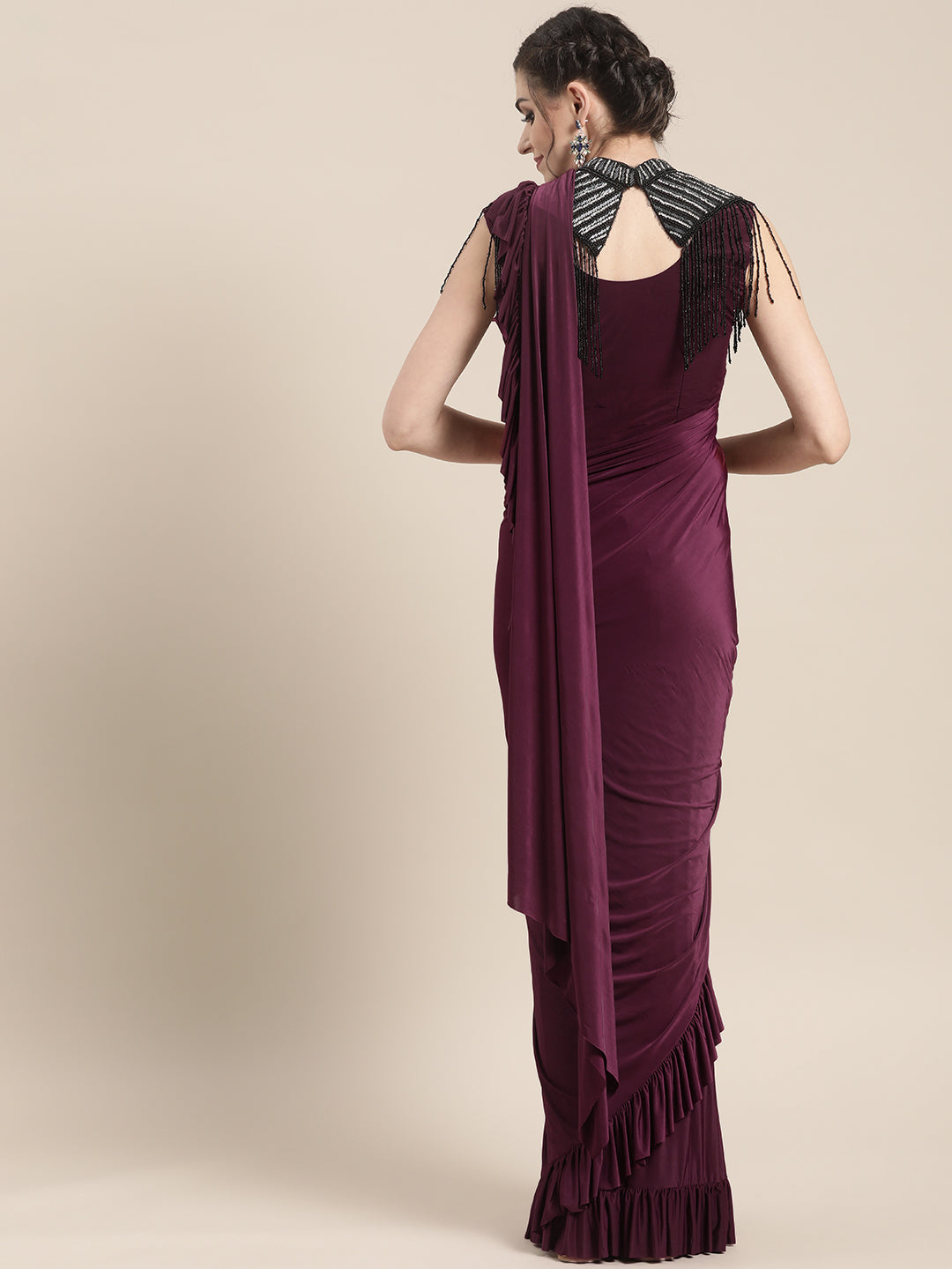 Draped Ruffled Pre-stitched Saree with Tassled Jeweled Neckpiece