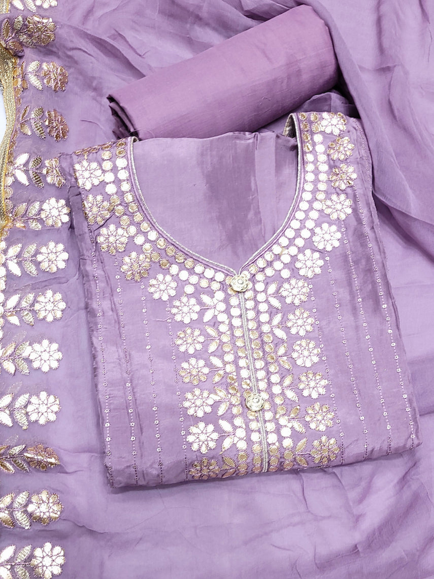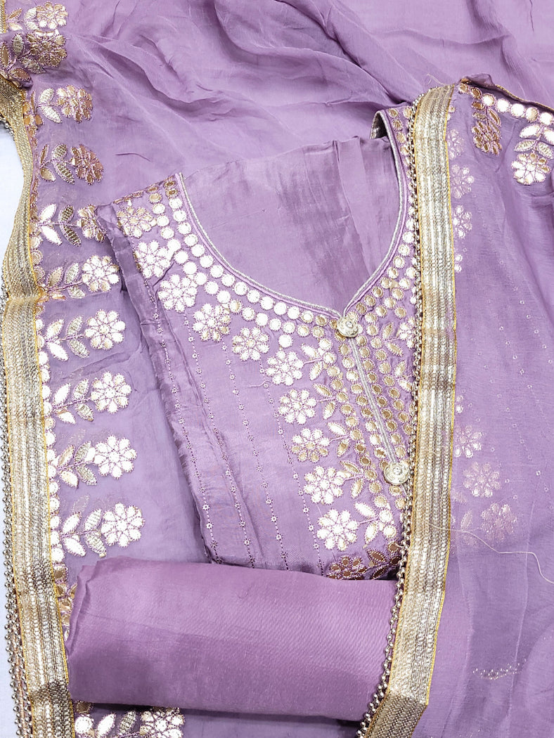 Gota Patti & Sequin Embroidered Semi-stitched Punjabi Suit Dupatta in Pastel Color