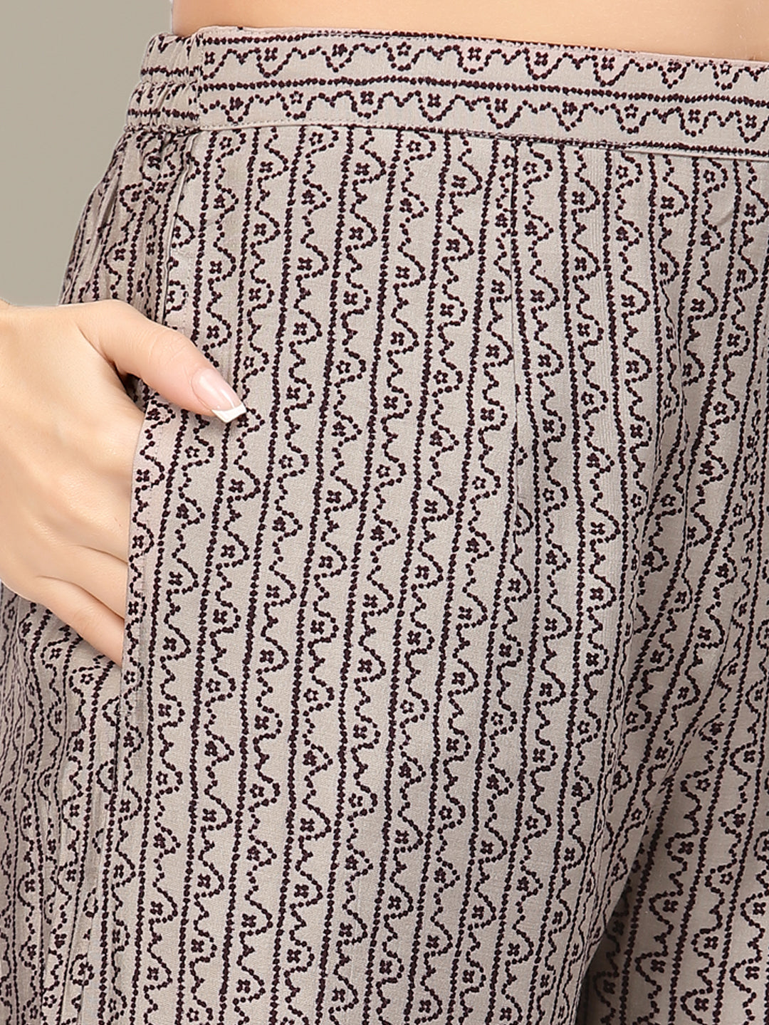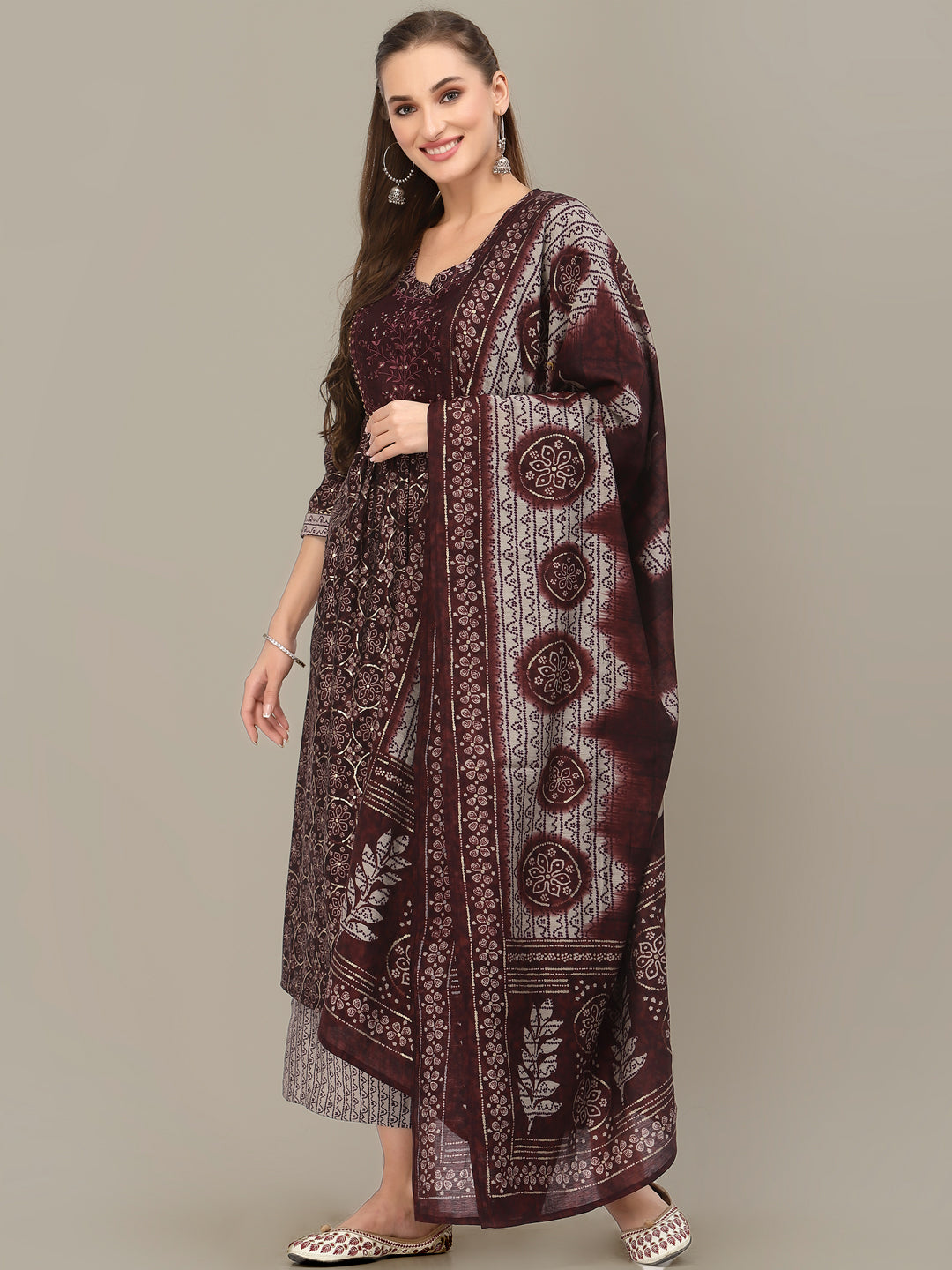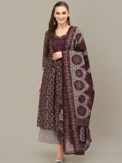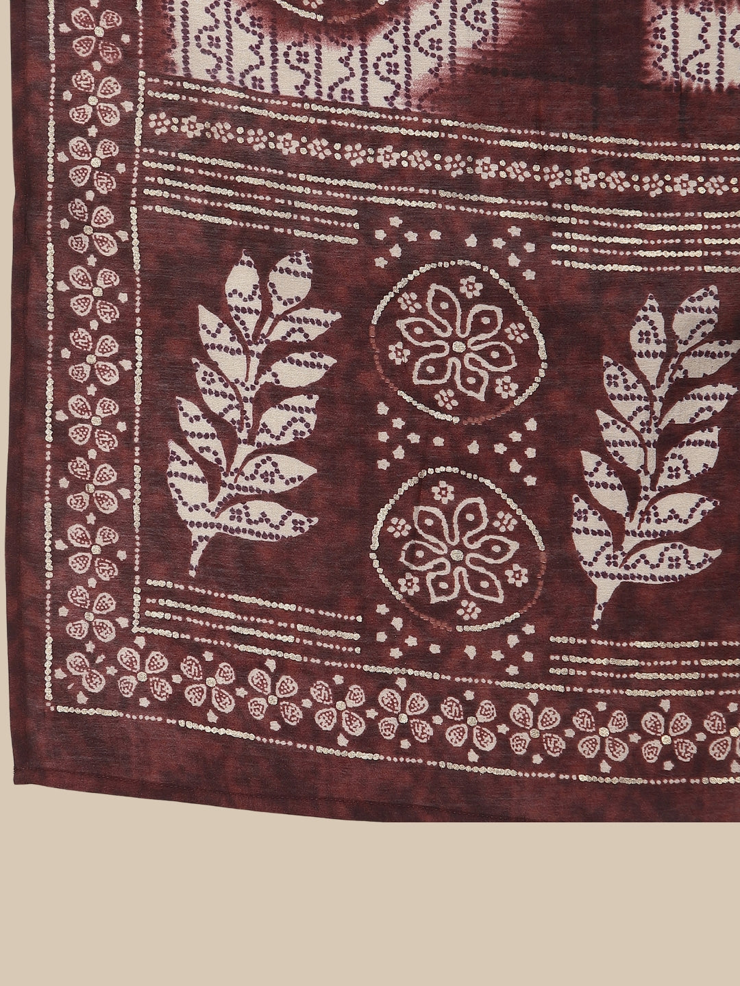 Burgundy Digital Indi Prints Kurta Palazzo & Mirror Resham Embroidery