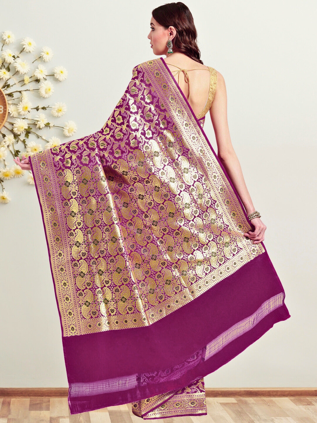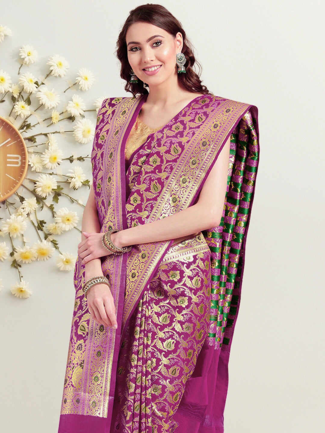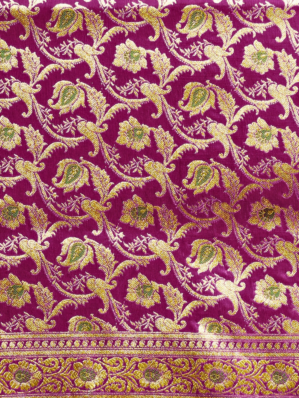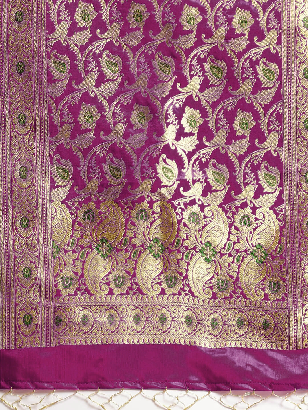 Handloom Banarasi Silk saree with Zari Meenakari weaving and matching Tasseled Dupatta