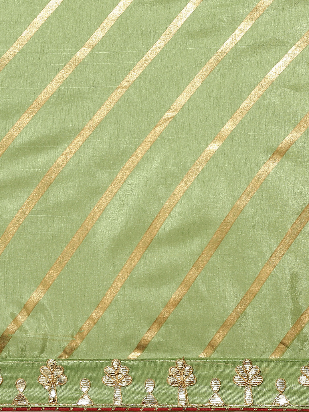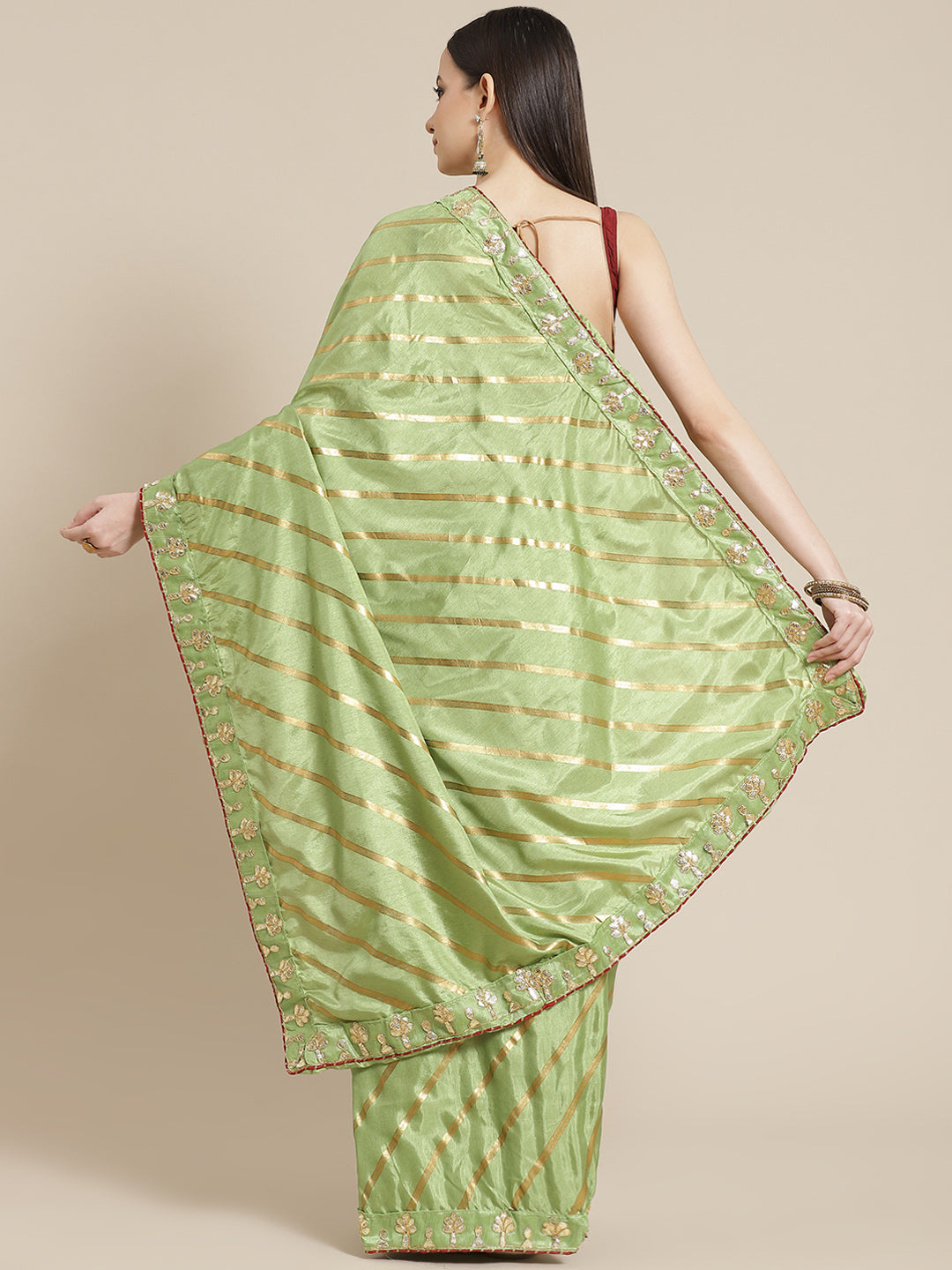 Green Foil Print Leheriya Style Saree with Gotapatti Embroidery Border