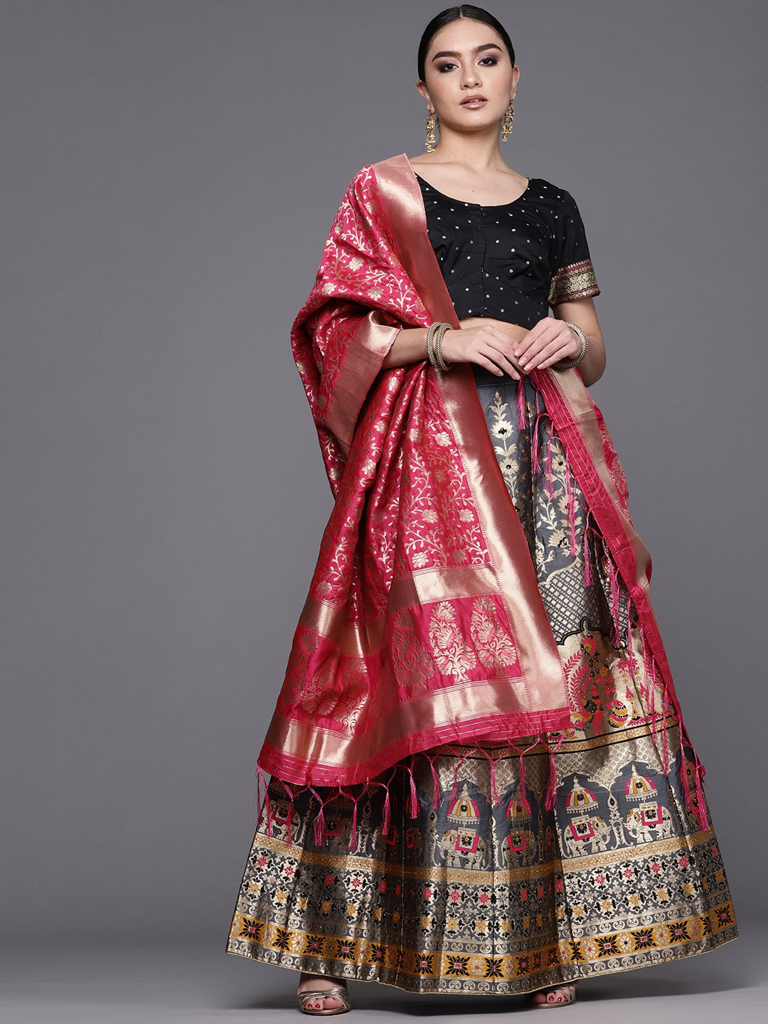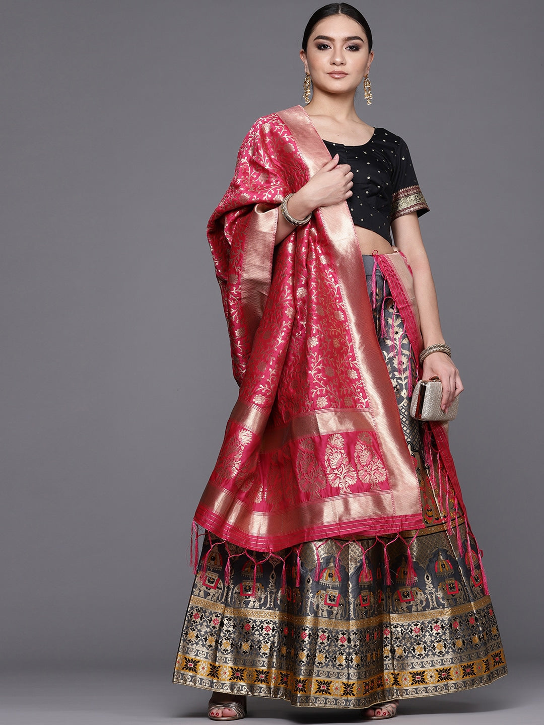 Banarasi Silk Lehenga Choli with Zari & Resham Weaving