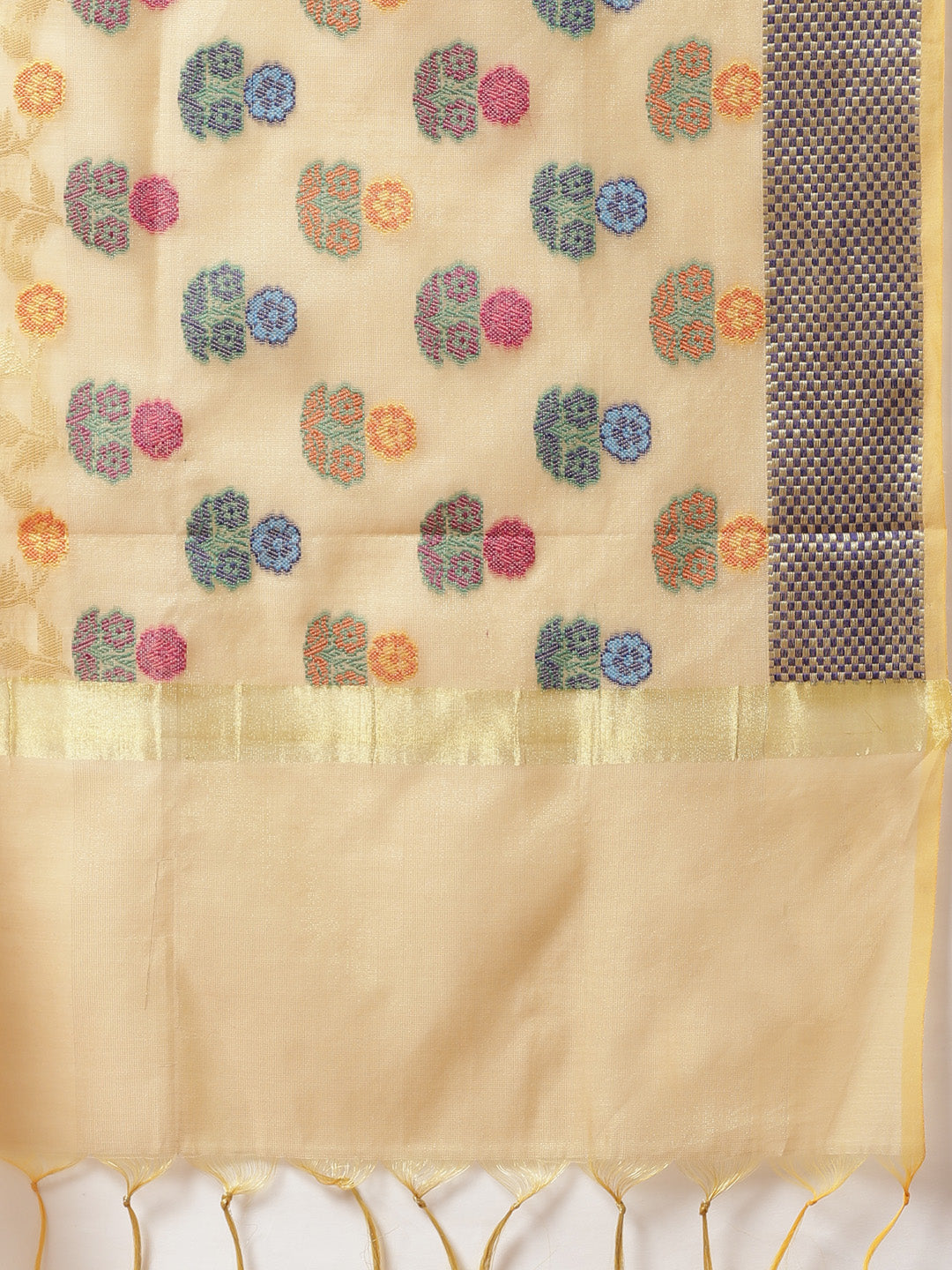 Chanderi Stitched Suit with Resham Embroidery & Woven Banarasi Dupatta
