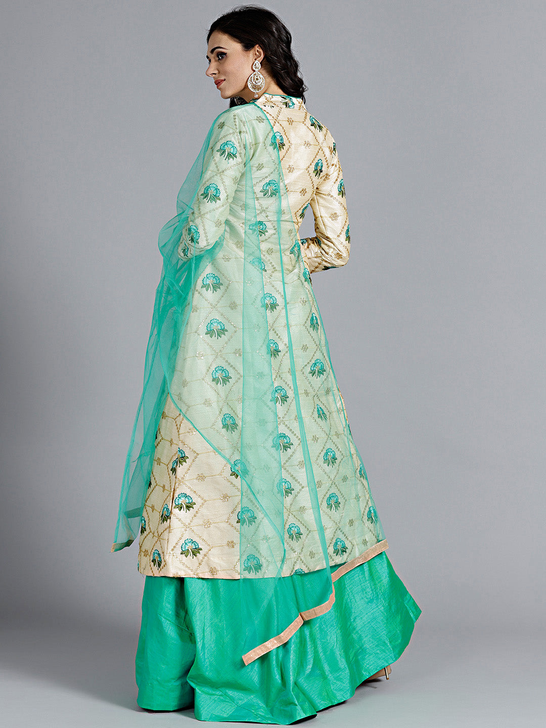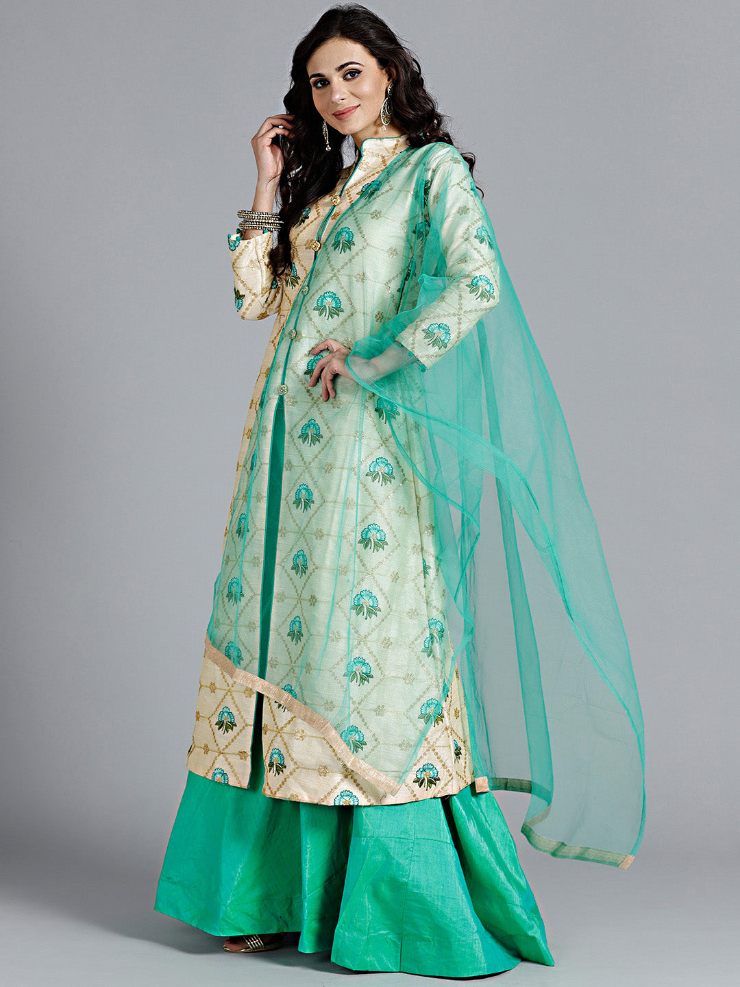 Jacket Style Silk Resham Embroidered Lehenga Set