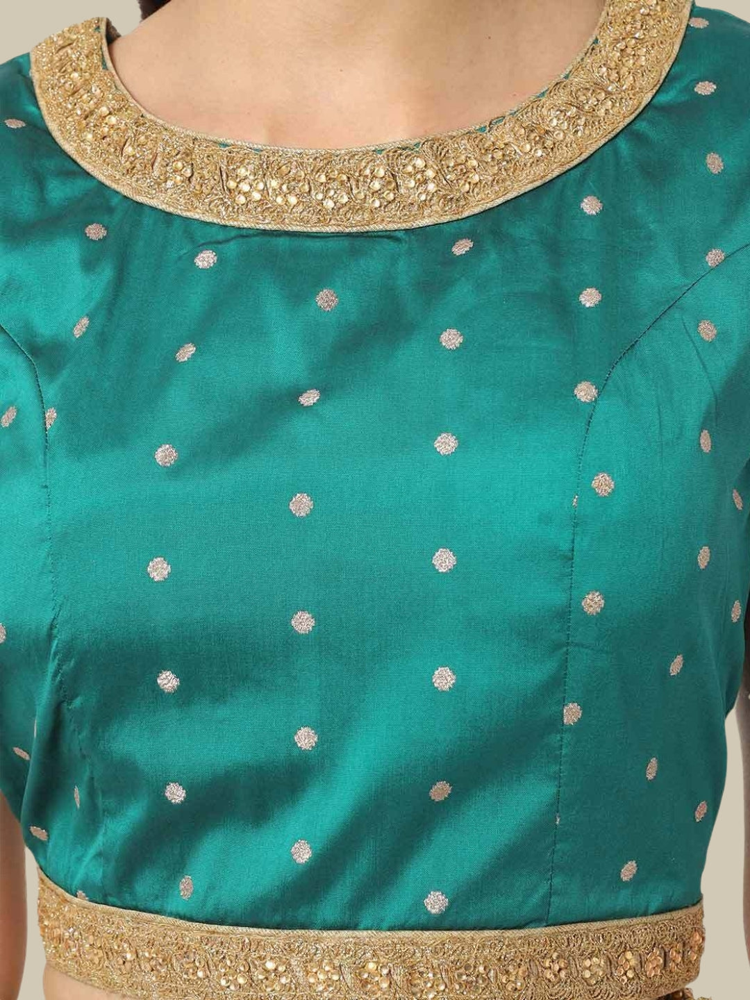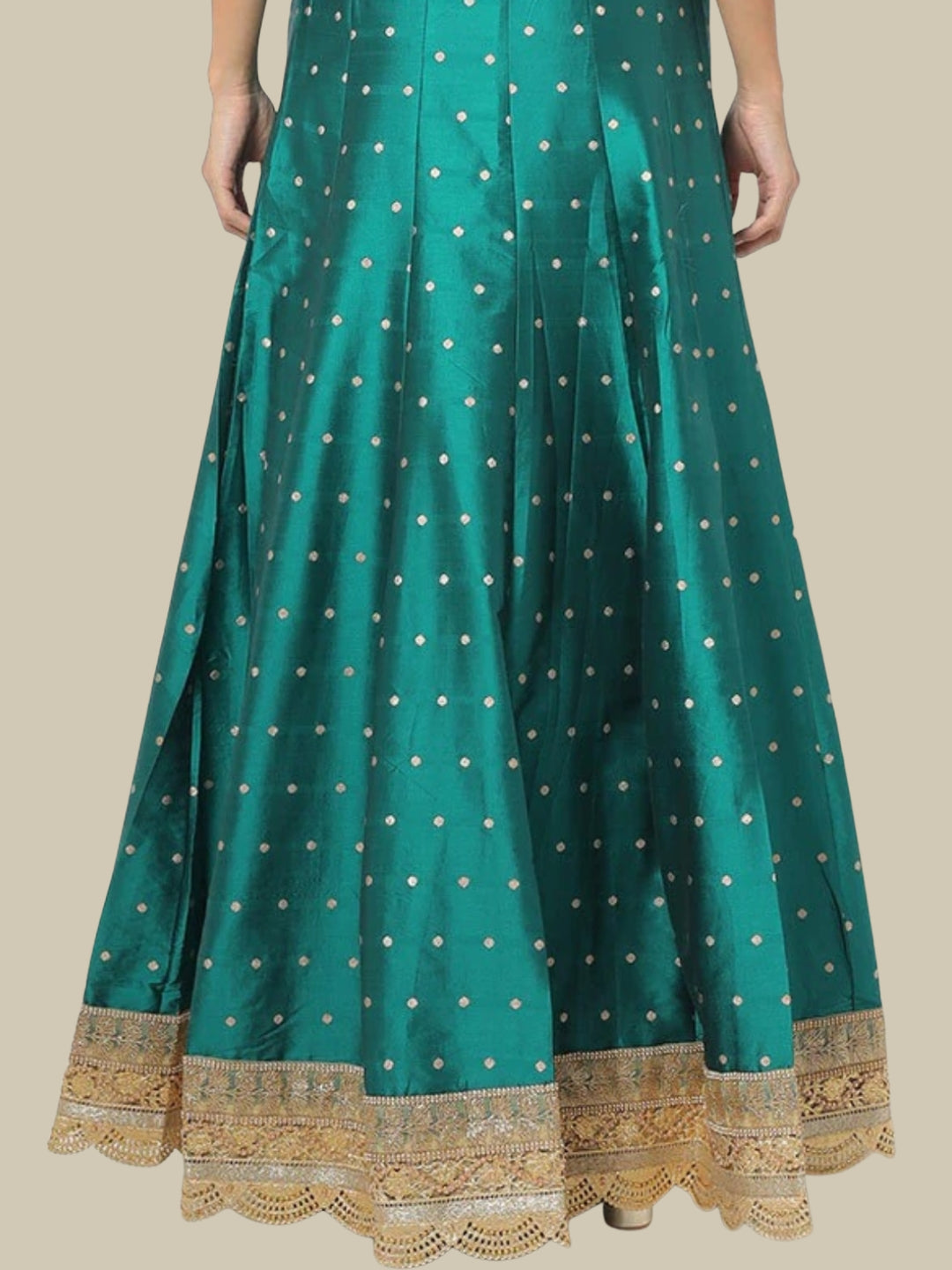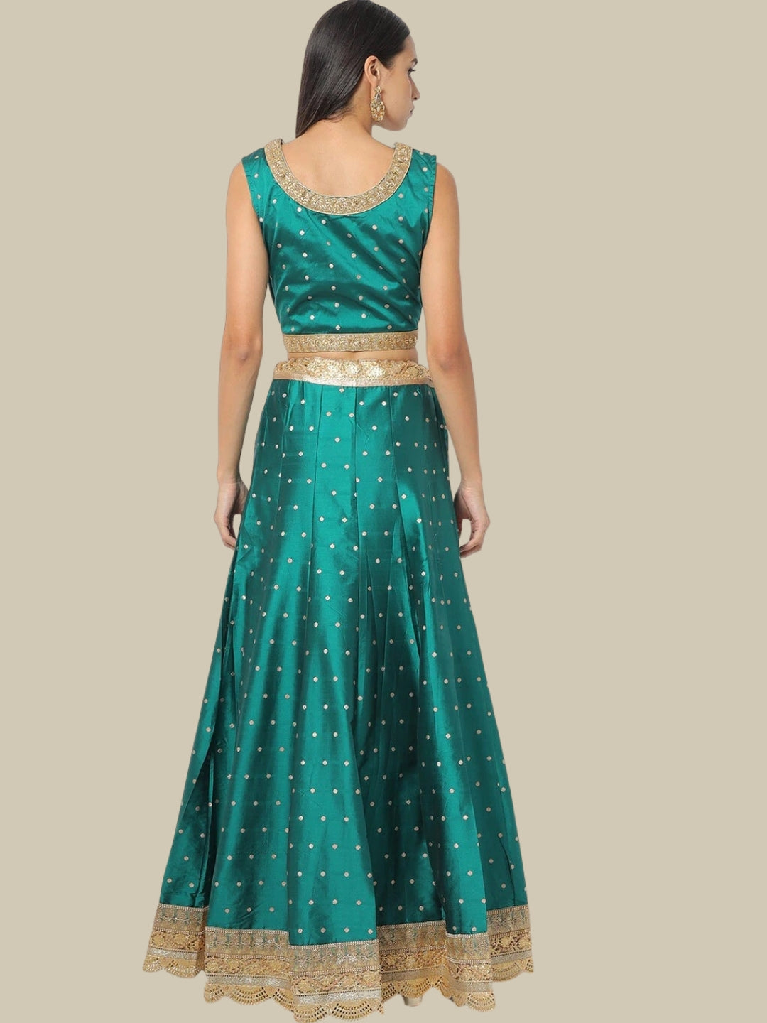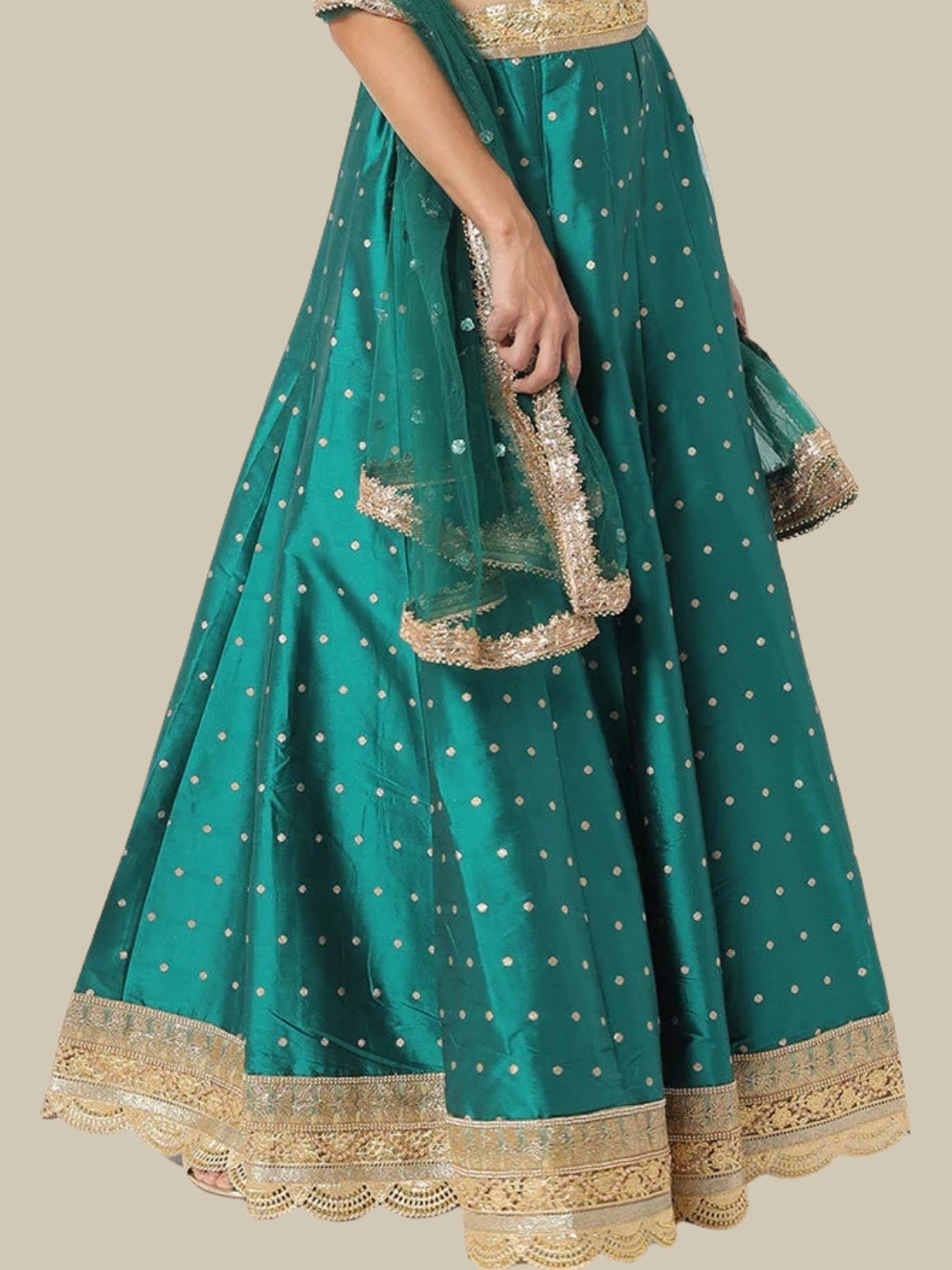 Chhabra 555 Made to Measure Festive Lehenga Set with Gold Zari Weaving, Ari Kundan Embroidery and Gota Patti Hemline