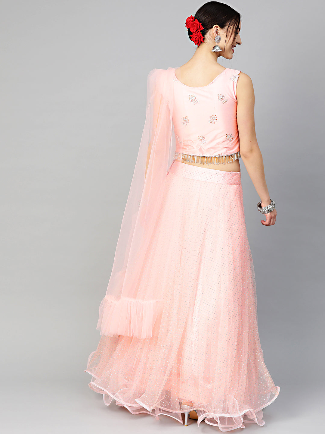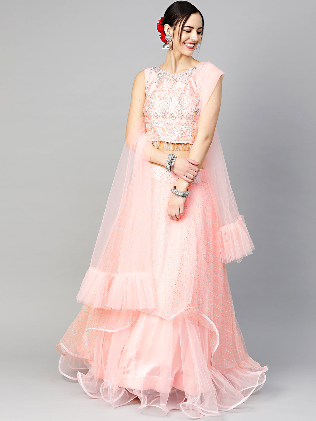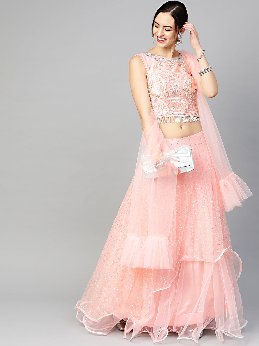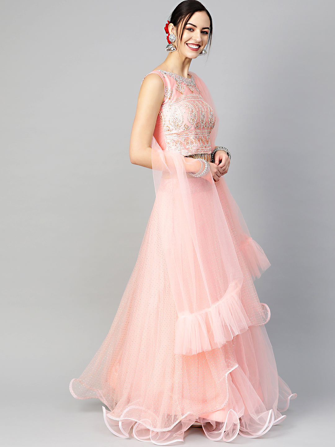 Chikankari Embroidery Lehenga Choli with Ruffled Dupatta
