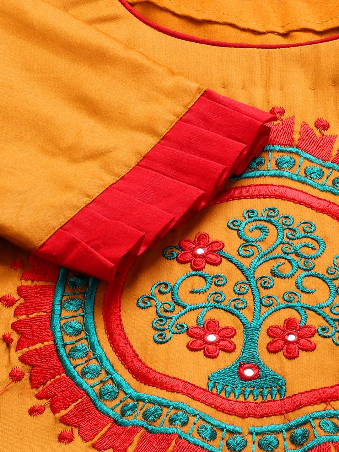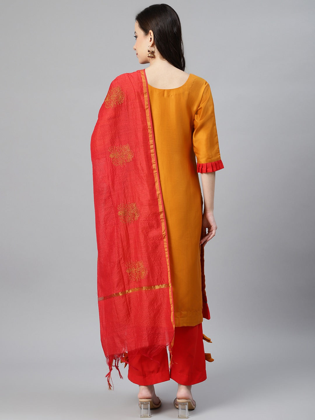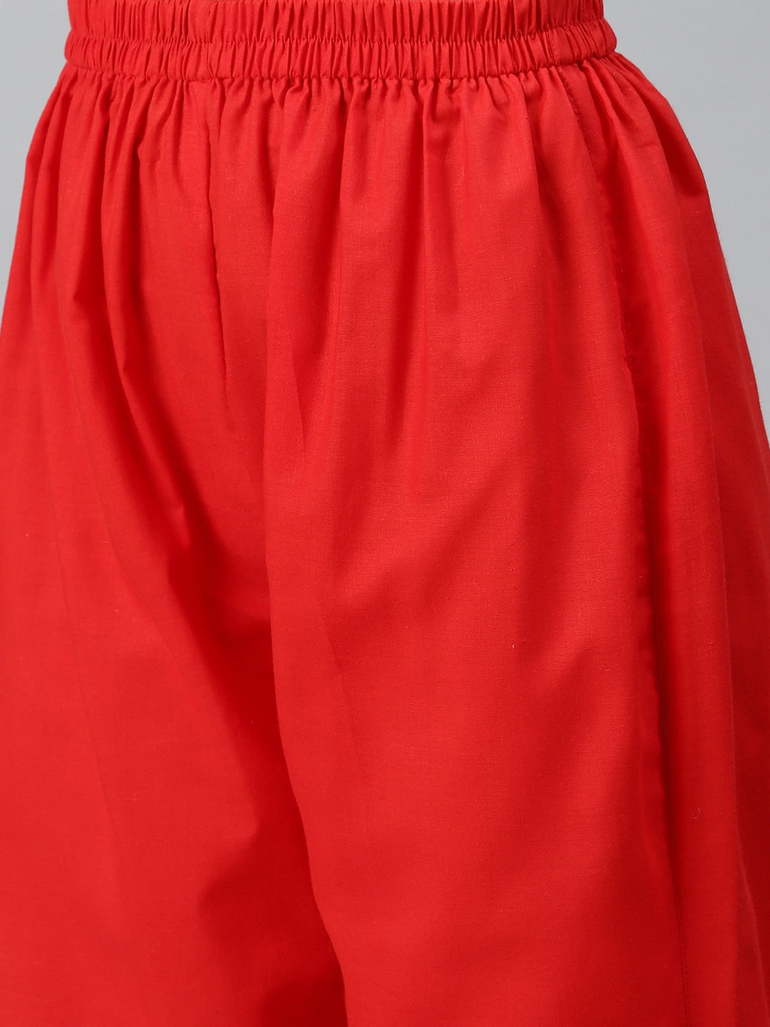 Cotton Stitched Kurta Pallazzo Set With Embroidery Dupatta & Pleated Hemline, Sleeves