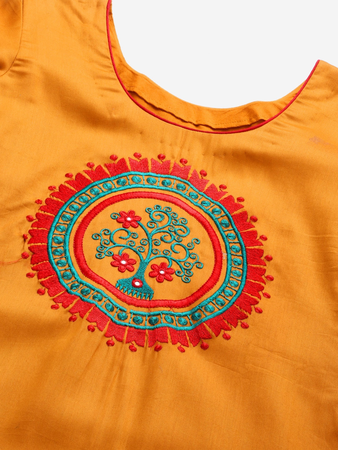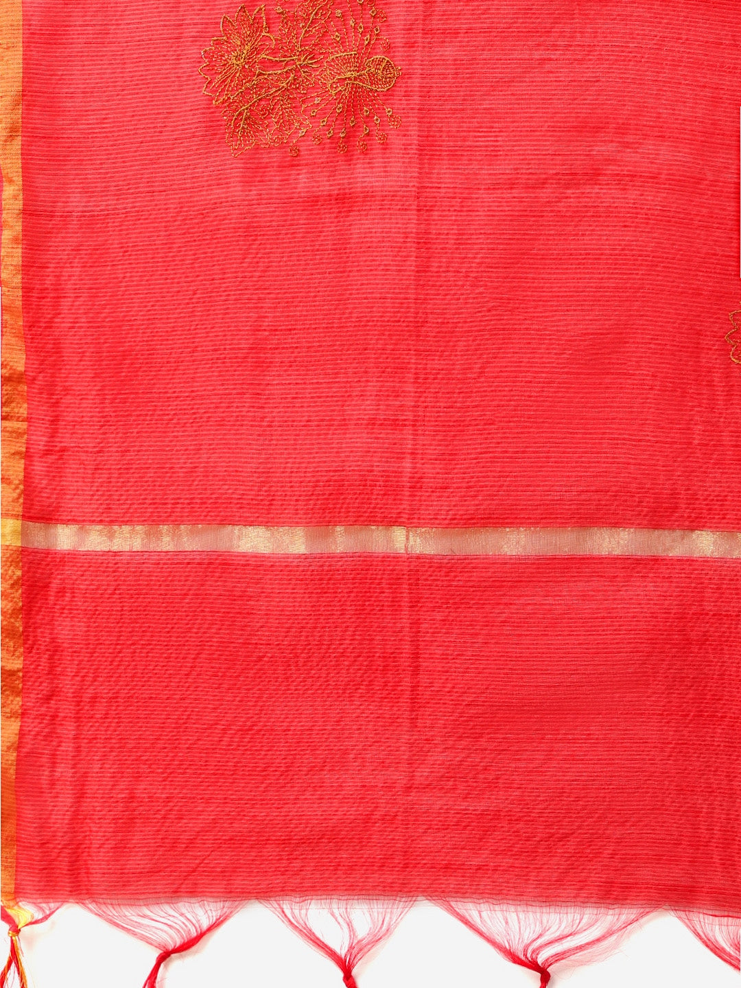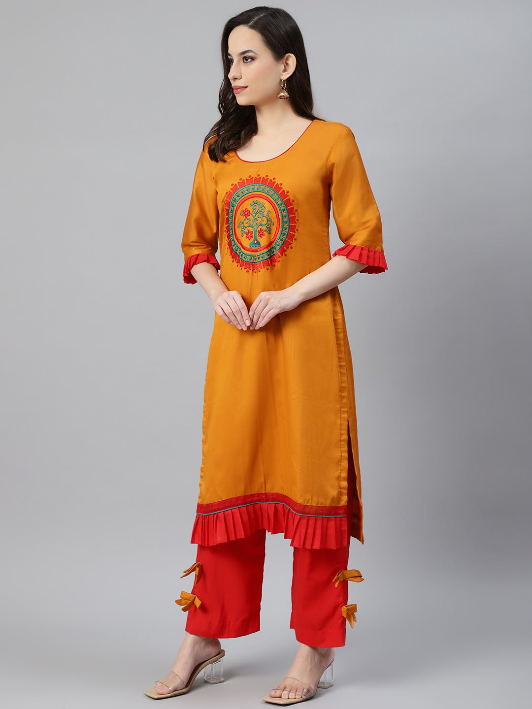 Cotton Stitched Kurta Pallazzo Set With Embroidery Dupatta & Pleated Hemline, Sleeves