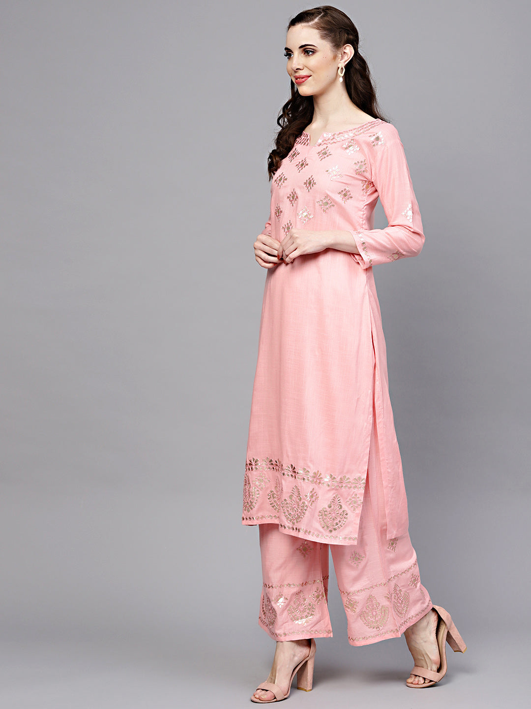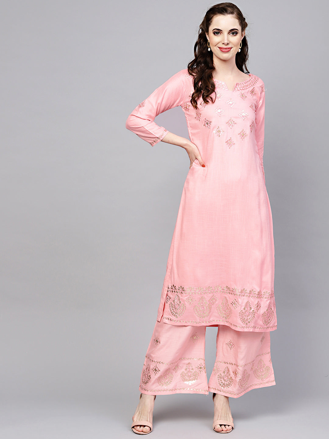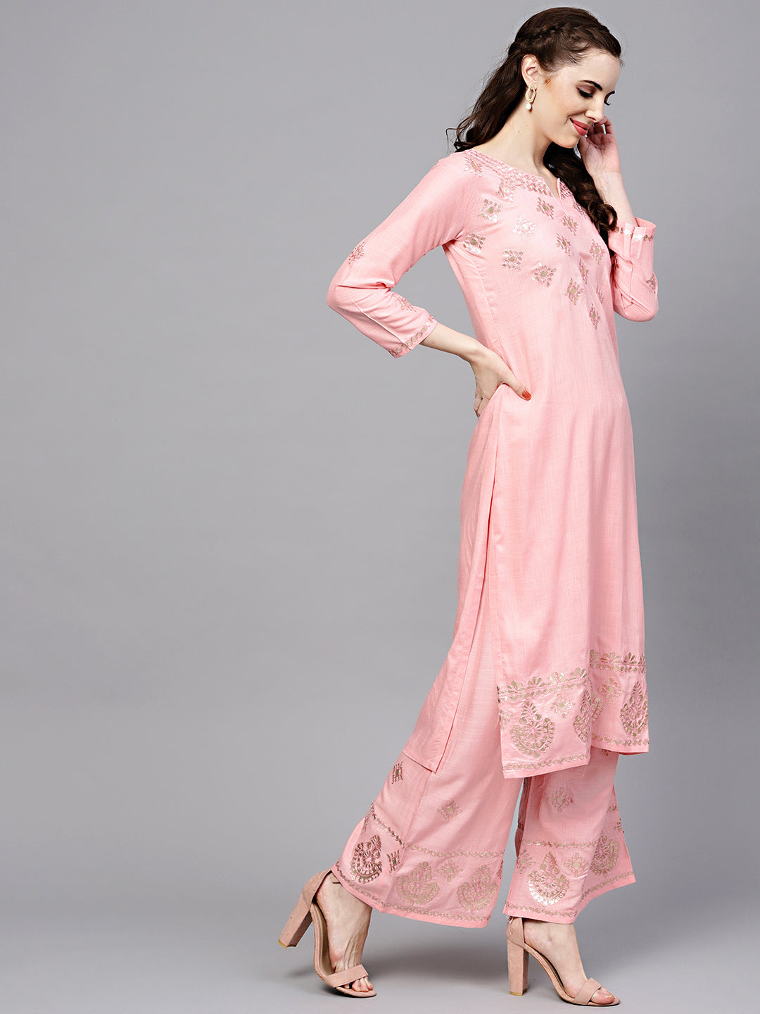 Gota Patti Embroidered Kurta Pallazo Set