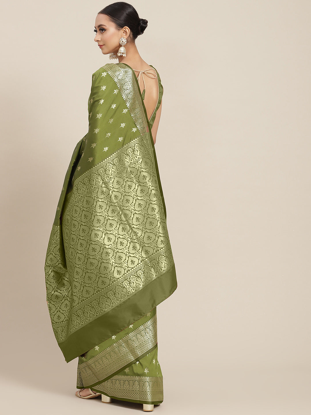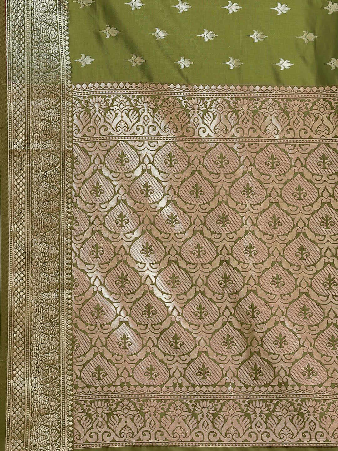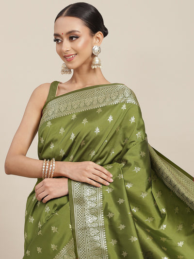 Golden Zari Woven Mysore Silk Bridal Handloom Saree with Floral motifs