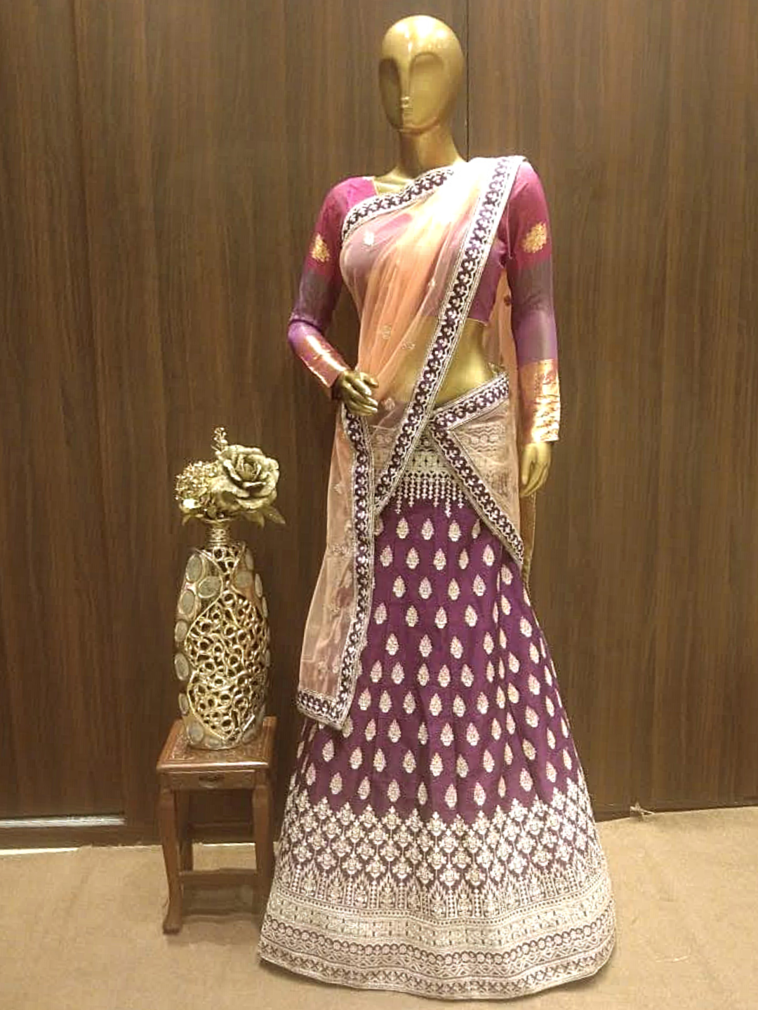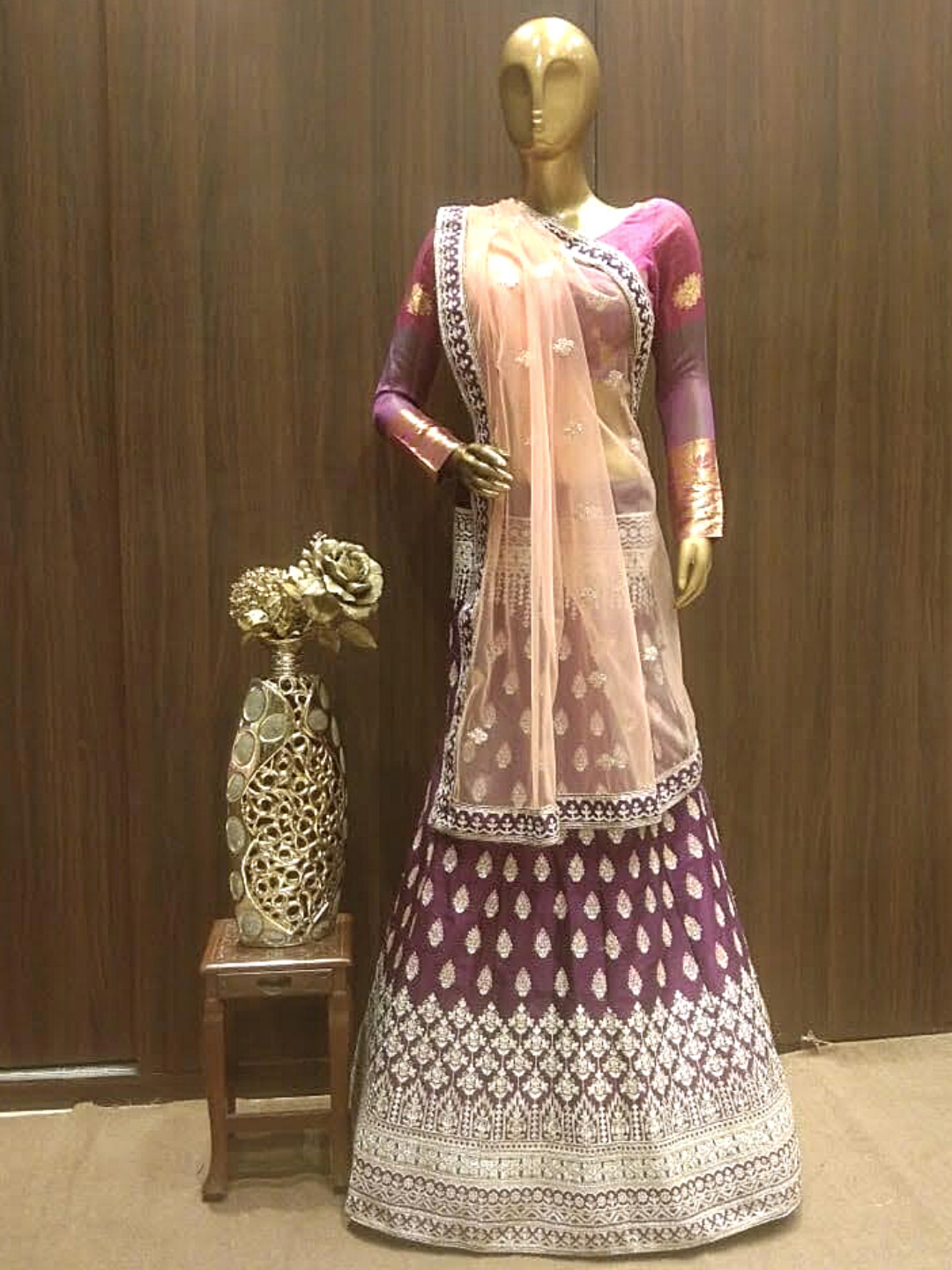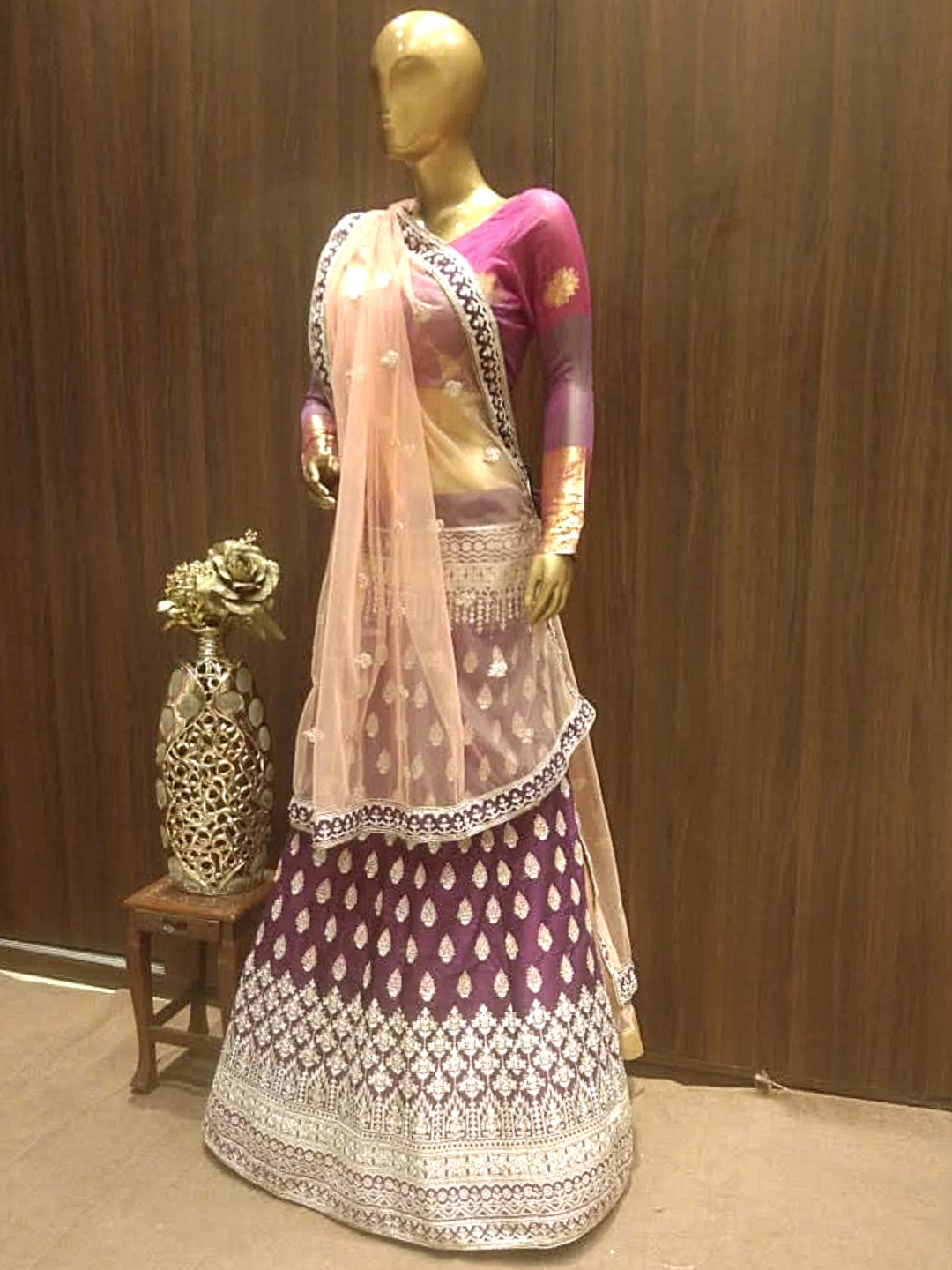 Embellished Semi-Stitched Bridal Lehenga with Gold Zari Embroidery and Contrast Embroidered Dupatta