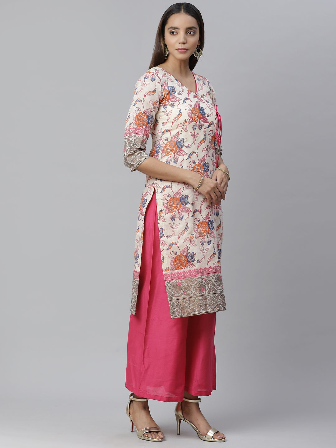 Handloom Chanderi Printed Dress Material with Gold Weave Border & Banarasi Duppatta