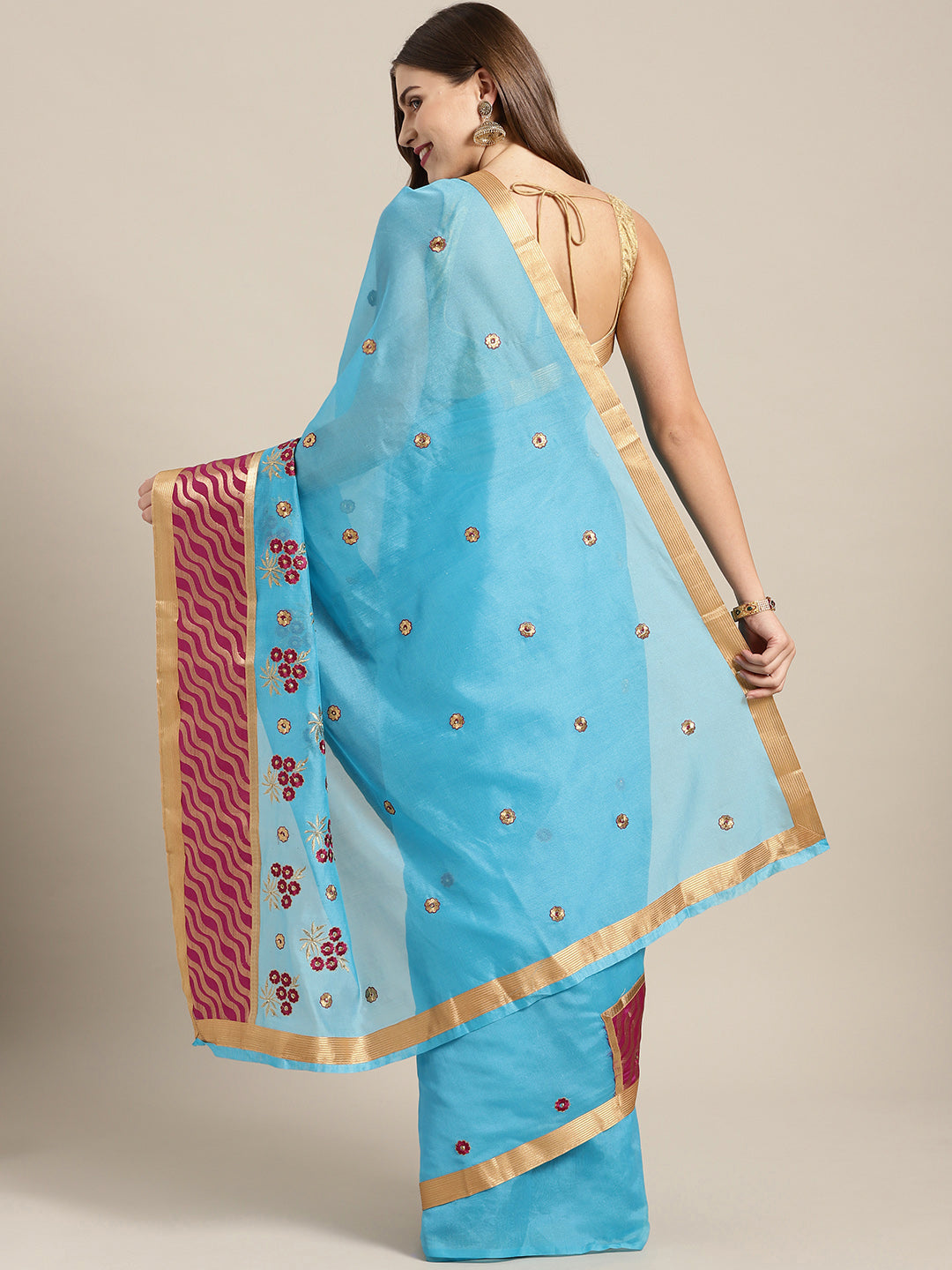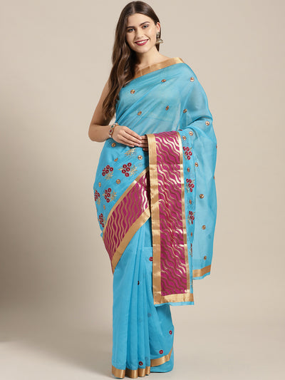 Chanderi Panelled Saree with Resham Embroidered Floral Motifs