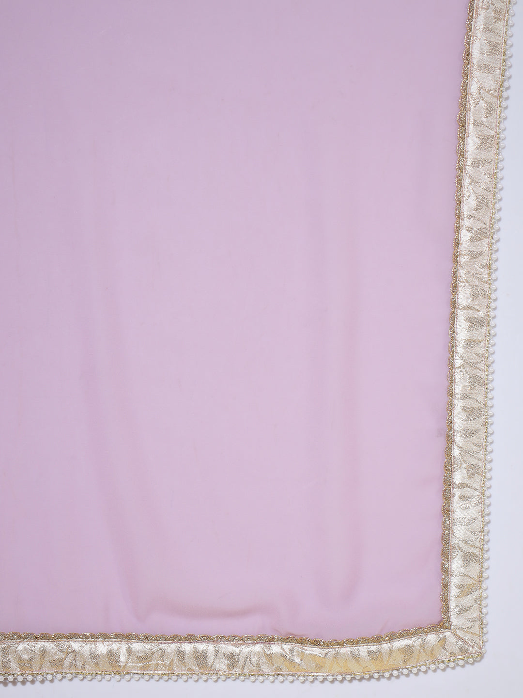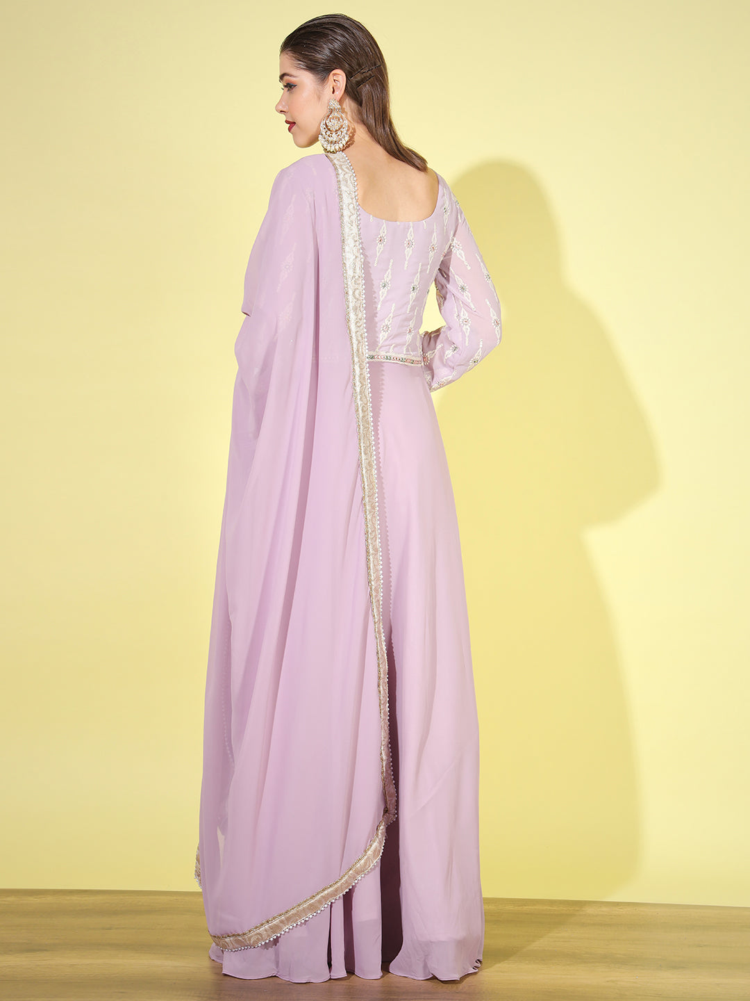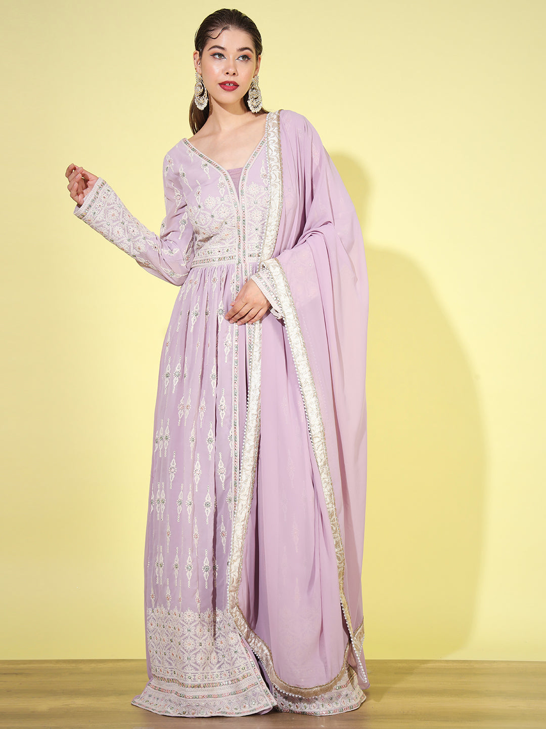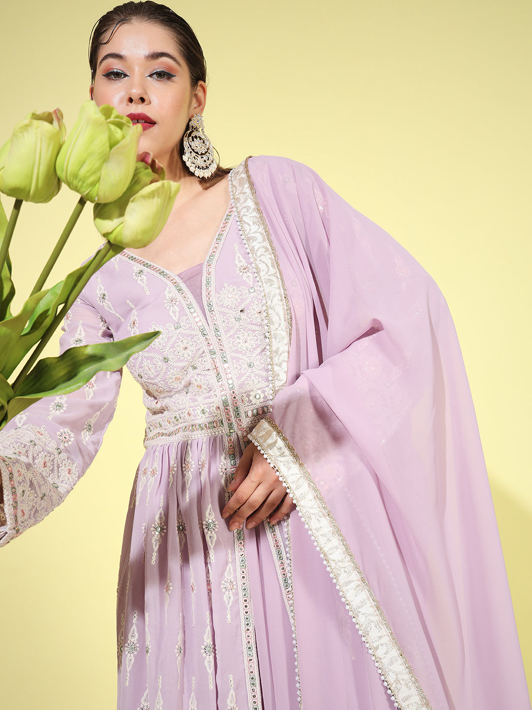 Lavender Resham Chikankari Embroidered Front Slit Georgette Dress