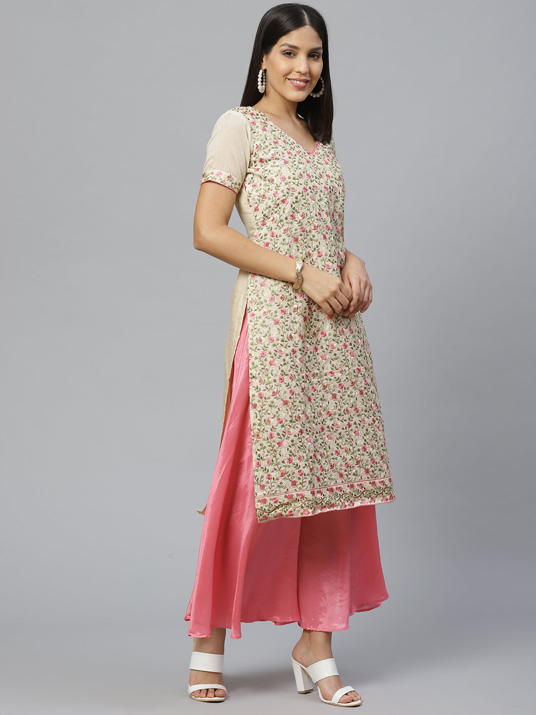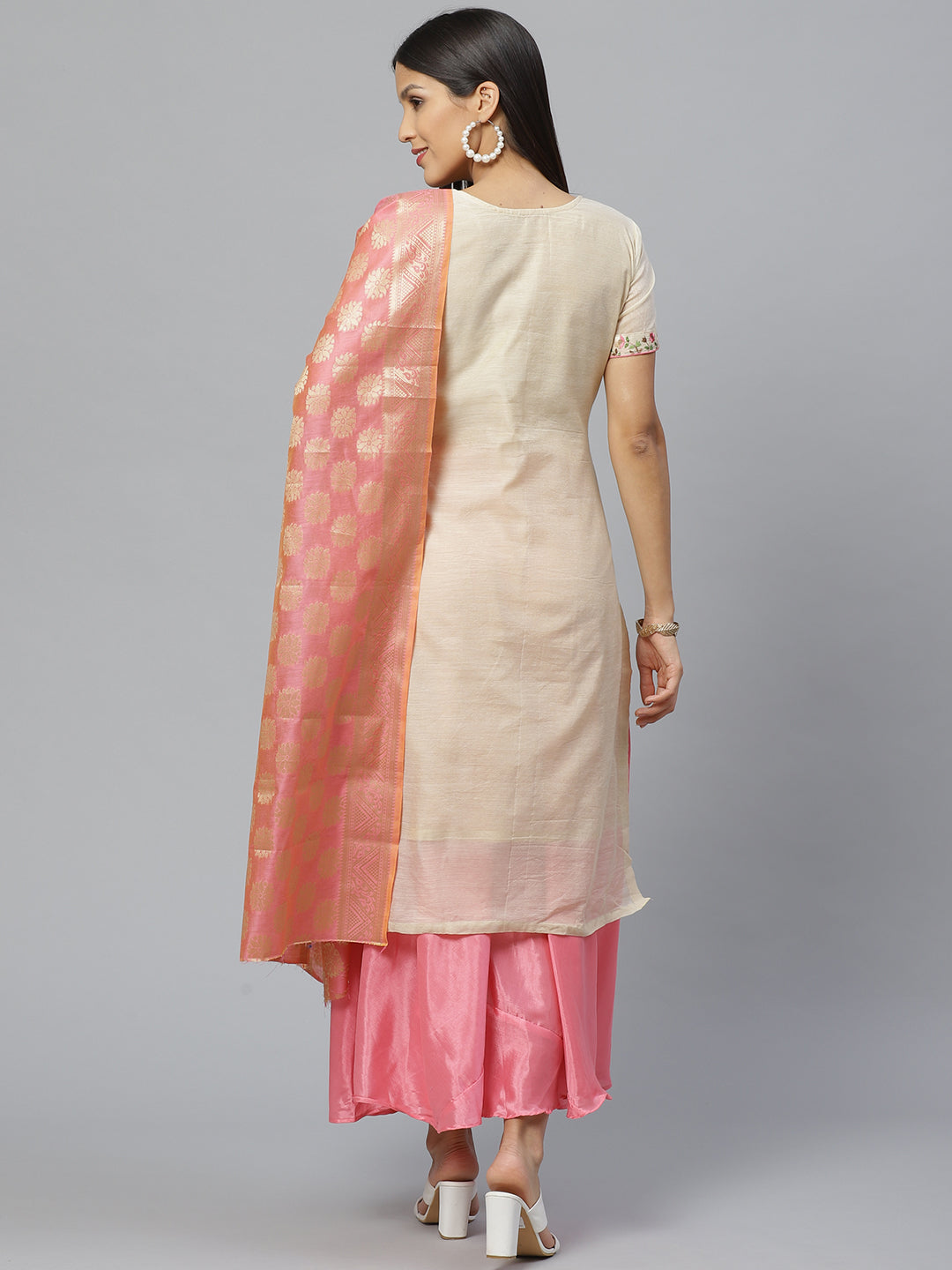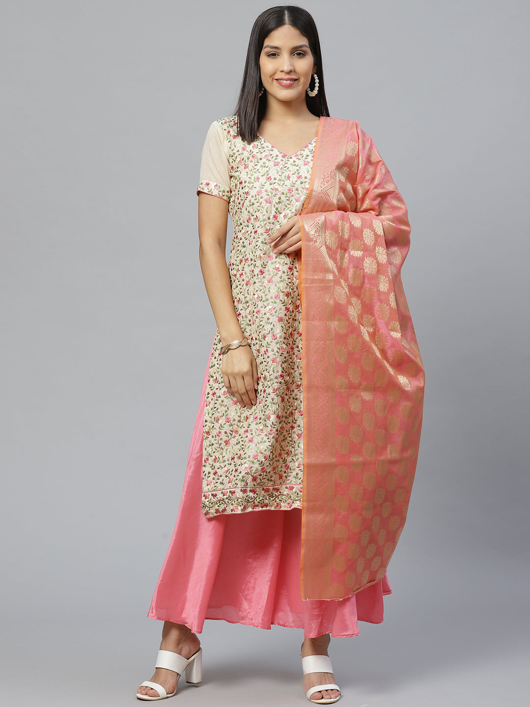 Chanderi Dress Material with Resham Embroidery & Woven Banarasi Dupatta
