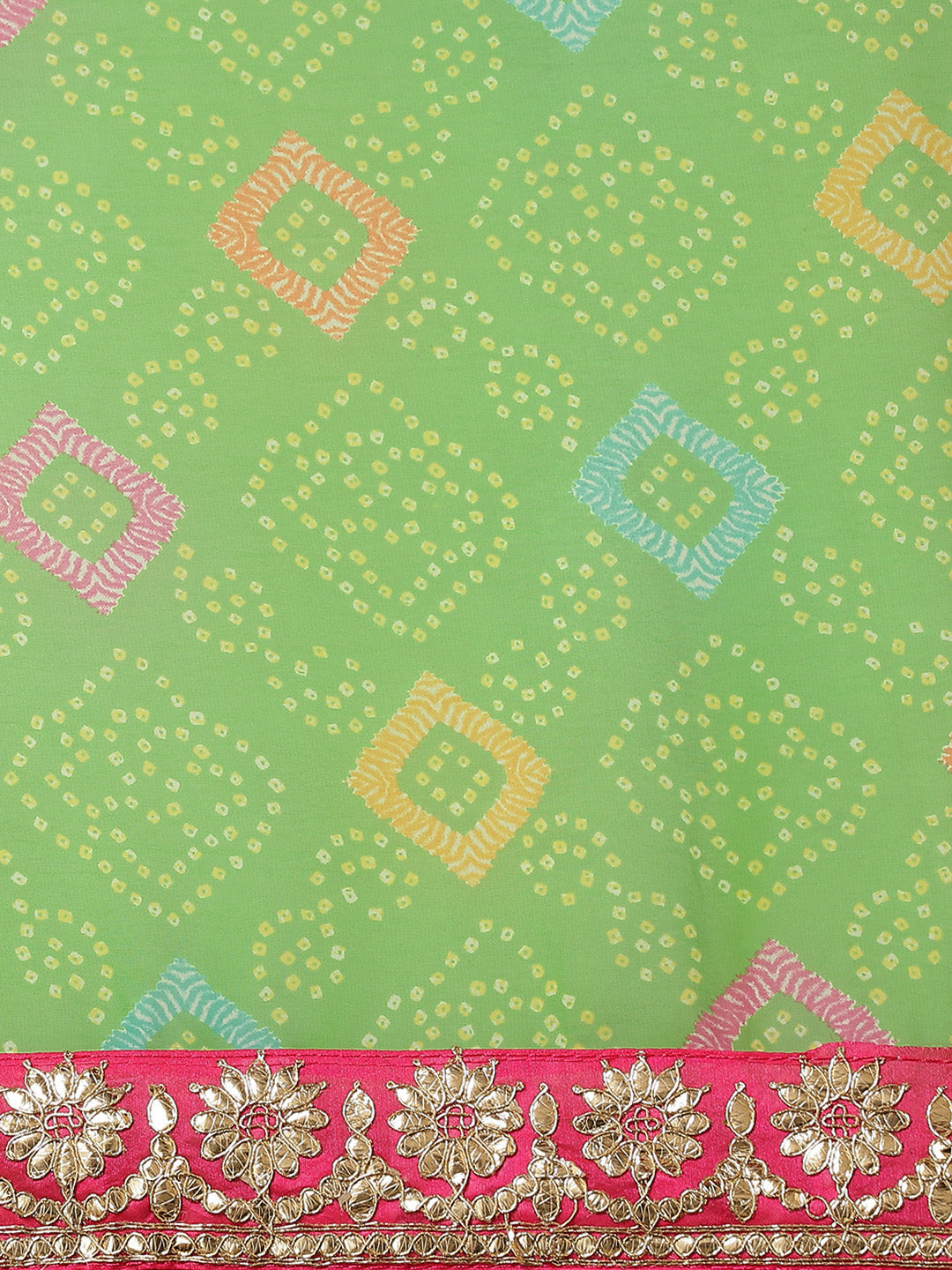 Green Bandhani Print Belted Saree with Multicolor Gotapatti Embroidery