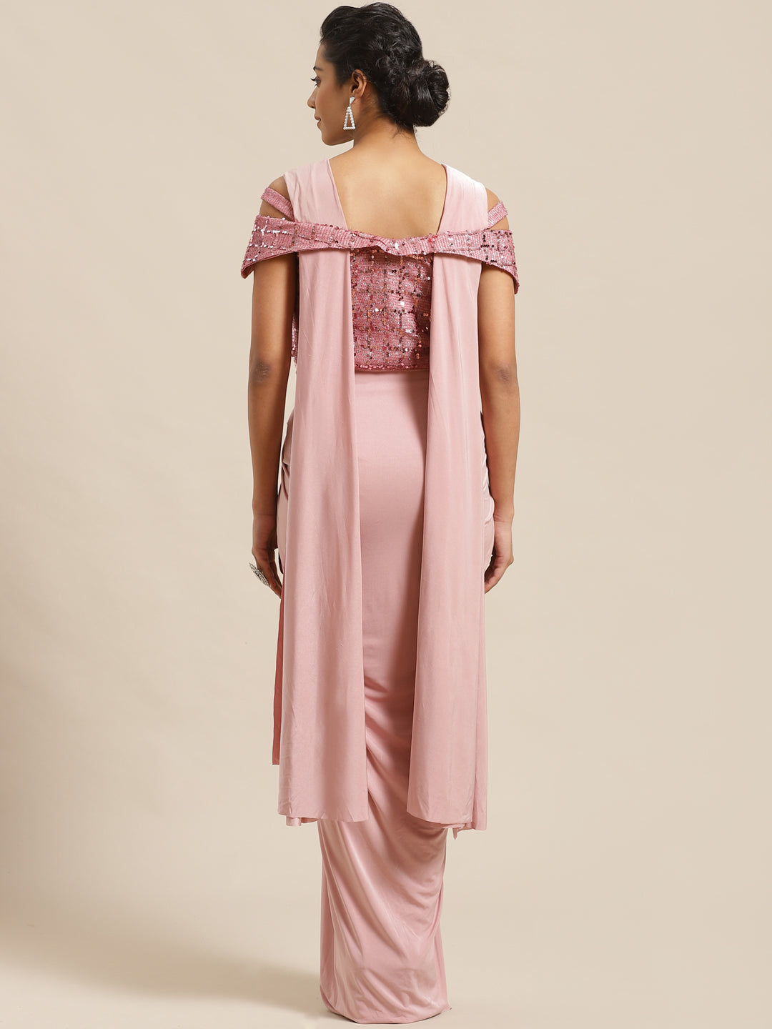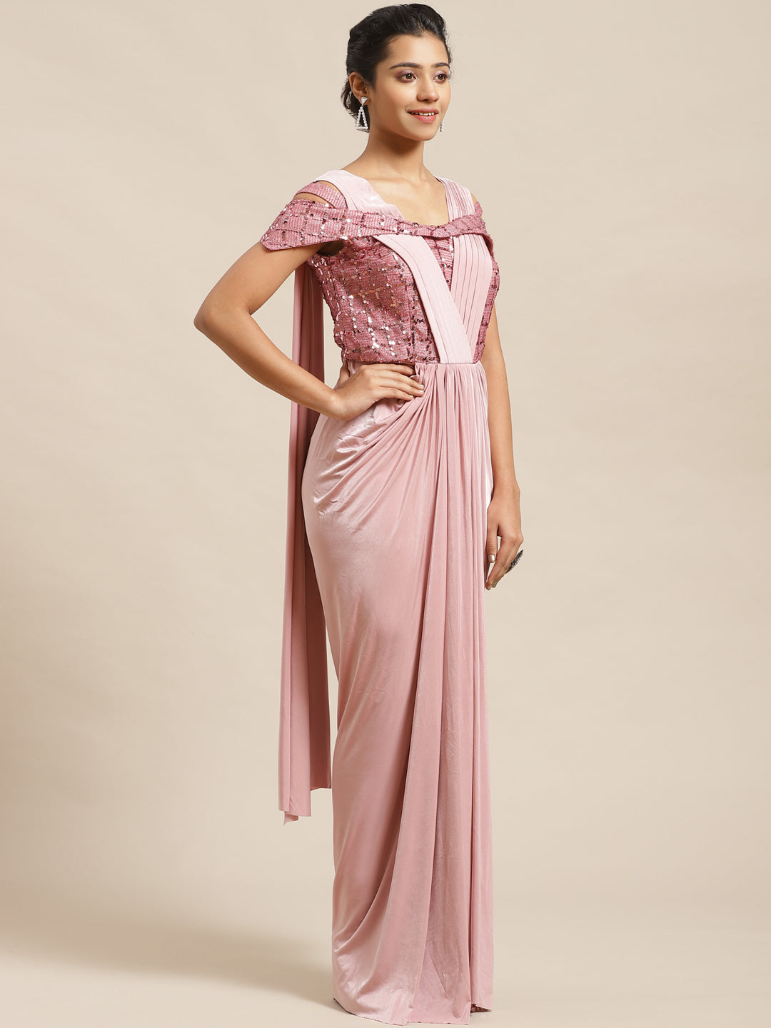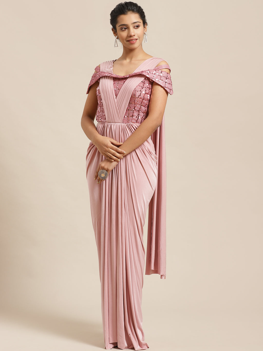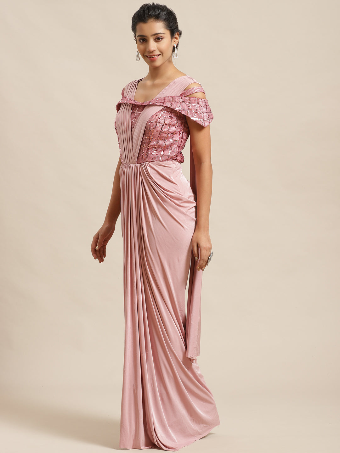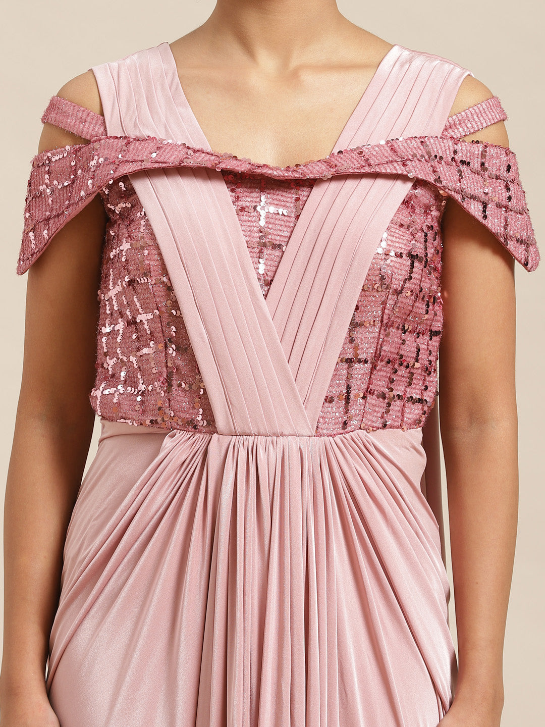 Ruffled Pastel Romance Pre-Stitched Saree Gown with Dhoti-style Drapes & Sequin Bling