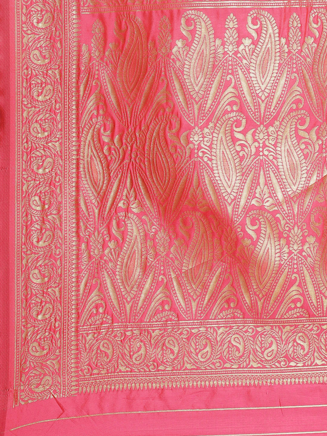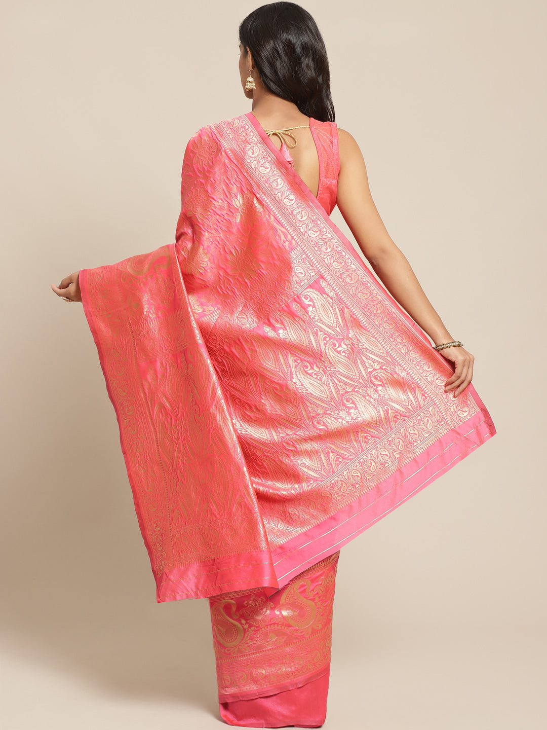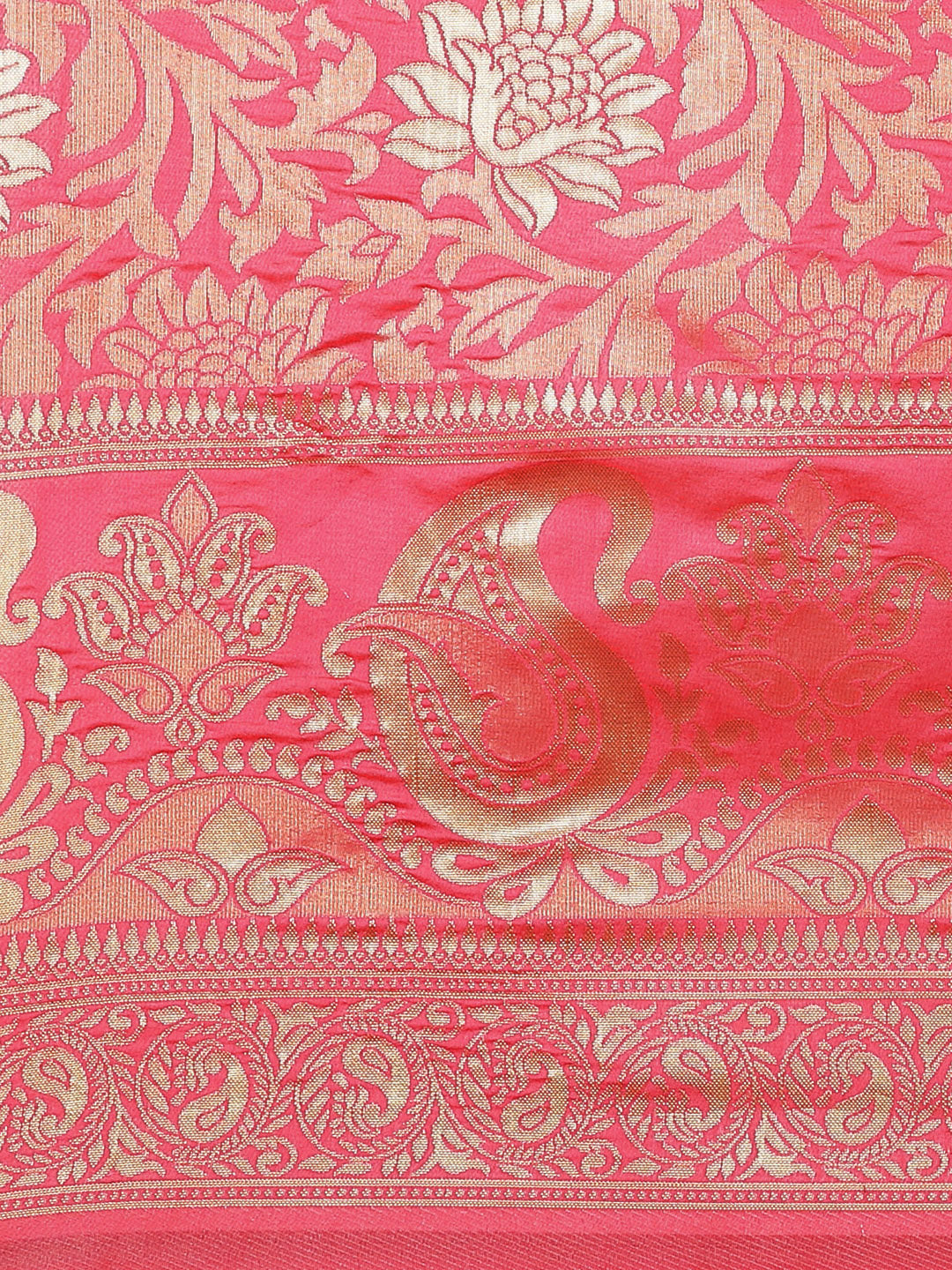 Banarasi Handloom Saree with Gold Zari Oxidised Weaving and Floral Ethnic Pattern