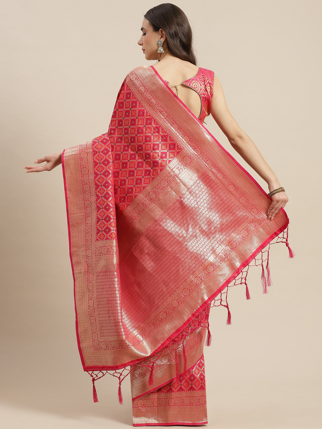 Magenta Silk Meenakari Banarasi Saree Embellished With Resham Weaving